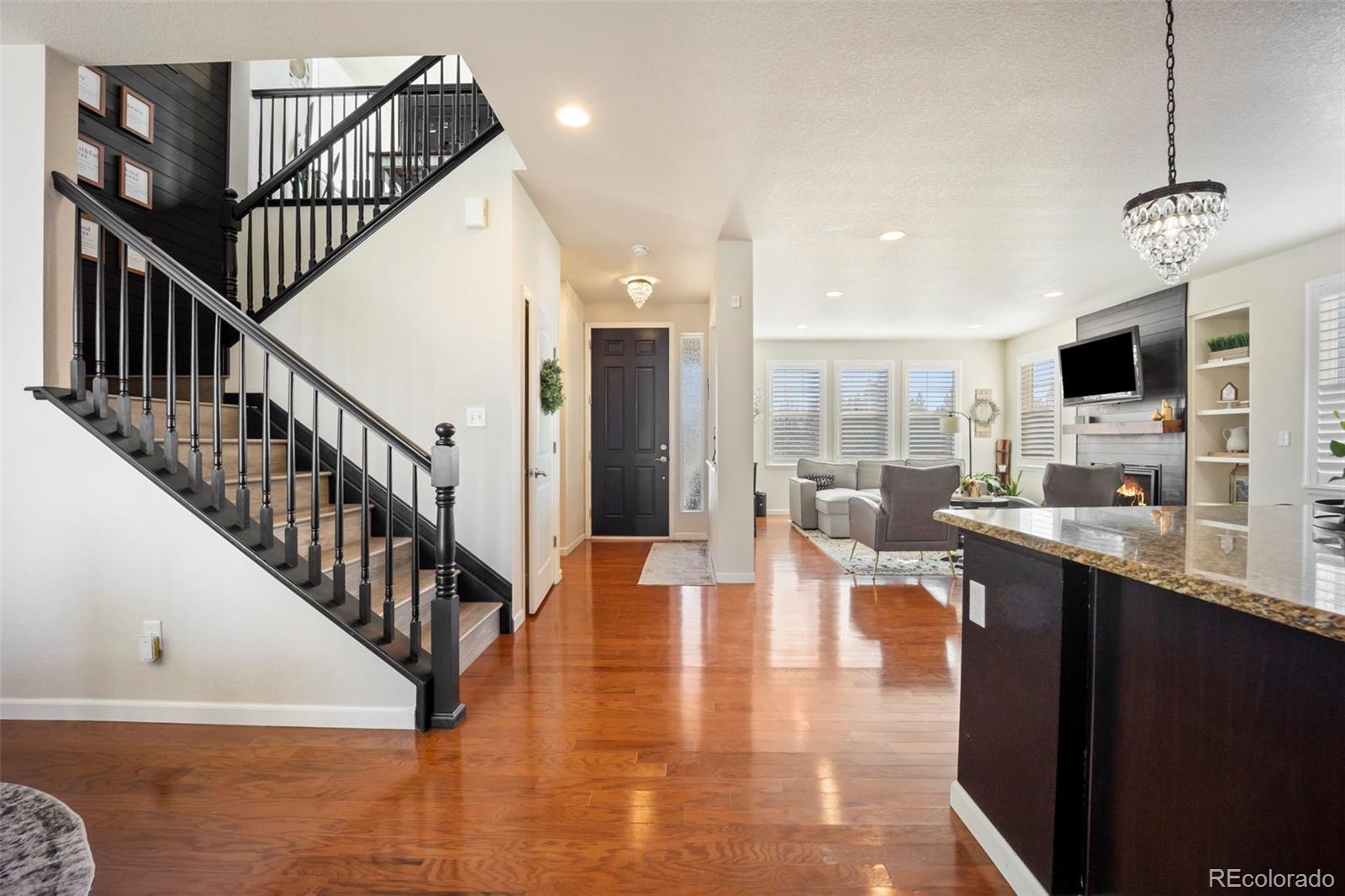 WOW Huge Price drop! This is gonna go fast come and see this property today! Charming Murphy Creek Residence with Stylish Upgrades Nestled in the desirable Murphy Creek community, this well-maintained two-story home features approximately 2,680 sq. ft. of thoughtfully laid-out living space with 3 bedrooms and 3 bathrooms. Built in 2015, the property offers a blend of modern comfort and functional design. Step inside to a bright and open main level that includes a welcoming family room with a cozy fireplace and beautiful hardwood-style flooring. The kitchen flows seamlessly into the dining and living areas, ideal for hosting gatherings and everyday living. Home showcases stainless steel appliances, granite countertops, ample cabinetry with crown molding, stylish light fixtures & plantation shutters throughout the main level. Upstairs, the generous primary suite includes an en-suite bath with a five-piece layout. Two additional bedrooms share another full bathroom, and a loft/secondary family area offers flexible space perfect for a homework station, media room, or play area. You’ll also find main-level laundry for added convenience. The unfinished basement includes rough-in plumbing for a future bathroom and provides opportunities for expansion or storage, also includes a huge crawl space for extra storage. Outside, the lot offers a private backyard and patio space — great for outdoor relaxing or entertaining. Residents enjoy Murphy Creek’s community amenities, such as pool and tennis facilities, parks, trails, and a golf course, along with easy access to Southlands shopping, dining, DIA, and Denver.