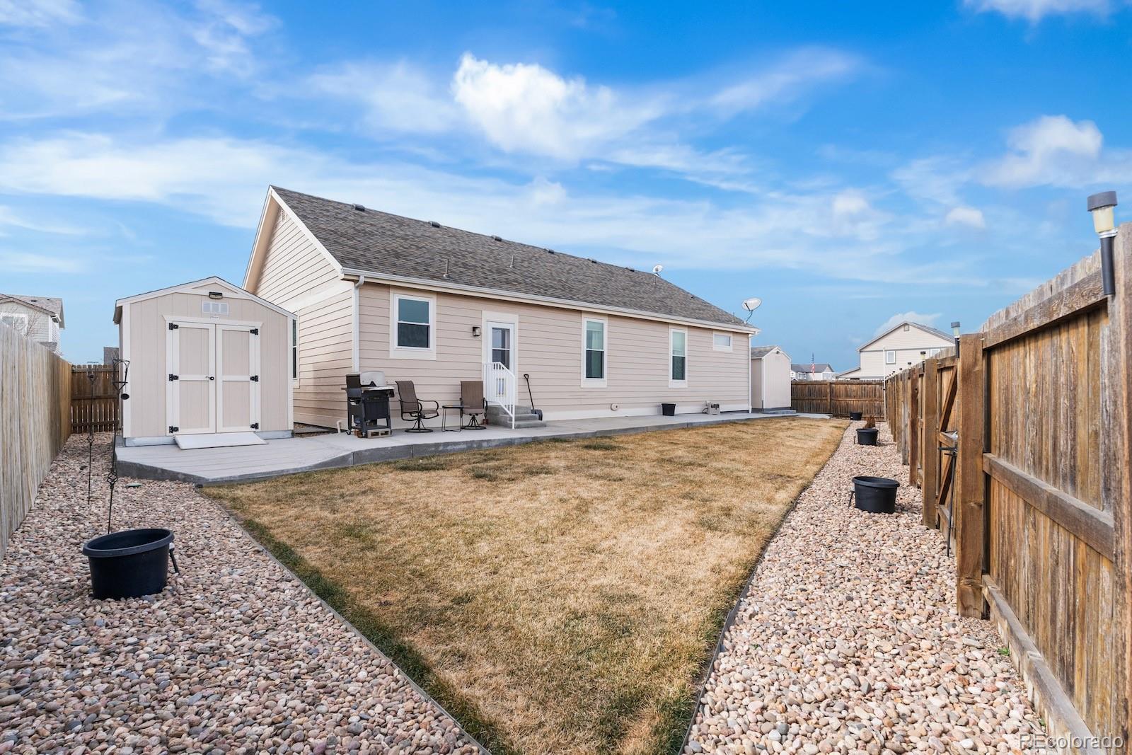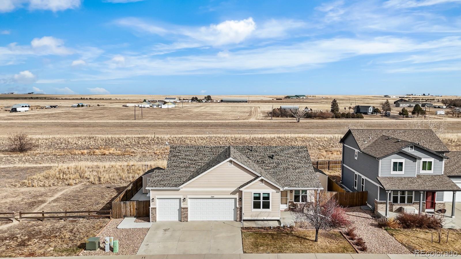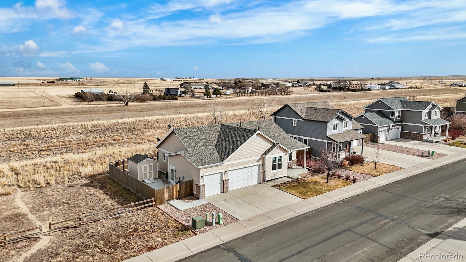 Welcome to this meticulously updated ranch-style home in the sought-after Coyote Ridge community of Strasburg, where small-town charm meets modern convenience. Situated on a premium lot with no neighbors on two sides, this property is uniquely positioned adjacent to peaceful open space both to the side and behind the home, offering rare privacy and expansive "big sky" views. From the moment you arrive, the pride of ownership is evident in the professional landscaping, concrete walkways that wrap around the entire house, and the high-end updates including a new roof and fresh exterior paint completed in 2023. Inside, the open-concept living area boasts vaulted ceilings, a cozy gas fireplace, and brand-new flooring that flows throughout the main level. The kitchen is a chef's delight with updated fixtures, a trash compactor, and a sophisticated reverse osmosis water filtration system serving both the sink and refrigerator. This home is designed for longevity and comfort, featuring energy-efficient Champion windows, a 50-gallon water heater, and a whole-home humidifier. The primary suite serves as a true retreat with a five-piece master bath and spacious walk-in closets, while all bedrooms include ceiling fans and wall-mounted TVs or mounts that stay with the home. For those who need space for hobbies or storage, the attached three-car garage is a standout with its epoxy-coated floors, upgraded R13/15 insulated doors, and premium LiftMaster side-mount openers, supplemented by two additional storage sheds in the fully fenced backyard. While the 1,270-square-foot basement remains mostly unfinished and ready for your custom touch, it already includes a fully finished bathroom, providing a significant head start on future equity. Located just a short commute from Denver and DIA, this home offers a quiet escape with low HOA dues that cover trash and snow removal, and because it is eligible for USDA financing, qualified buyers can move in with no money down.