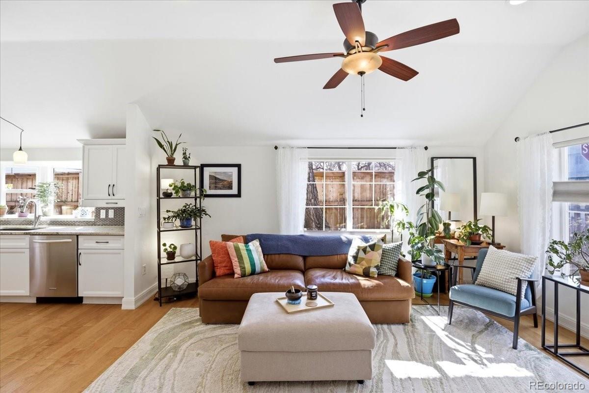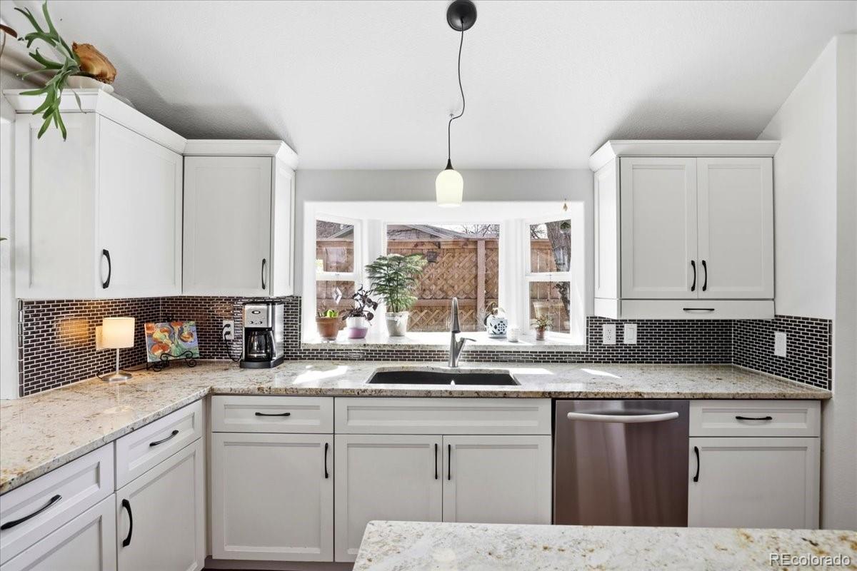Welcome home to this beautifully updated, light-filled ranch on a spacious corner lot in the desirable Leeland Heights neighborhood. From the moment you arrive, you’ll be impressed by the fully fenced yard, mature trees, and expansive outdoor space with endless opportunities for gardening, play, and entertaining. Step inside and immediately feel the warmth and comfort of this inviting 3-bedroom, 2-bath home. The open-concept living, dining, and kitchen areas create a seamless flow, offering both cozy charm and generous space for everyday living. An additional flexible area provides the perfect spot for a mudroom, playroom, or home office. The main level is bathed in natural light and features an expansive kitchen with premium finishes, including granite countertops, tile backsplash, stainless steel appliances, and abundant cabinet and counter space. The dining area opens directly to a stunning back patio and backyard oasis—ideal for summer gatherings, gardening enthusiasts, or simply relaxing outdoors. The property is equipped with multi-zone irrigation, including lawn sprinklers and drip lines for all plant beds, all controlled by a brand-new system. Two bedrooms and two bathrooms are conveniently located on the main level, including a spacious primary suite with a private ensuite bath. The basement adds even more versatility with a large third bedroom, office nook, and a laundry room complete with additional shelving and storage. The fully fenced backyard offers ample room for recreation and direct access to a massive detached two-car garage. All of this, just minutes from parks, shopping, and dining—making this home the perfect blend of comfort, convenience, and outdoor living.