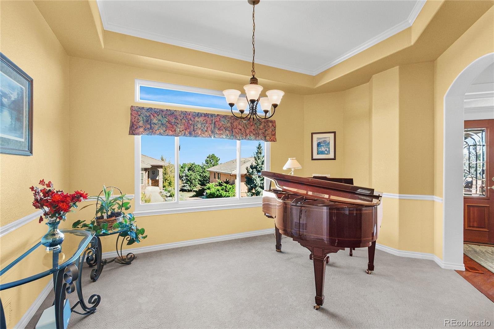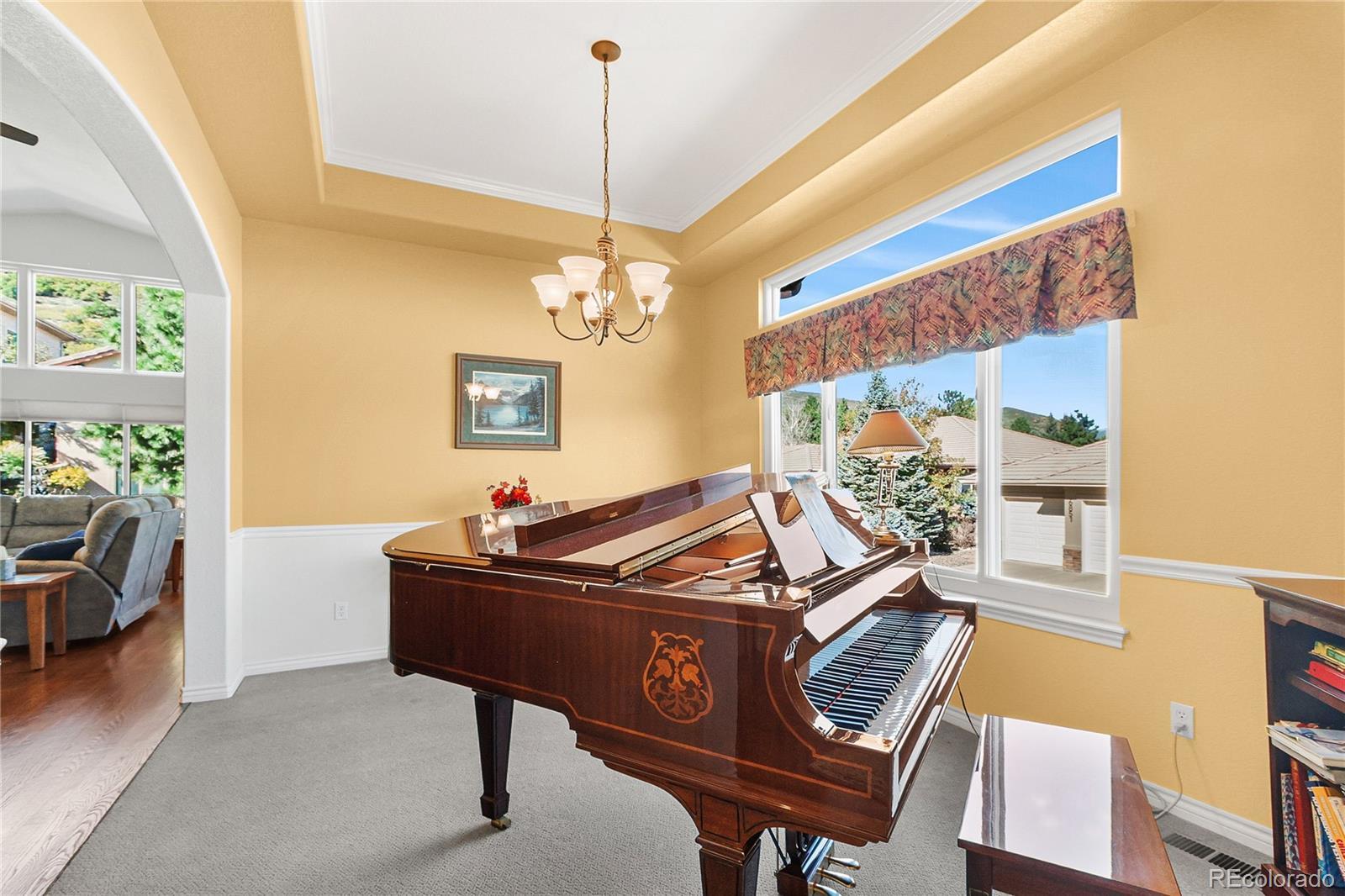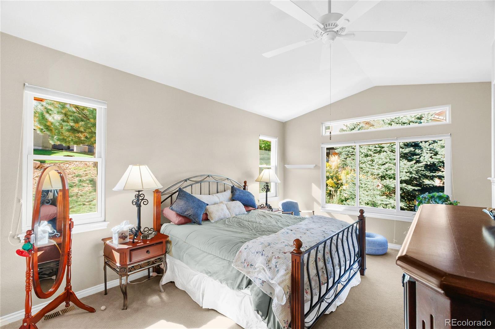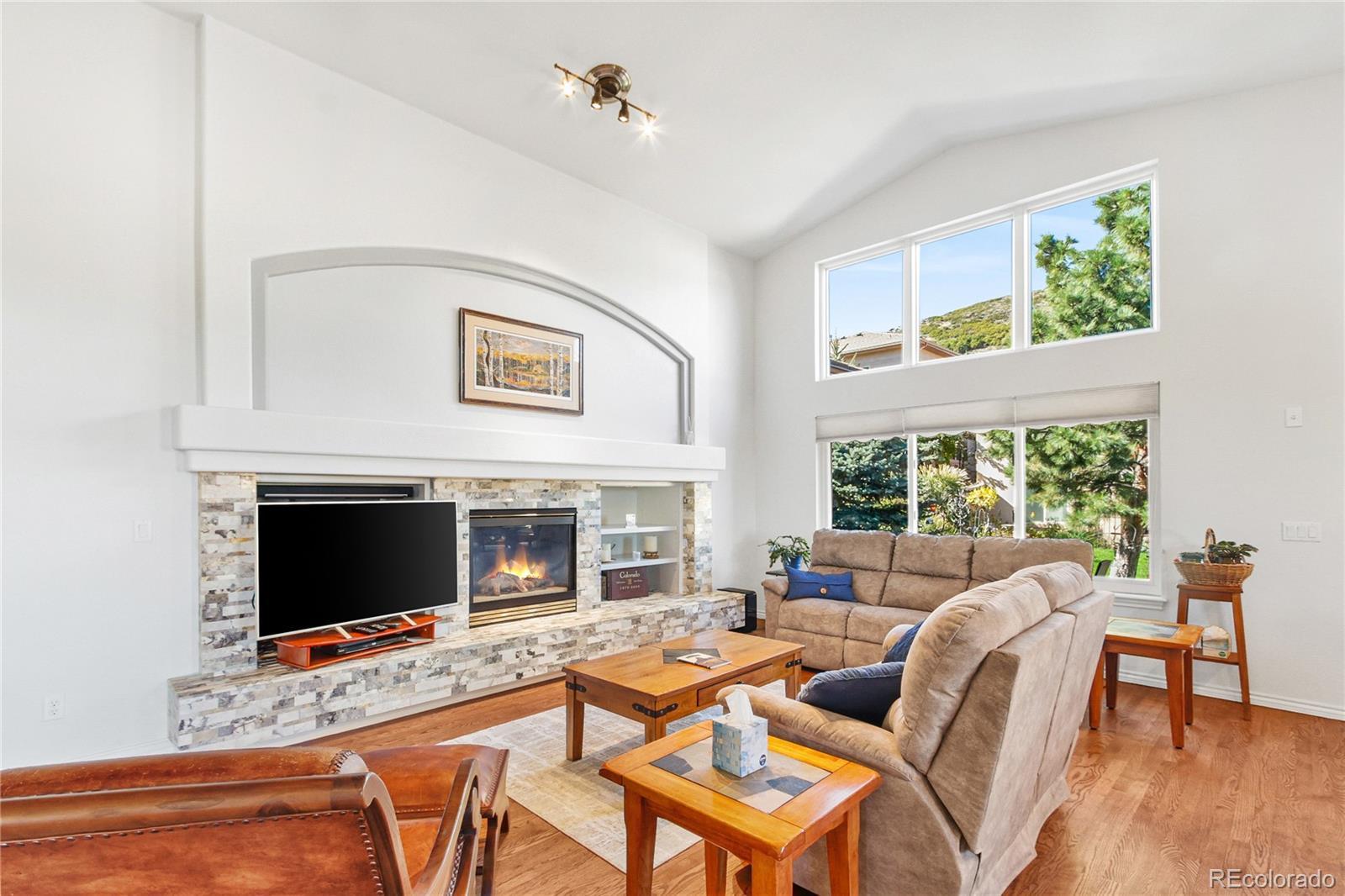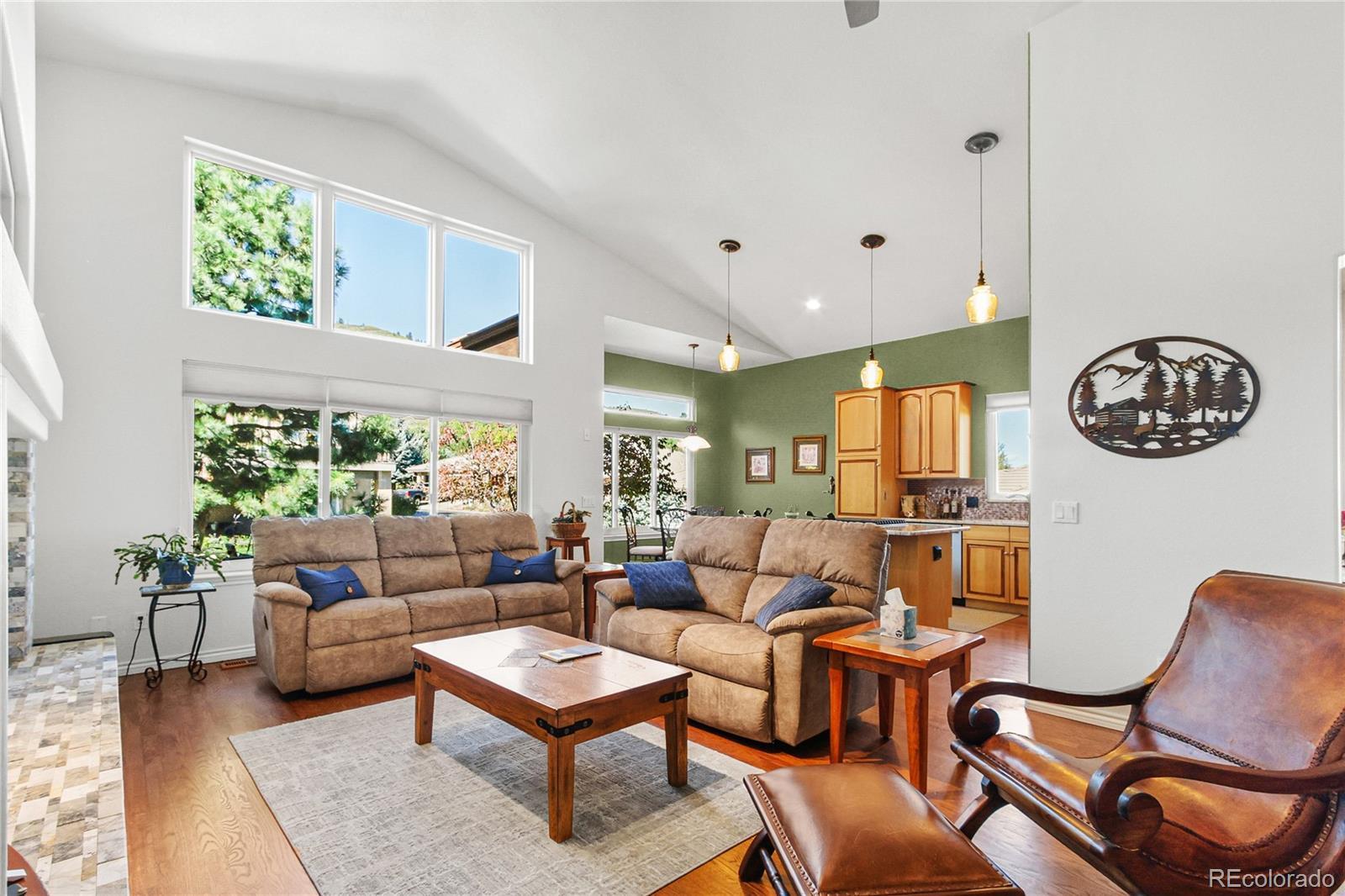 Don’t miss this Main floor living at it's best Ranch style Roxborough Park Home! This home is graced with vaulted ceilings, main floor primary ensuite, great room with updated tile surround and wall of windows, eat-in kitchen w/island, dining room with natural light, office/den w/French doors, laundry room and powder bath. For more living space, venture to the garden level basement, full of natural light, two additional bedrooms that share a full bath and a bonus/family/game room... ready to make your own. Tons of storage, too! This is a MUST SEE in the gated community of Roxborough Park with trails and parks throughout the community. Enjoy gated security, a peaceful foothills setting, hiking and biking trails, shopping and dining as well as easy highway access to the mountains, downtown Denver and DTC. Close to Waterton Canyon, Chatfield State Park & Reservoir, Roxborough State Park and Arrowhead Golf Club.