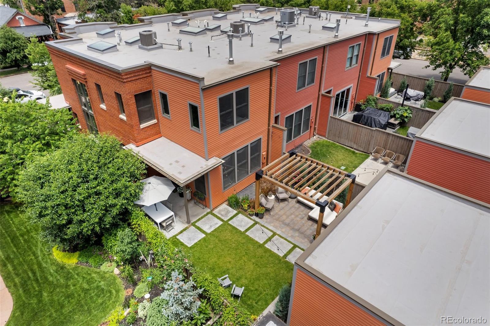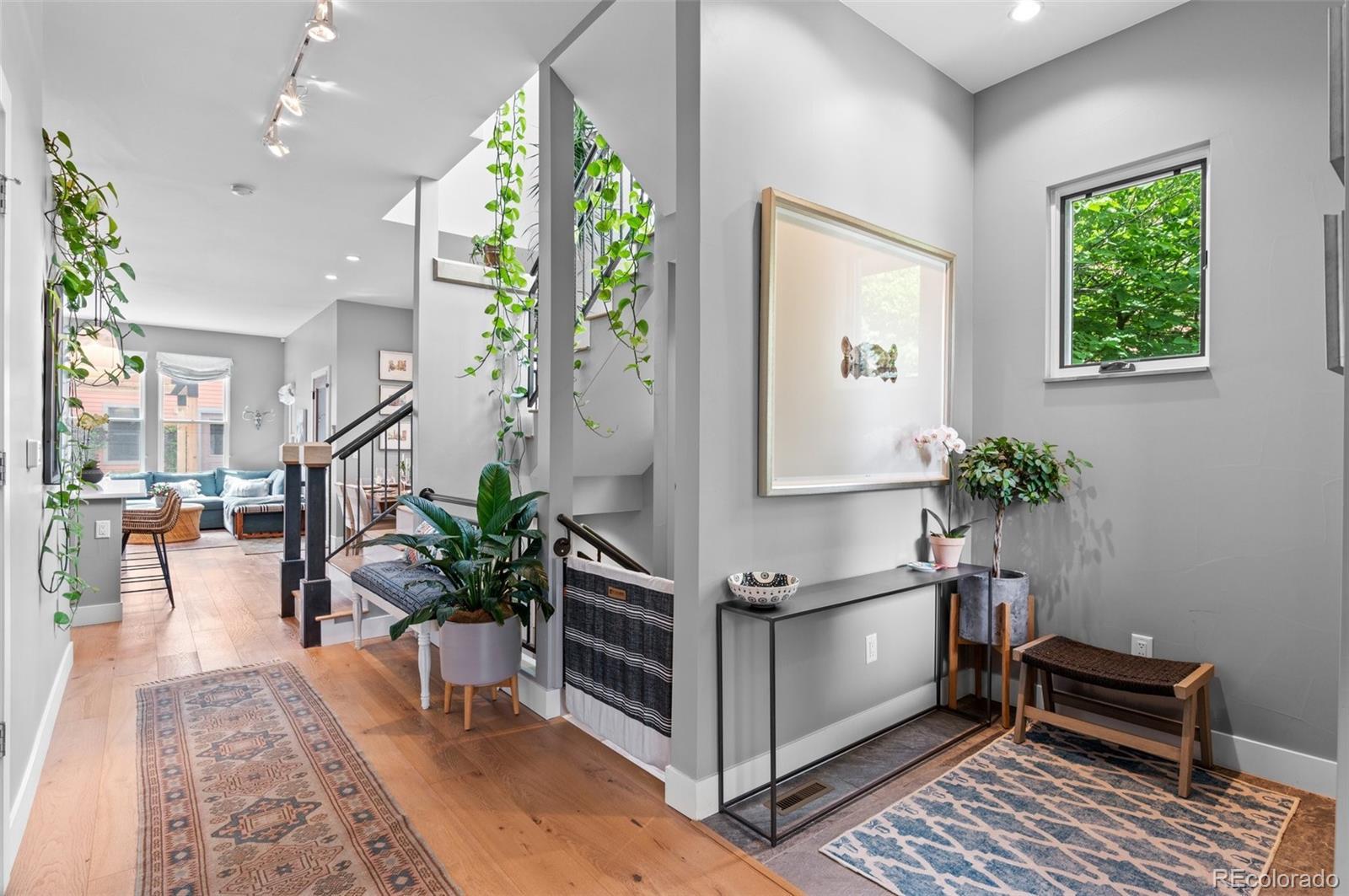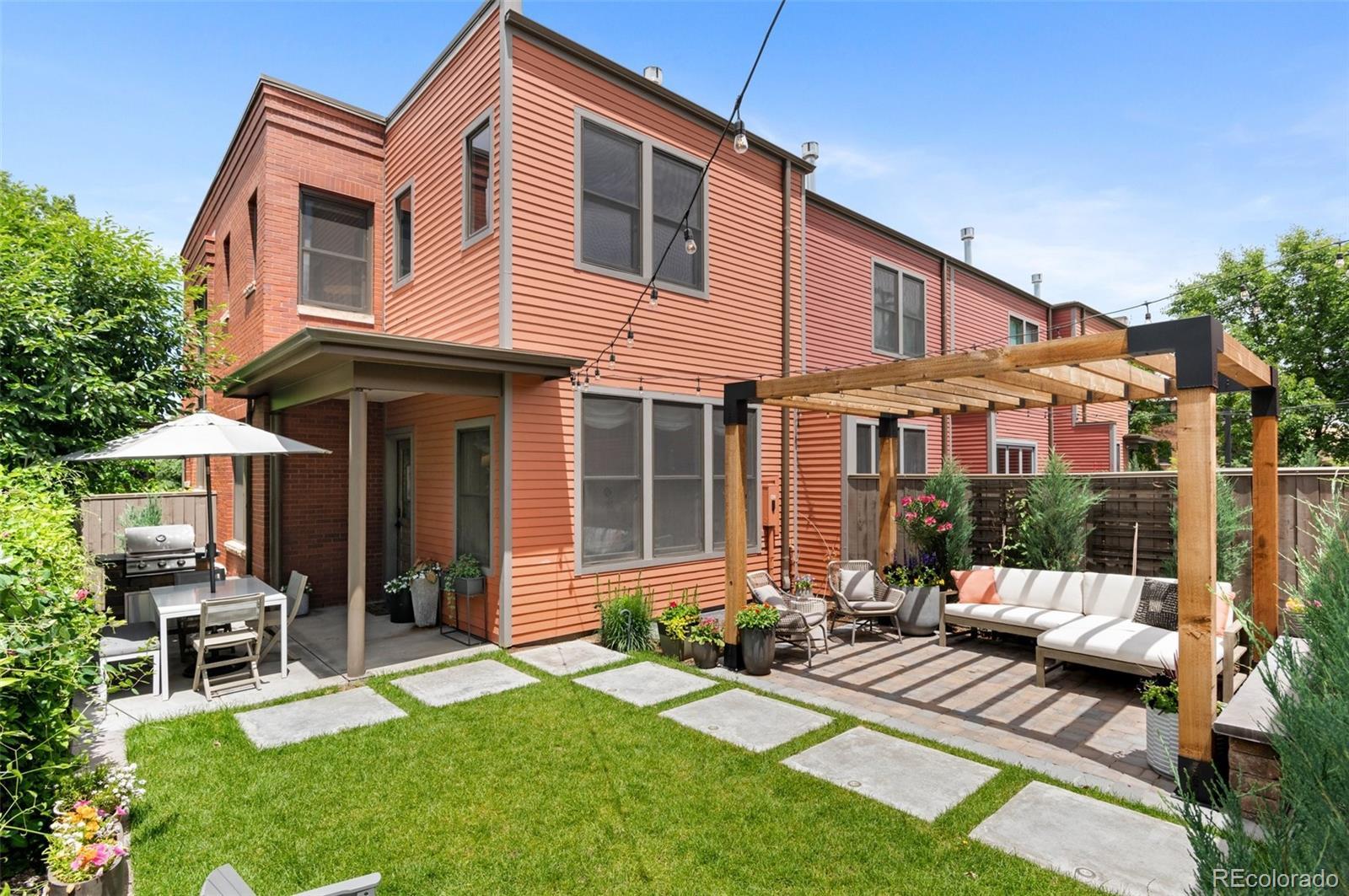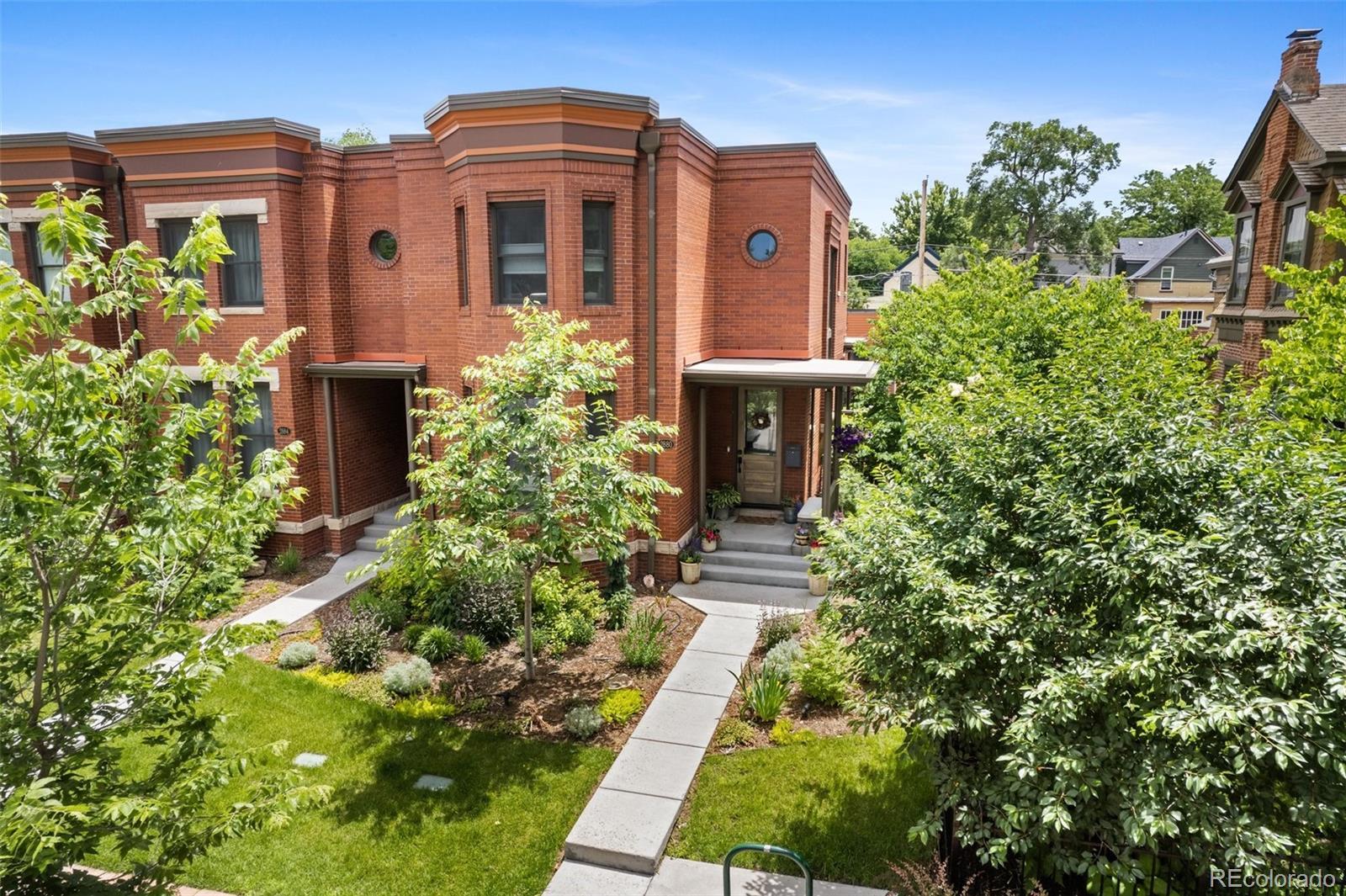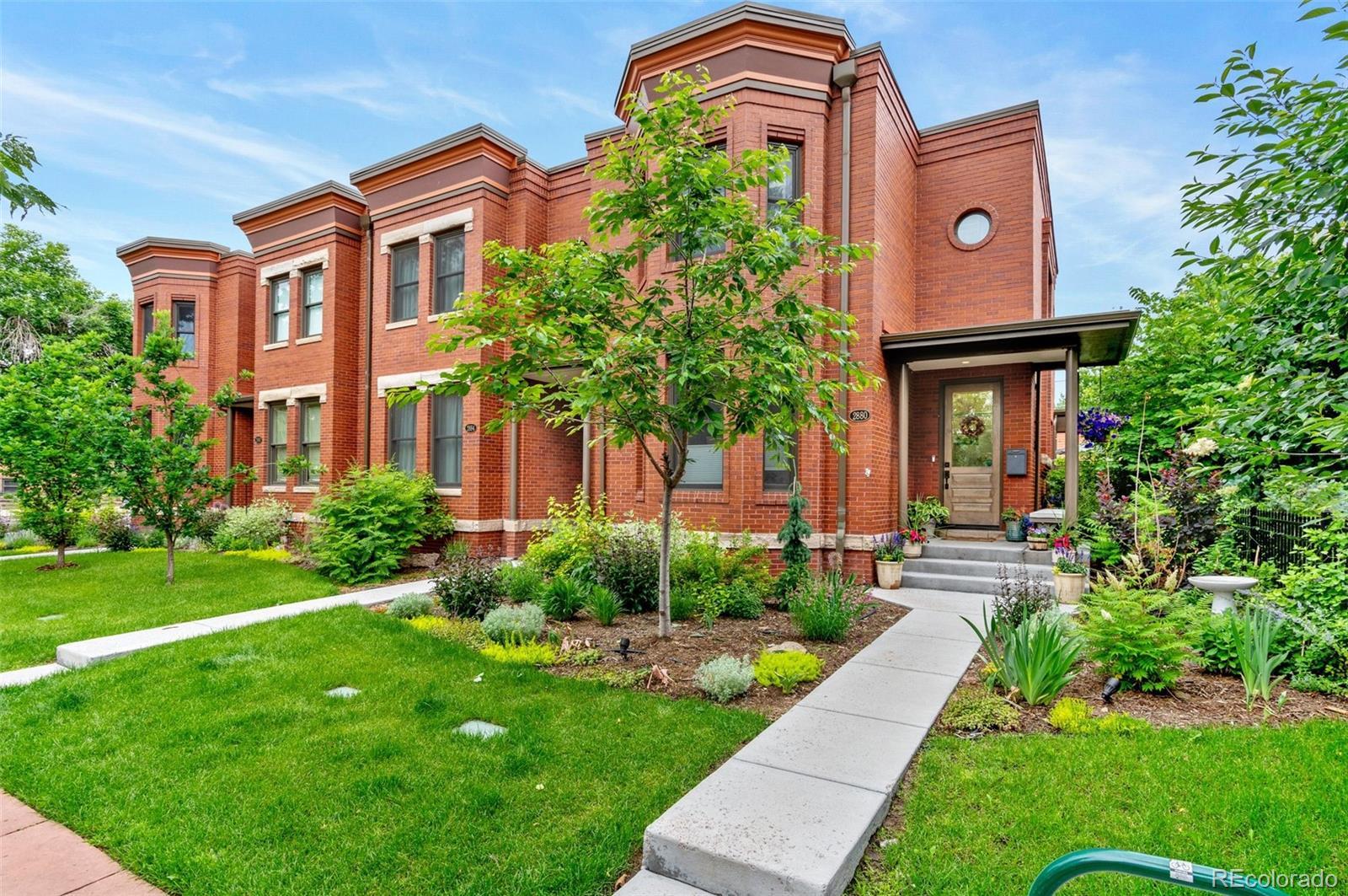 Welcome to this thoughtfully designed and elegantly appointed end-unit townhome located in the heart of historic Curtis Park. Constructed in 2018, this four-bedroom, four-bathroom residence harmoniously combines the charm of Curtis Street with its brick construction, covered front porch, and two-story bay windows, while simultaneously embracing the contemporary amenities sought by discerning buyers. The open floor plan, high ceilings, and three-story grand staircase that floods the basement with natural light create a spacious and inviting space. Upon entering the foyer, the main floor features an office, gourmet kitchen, dining area, and a great room. The chef-inspired kitchen boasts an expansive eat-in island, quartz countertops, stainless steel appliances, a six-burner gas stove with a custom Zephyr hood, walk-in California Closet designed butler pantry, and overlooks the dining area and great room with a gas fireplace. Ascending the light-filled staircase to the upper level, the primary en-suite bedroom offers a walk-in closet, electronically shaded skylight, and an attached five-piece bath with a soaking tub and large shower. It is conveniently separated from the other two bedrooms by a laundry room with task sink and a full bath. The fully-finished spacious lower level features a living room, office nooks, a fitness area with a children’s climbing wall and an oversized additional bedroom with a walk-in closet, egress, full bath and additional storage. The meticulously maintained landscaped grounds include an outdoor dining area, built-in Blaze gas grill, a paver patio with pergola, a smart sprinkler system with drip lines and architectural lighting. The oversized two-car detached garage with custom storage solutions is located off a recently paved wide alleyway. This well-constructed home is situated one block from Curtis Park, three blocks from RiNo’s Larimer Street, and four blocks from Five Point’s Welton Street corridor.