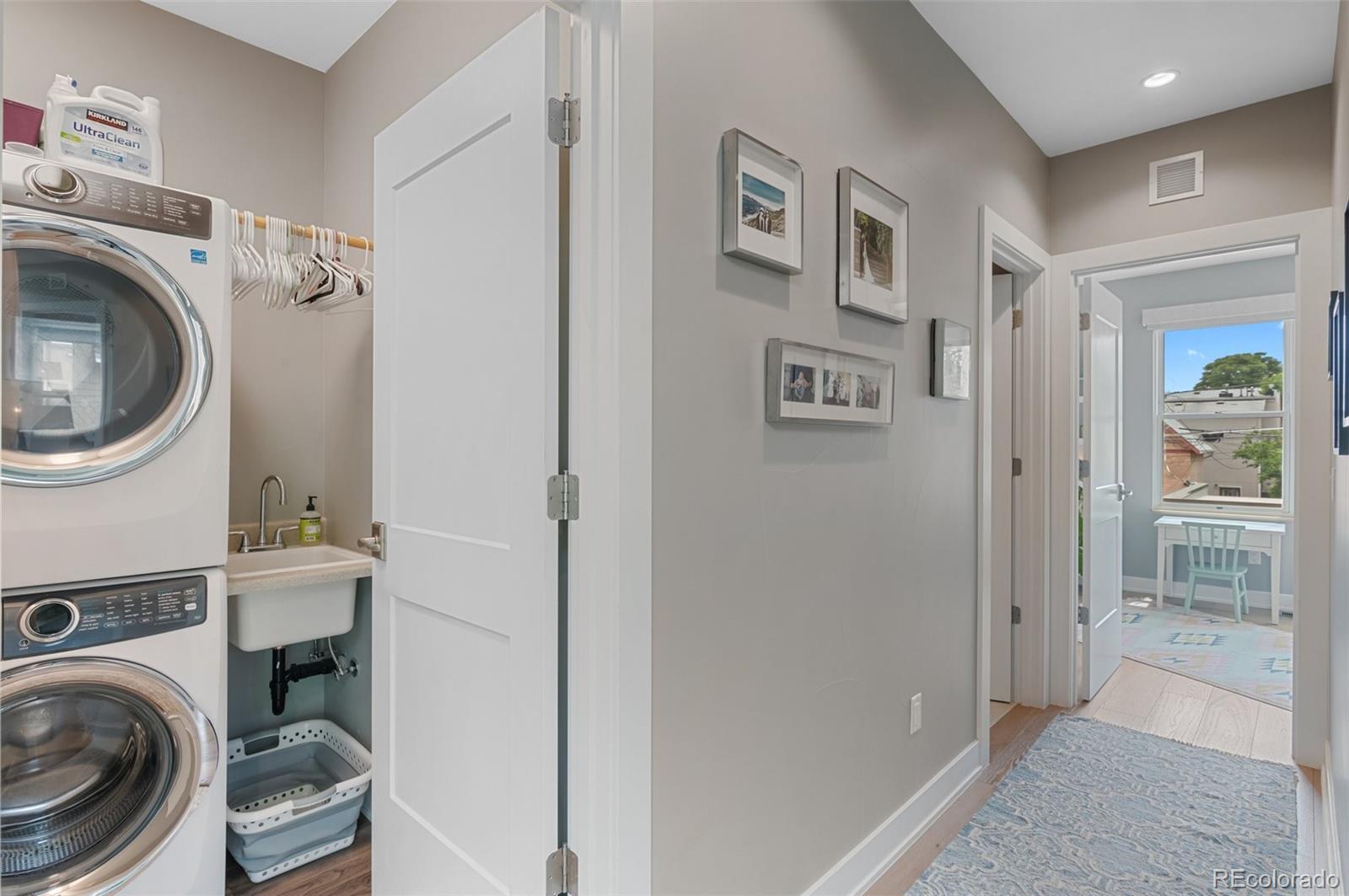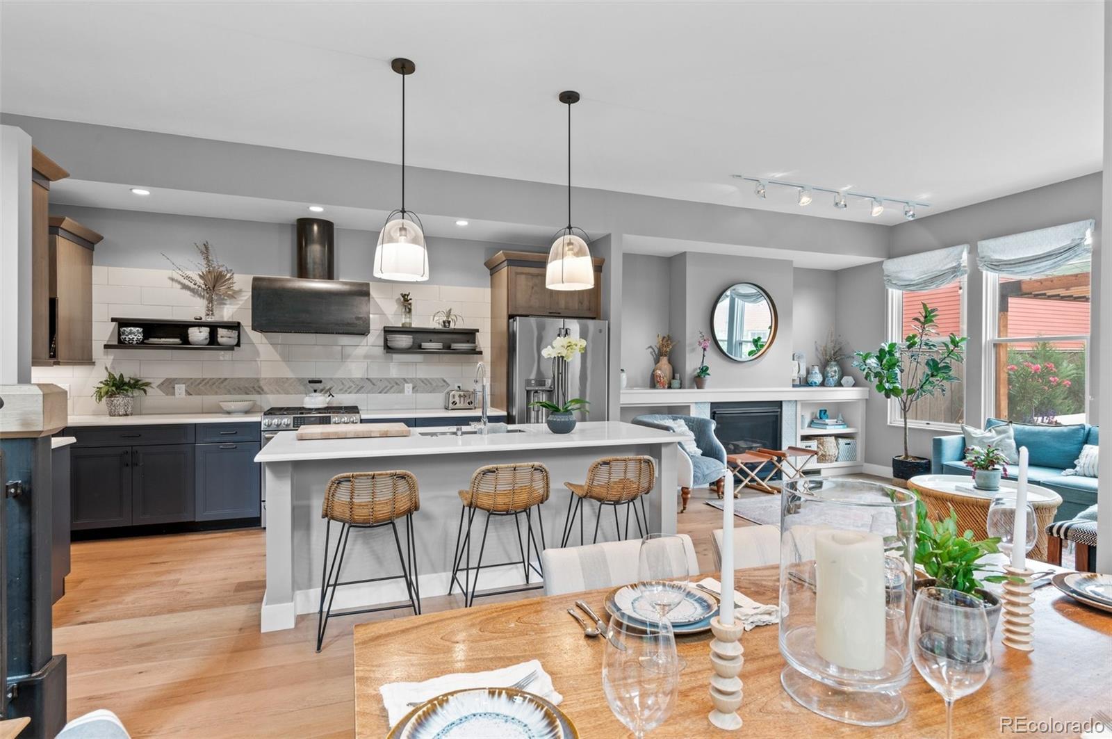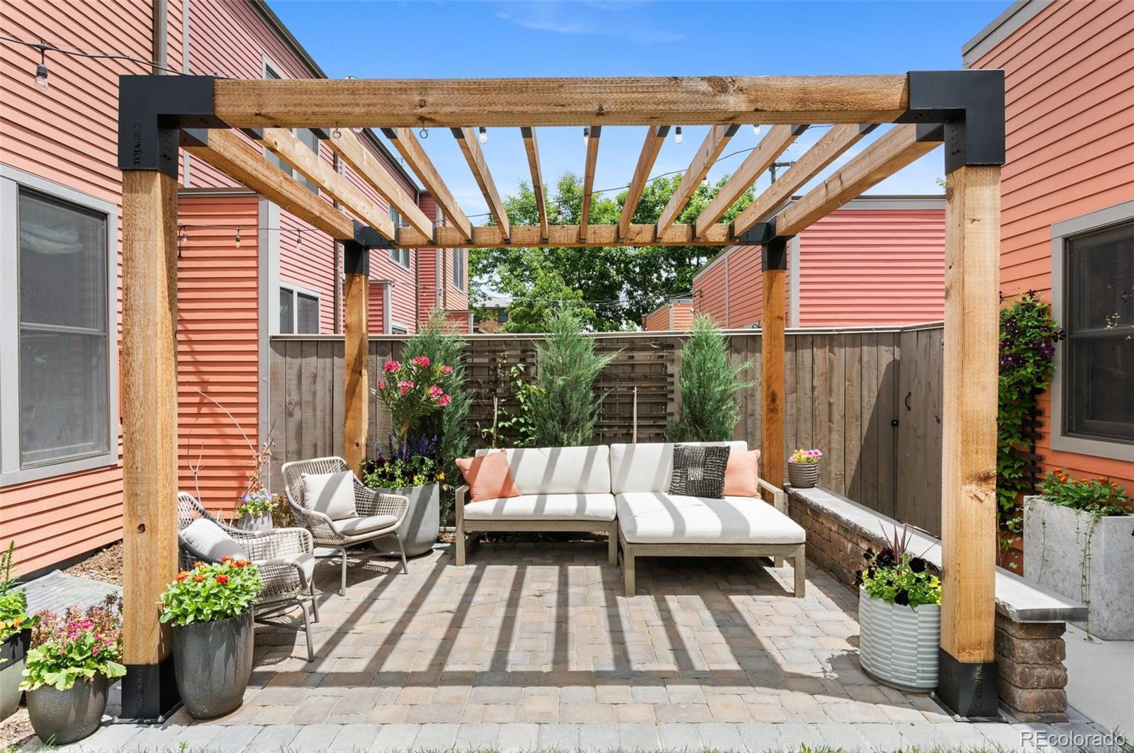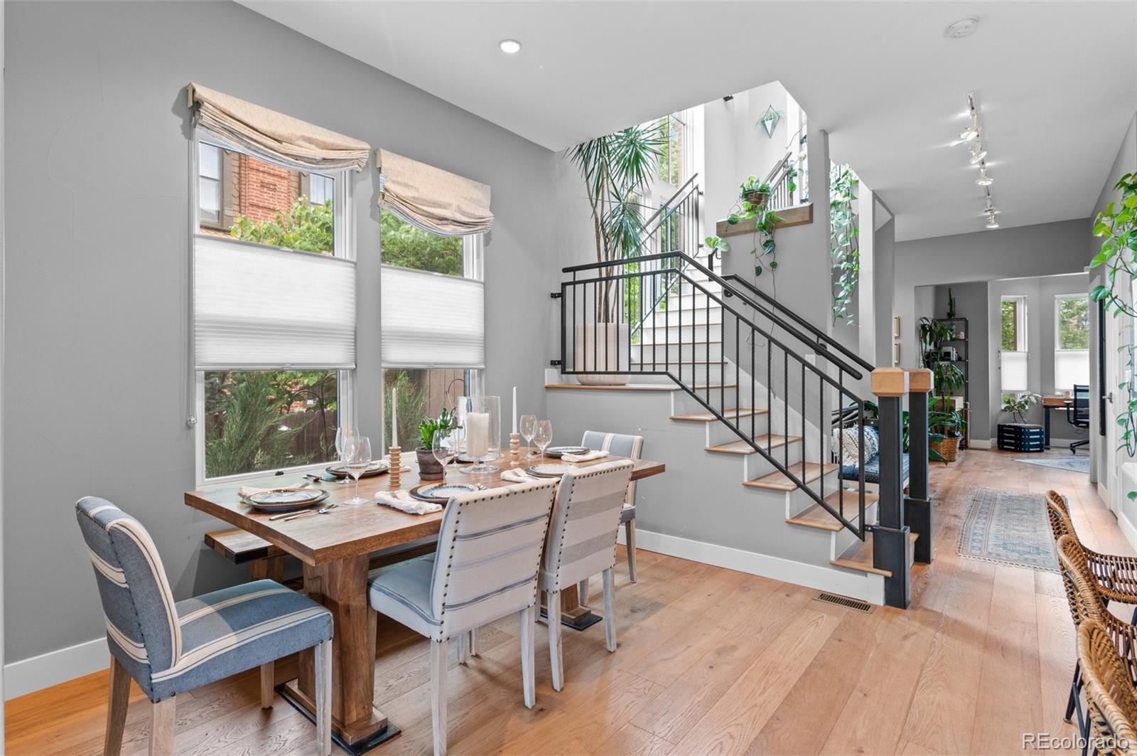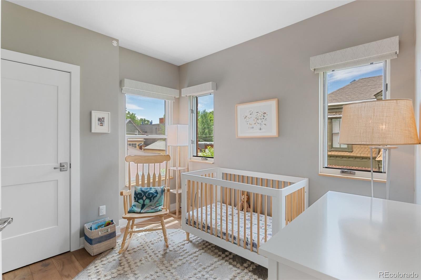 Welcome to this thoughtfully designed and elegantly appointed end-unit townhome located in the heart of historic Curtis Park. Constructed in 2018, this four-bedroom, four-bathroom residence harmoniously combines the charm of Curtis Street with its brick construction, covered front porch, and two-story bay windows, while simultaneously embracing the contemporary amenities sought by discerning buyers. The open floor plan, high ceilings, and three-story grand staircase that floods the basement with natural light create a spacious and inviting space. Upon entering the foyer, the main floor features an office, gourmet kitchen, dining area, and a great room. The chef-inspired kitchen boasts an expansive eat-in island, quartz countertops, stainless steel appliances, a six-burner gas stove with a custom Zephyr hood, walk-in California Closet designed butler pantry, and overlooks the dining area and great room with a gas fireplace. Ascending the light-filled staircase to the upper level, the primary en-suite bedroom offers a walk-in closet, electronically shaded skylight, and an attached five-piece bath with a soaking tub and large shower. It is conveniently separated from the other two bedrooms by a laundry room with task sink and a full bath. The fully-finished spacious lower level features a living room, office nooks, a fitness area with a children’s climbing wall and an oversized additional bedroom with a walk-in closet, egress, full bath and additional storage. The meticulously maintained landscaped grounds include an outdoor dining area, built-in Blaze gas grill, a paver patio with pergola, a smart sprinkler system with drip lines and architectural lighting. The oversized two-car detached garage with custom storage solutions is located off a recently paved wide alleyway. This well-constructed home is situated one block from Curtis Park, three blocks from RiNo’s Larimer Street, and four blocks from Five Point’s Welton Street corridor.