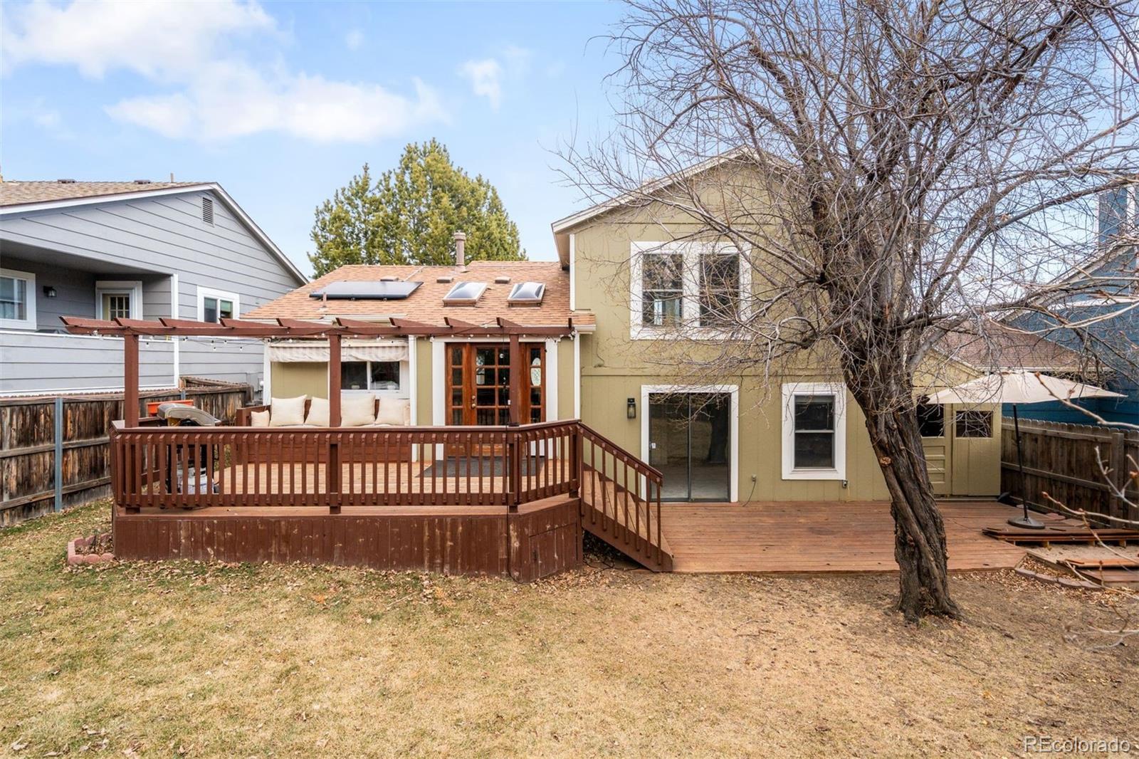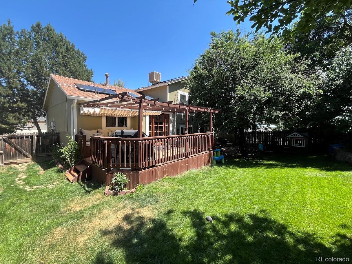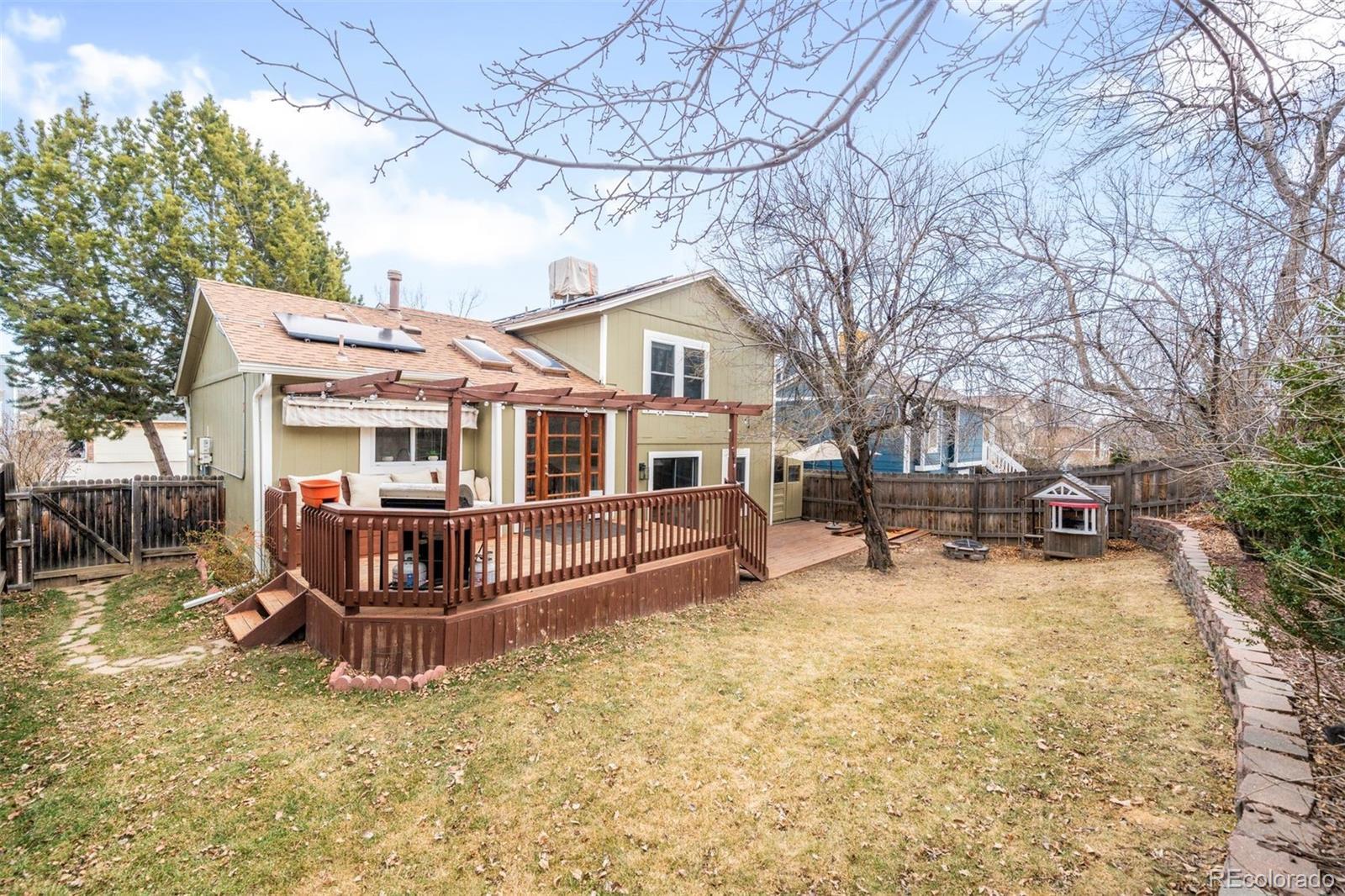 Move-in ready and filled with natural light, this fully updated home offers an open, airy main level with vaulted ceilings and skylights that enhance the bright, welcoming feel. Located in the sought-after Ralston Valley neighborhood of Arvada, it’s walkable to Stott Elementary, just 10 minutes from all the restaurants, shops and farmers markets in Olde Town Arvada, and close to trails, parks, and convenient highway access. The light-filled kitchen features stainless steel appliances, under-cabinet lighting, a cozy breakfast nook, and ample cabinet storage. Upstairs, three bedrooms and a full bathroom provide comfortable living, while vaulted ceilings in both the spacious primary suite and a secondary bedroom add warmth, character, and a sense of openness. The large lower-level living area includes a powder room, laundry closet, and direct access to the backyard and patio. Outside, a pergola-covered deck overlooks the well-kept, fully fenced yard, complete with a sandpit for the kids and an attached work/storage shed with electricity, perfect for hobbies, projects, or extra storage. The backyard features mature plum and apple trees - a great opportunity for making homemade cider! Enjoy the added benefit of owned solar panels to help offset utility costs. A home designed for easy living, inside and out!