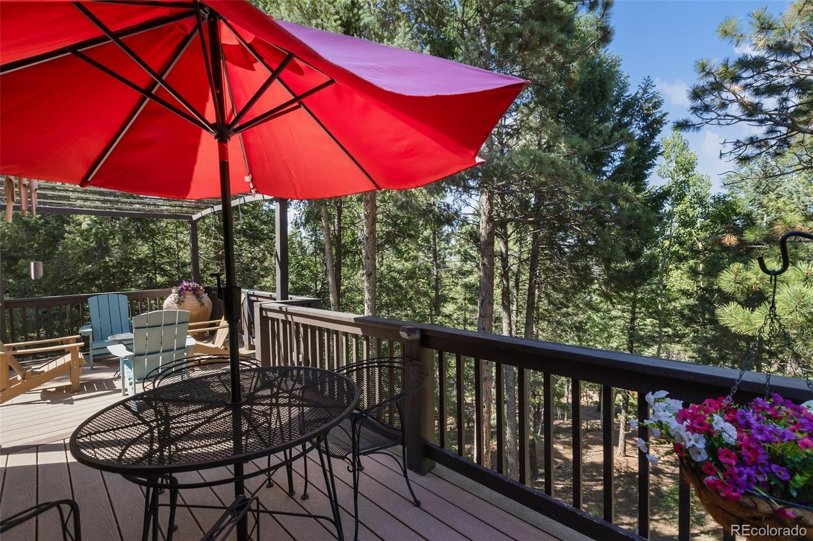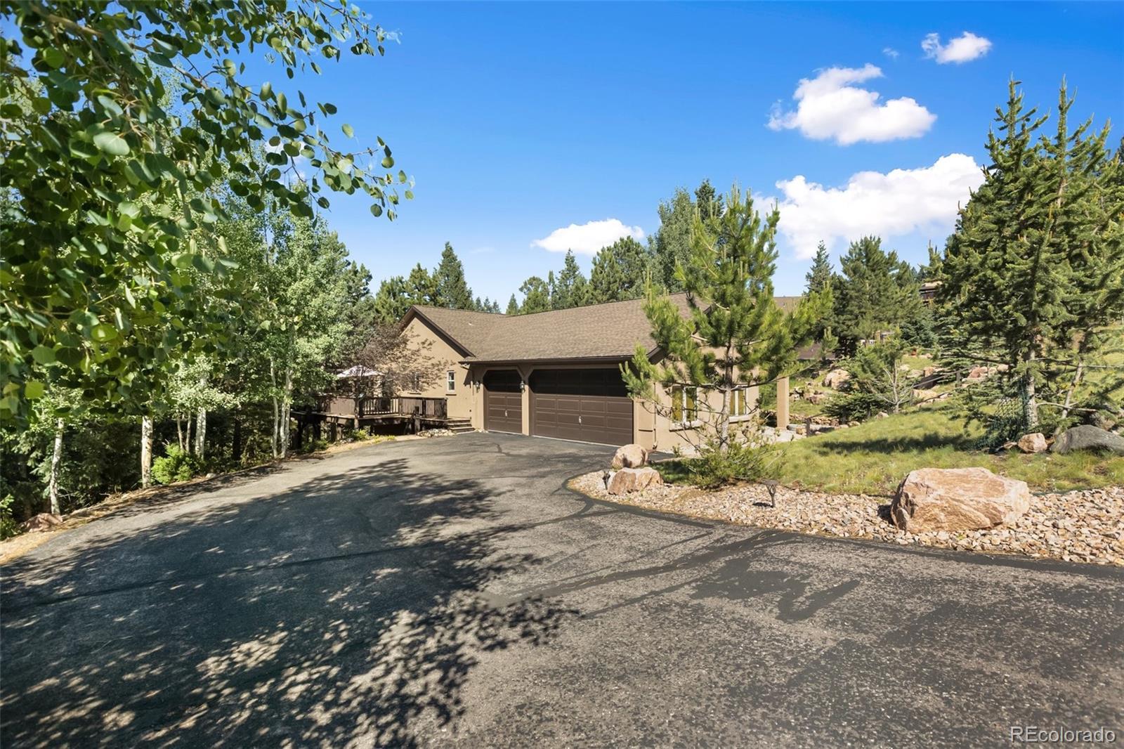 Welcome to your mountain dream home in the heart of Woodland Park! Tucked away on over half an acre on a wooded lot situated on a quiet cul-de-sac, this beautifully maintained 4-bedroom, 3-bathroom residence offers a total square footage of 3,340 comfortable living space, combining peaceful mountain living with thoughtful modern upgrades. Inside, you’ll find a warm and spacious layout featuring stunning wood floors, new carpet in the basement, and fresh paint throughout. The main level flows effortlessly from the cozy living room with a fireplace to the dining area and open-concept kitchen, highlighted by a huge walk-in pantry, gorgeous stone countertops, and solid wood cabinets. Whether you’re hosting a dinner party or enjoying a quiet evening in, this home was designed for comfort and connection. Step out onto the expansive composite wrap-around deck ideal for entertaining friends and family, so private, and it feels like you're up in the trees. With four generously sized bedrooms and three baths, there’s space for everyone to feel at home. Additional highlights include an oversized 3-car garage, on-demand gas water heater, two furnaces (one for each level) for energy-efficient comfort, smart wiring throughout, and a new dual lift pump sewer system installed in September 2023, driveway was just resurfaced this year. Also, the unfinished space in the basement is ready to add two additional rooms, a bathroom, or whatever your heart desires. Located just minutes from downtown Woodland Park, yet surrounded by nature, this property offers the best of both worlds—tranquility and convenience. This is a must-see. Schedule a showing today.