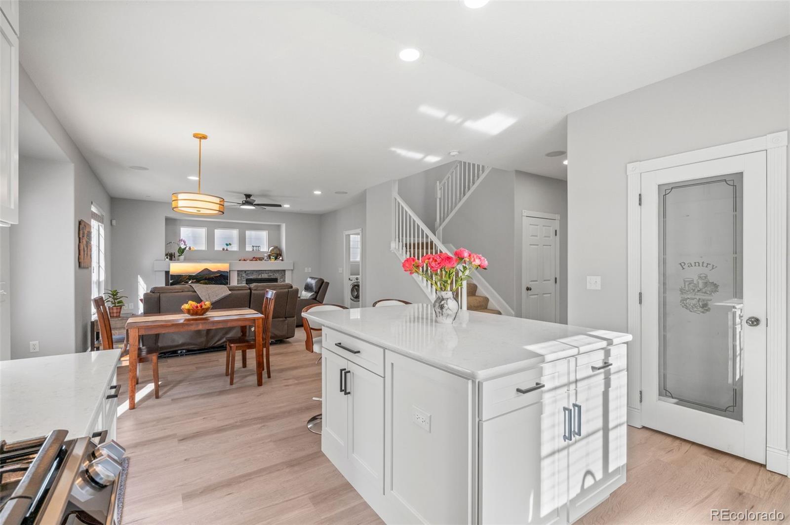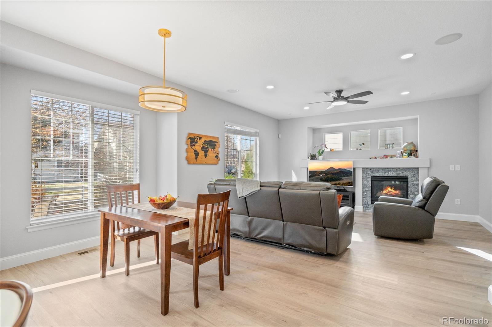 Welcome to Longmont’s Renaissance neighborhood! This former model home sits on a desirable corner lot across from a park, offering privacy and a charming backyard with mature trees, shade, and a spacious patio. The home has been thoughtfully upgraded providing the most comfortable, clean and beautiful interiors. Recent updates include a sparkling new kitchen with purpose designed cabinets, quartz countertops, a generous island, stainless steel appliances, tile backsplash, and a walk-in pantry. Additional features include LVP flooring, fresh interior and exterior paint, new light fixtures, smart home features and 9’ ceilings. The main floor offers a study, powder room, dining area, open-concept kitchen and living room, a convenient laundry room leading to a spacious 2 car garage. The bright living area showcases large west-facing windows and a gas fireplace. Upstairs, the spacious 23’ x 14’ primary suite features a five-piece ensuite with a jetted tub, modern finishes, and a generous walk-in closet. Two bedrooms enjoy park views. Also, there’s an unfinished basement ready for your design ideas. Pride of ownership shines throughout this beautifully maintained home in a highly sought-after neighborhood.