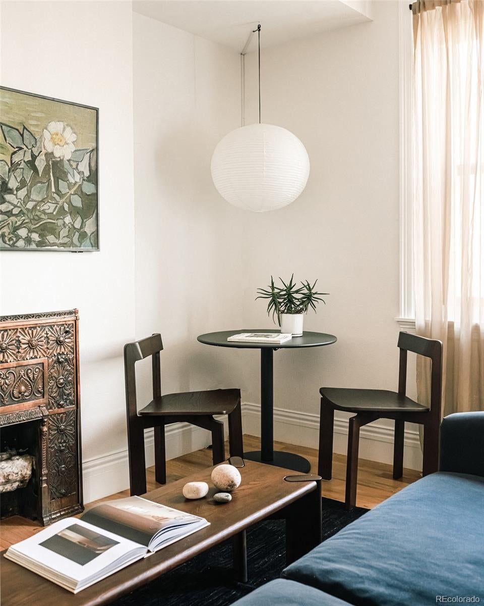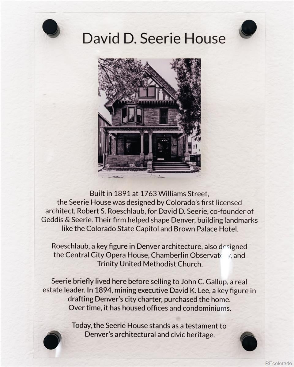 At the Historic Seerie Residence you'll find a home that's both cozy and filled with soul. Set within a landmark building designed by Robert S. Roeschlaub, the space carries a quiet richness that reveals itself through light, texture, and the enduring character of its architecture. Built in 1890, the Seerie Residence stands as one of Denver’s most architecturally significant historic homes. Roeschlaub, Colorado’s first licensed architect and a former president of the American Institute of Architects, shaped much of early Denver through his work on schools, churches, civic buildings, and cultural landmarks, including the Central City Opera House, Trinity United Methodist Church, and the Chamberlin Observatory. Located on the second floor, Suite 202 offers a sense of ease and warmth shaped by original architectural details and generous ceiling heights. Large windows provide abundant natural light throughout the day, while the layout balances openness with comfort. The living space lends itself equally to quiet evenings and casual gatherings, with an open plan and updated kitchen. The bedroom comfortably accommodates a king-sized bed and features a charming window nook, ideal for slow mornings or reading. The bathroom includes a soaking tub and dimmable mirrors, creating a calm atmosphere. Modern updates have been carefully integrated while preserving the building’s historic character, including original elements such as the copper fireplace. Residents also enjoy access to a shared covered front porch and a fenced yard, extending the living experience beyond the interior walls. Located in Uptown and City Park West, the Seerie Residence sits moments from neighborhood cafés, cultural institutions, City Park, the Denver Botanic Gardens, and major medical campuses, offering a walkable, connected lifestyle rooted in history and place.