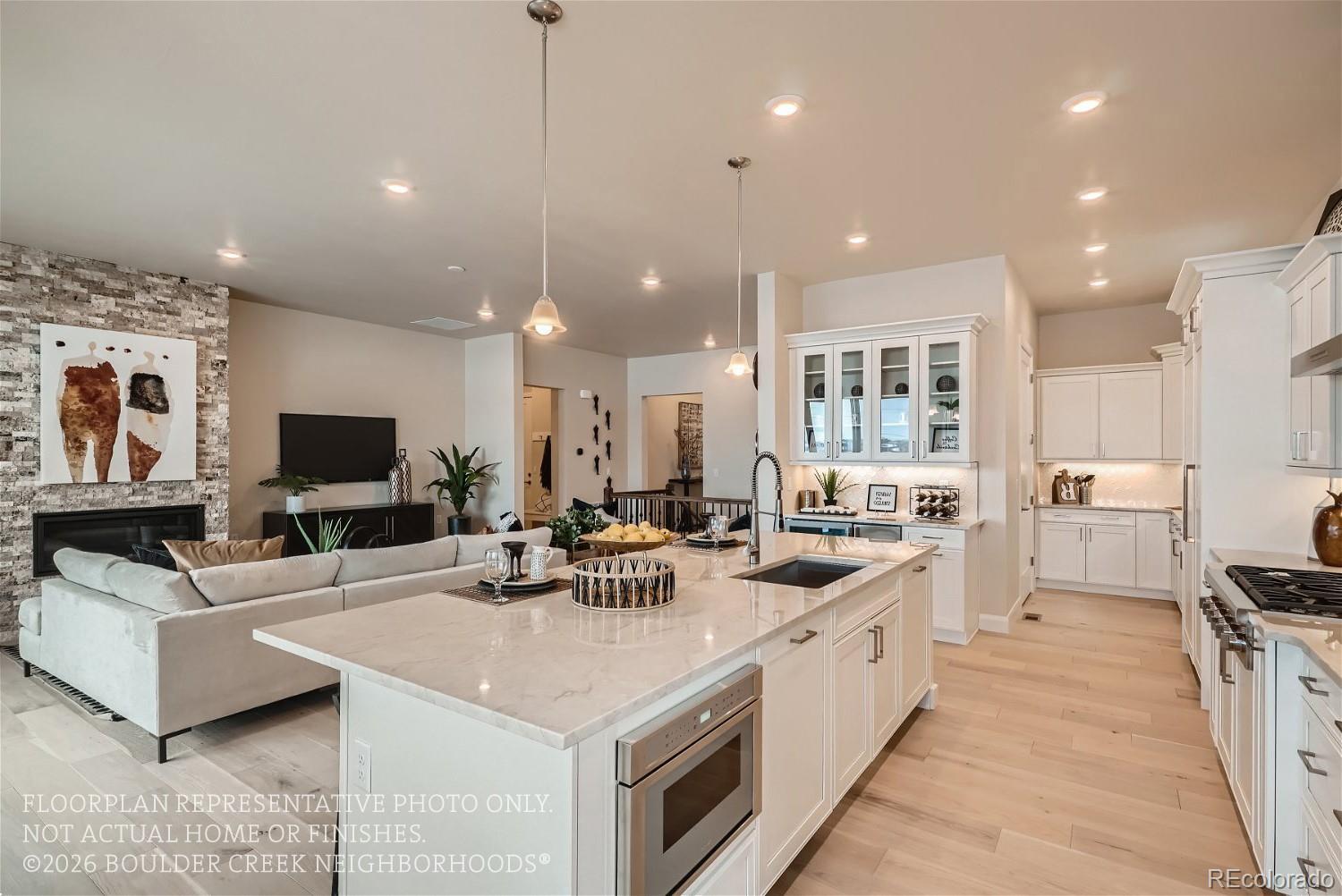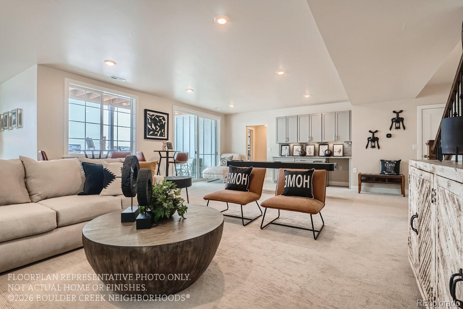 Move In Ready Ranch Home with Full Basement Available Now. Welcome to Boulder Creek Neighborhoods Signature line of homes, easyHouse! With thoughtful touches to make this home comfortable at every stage of life, long term livability is at the forefront of the design of our homes. Wider doors, raised outlets, no steps to outdoor living spaces all paired up with lower maintenance services that will shovel the snow from your driveway, and sidewalks as well as cut and maintain your front lawn. Inside the home you will find everything you need on the main floor, a primary bedroom, a private quest suite, office, laundry and of course your beautiful kitchen designed around entertaining. With everything you need on the main floor of this stunning ranch you’ll never need to go to the lower level, but you’ll want to! The massive rec room with a wet bar is perfect for entertaining or relaxing and watching your favorite movie over and over again. With half of this small enclave of only 21 homes already sold, this will go quickly! So don’t wait, set up a time to come out and learn more about how Boulder Creek is making homeownership easy again. Photos of Model