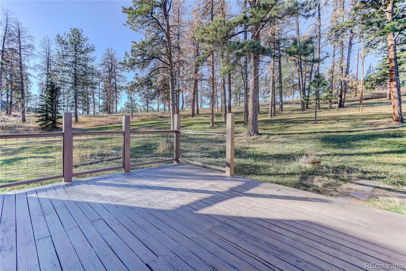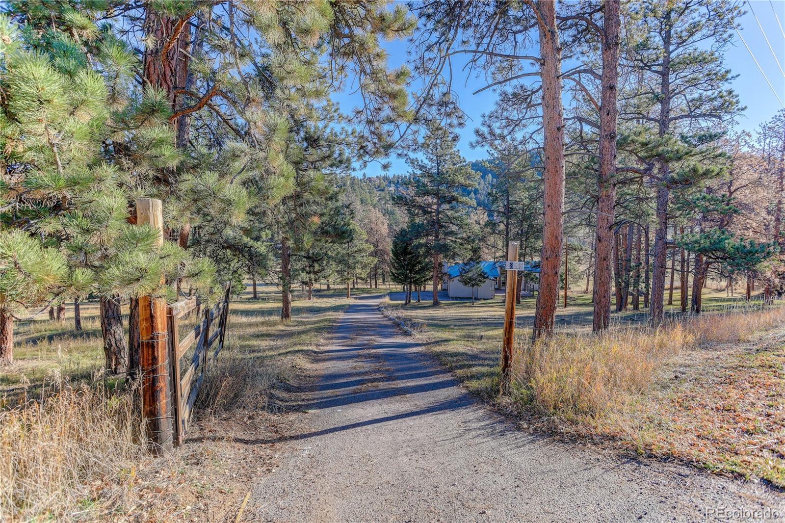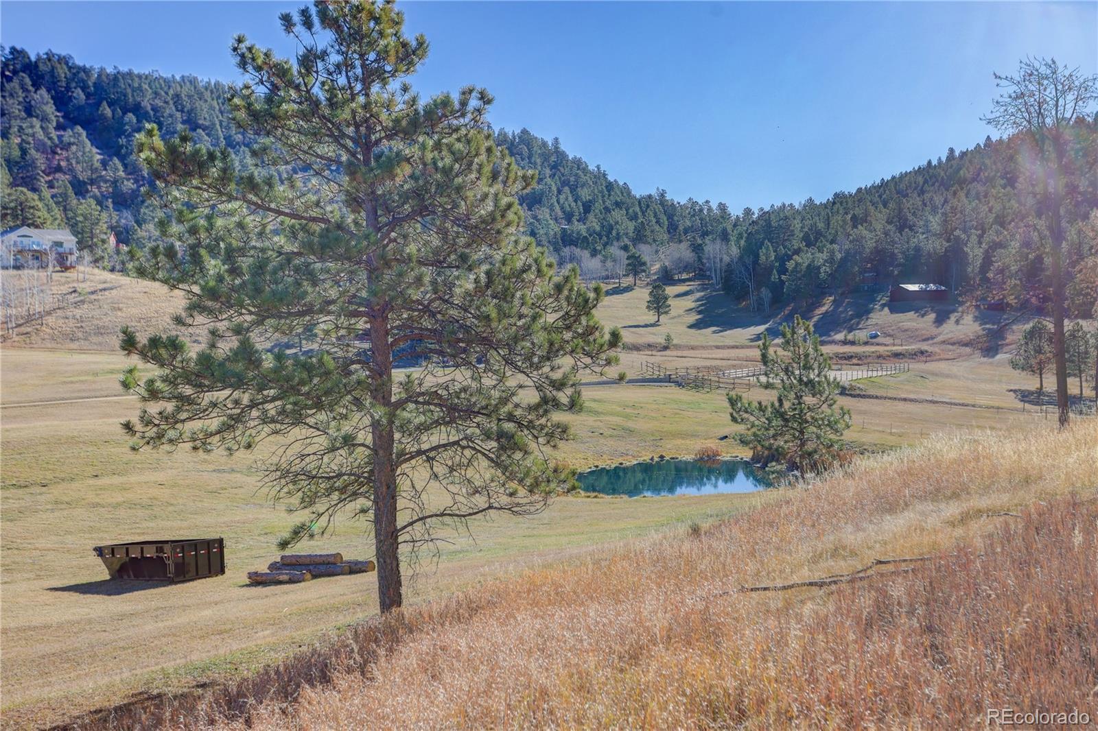 Beautifully Updated/Remodeled Home on 3.34 acres zoned A-2, with end of cul-de-sac privacy. Enjoy the peaceful, private deck and yard accessible from both the kitchen and the primary bedroom, as you view the beautiful meadow, mountains, and pond beyond this gorgeous property! This wonderful home has been updated throughout, and the architecture is quite stunning. Both the living and dining rooms have newly refinished hardwood floors, with hardwood floor trim in the Primary bedroom, too! All bedrooms have new carpet, new paint, and new ceiling fans - just waiting for your personal touches! At the front door, a beautiful slate floor provides the perfect place to enter and enjoy all of the carefully thought-out amenities in this terrific home. Just remodeled, the kitchen is perfect for preparing and serving wonderful meals while enjoying the serene views. And, the two pantries in the kitchen provide plenty of storage space. Both full bathrooms are newly remodeled, too. In the lower level, in addition to the huge family room with a woodburning stove, you can make great use of two bonus rooms, one with a cool wood ceiling and the other with a newly refinished hardwood floor - perfect for yoga, a playroom, an art or music studio, and so much more! A new 4 bedroom septic is being installed; the fifth bedroom is non-conforming. Only 8 minutes to 285, this home allows for an easy drive to Denver and to the mountains. Don't miss this wonderful opportunity!