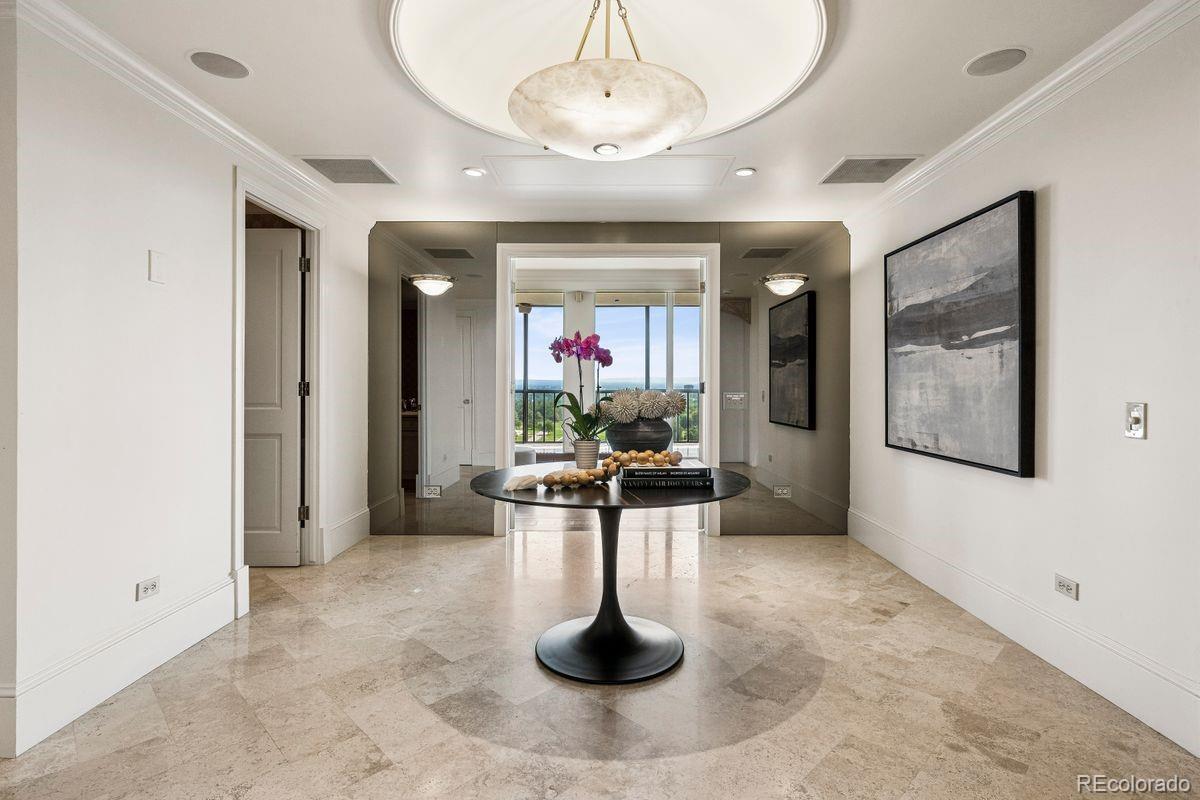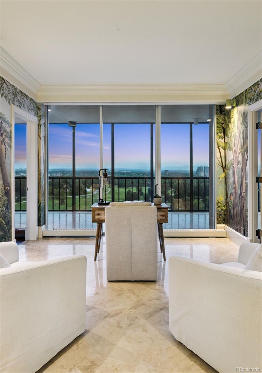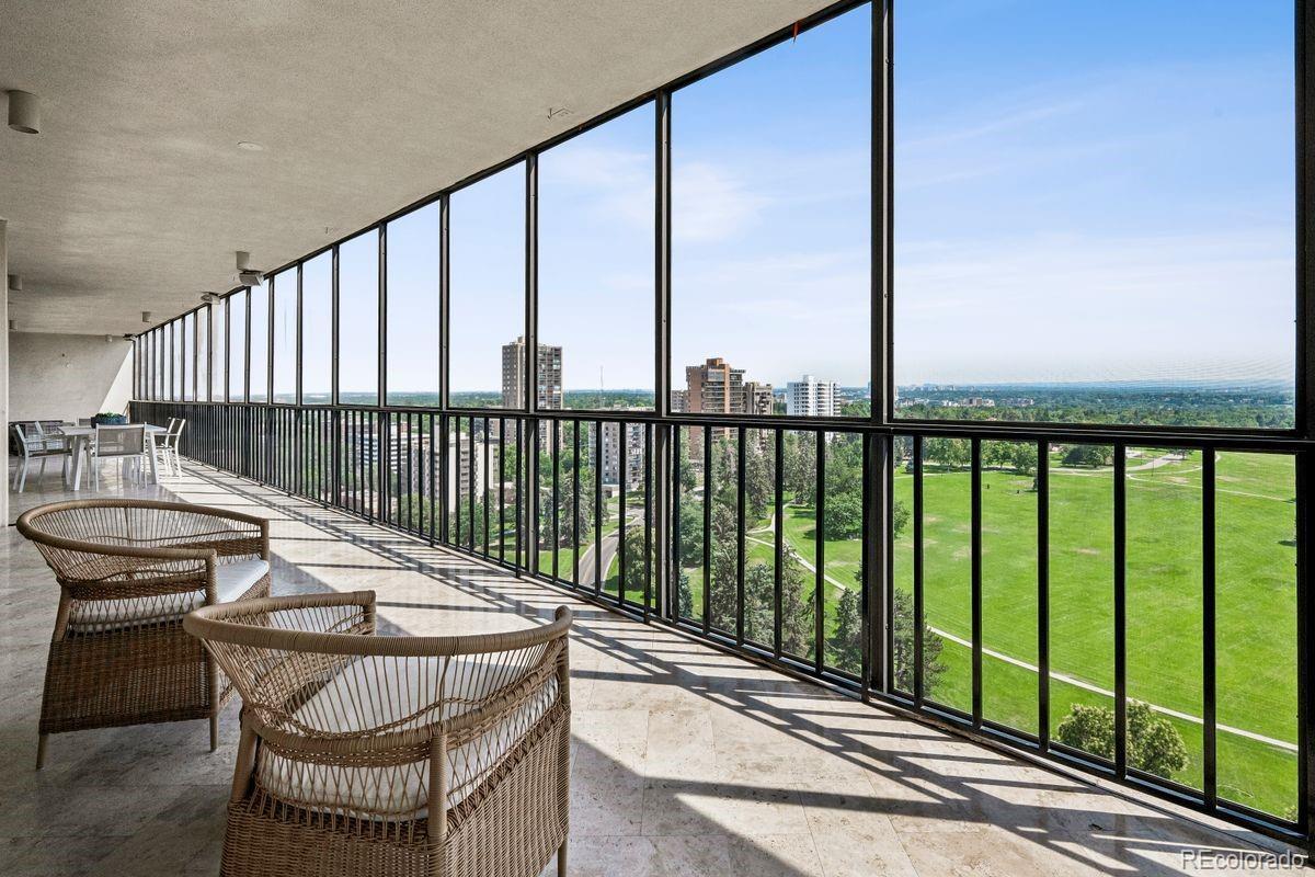 Discover a truly one-of-a-kind residence at One Cheesman Place, a landmark building designed by architect Charles Sink at the top of Cheesman Park. This full-floor penthouse on the 17th floor offers 4,100 sq ft of refined living space, privacy and phenomenal views of the Park, the city and the mountains. Live, host and relax in style. Floor-to-ceiling glass lines the entire south side of this residence and a private elevator opens directly into your foyer. The layout is spacious, with multiple living areas designed for both comfort and entertaining. The sunroom is so special, handpainted years ago by an artist at Denver's Natural History Museum. The primary suite includes an oversized closet, en-suite bath and direct access to the terrace. A secondary bedroom with en-suite bath and walk-in closet is perfect for guests. The enormous study could be a third bedroom. Catering kitchen too! Step onto the full-length, screened-in terrace for indoor-outdoor living year-round. Just outside your door, Cheesman Park’s 1.4 mile loop invites you to enjoy morning walks and peaceful sunset strolls through one of Denver’s most beloved parks. Back inside, the hardwood floors in this penthouse are newly refinished and the walls are freshly painted. Fire screens at elevators. The 2 electrical panels are brand new and there is a hookup for a gas grill on the terrace. The HOA fee at 1201 Williams covers: Full time building manager • Full time building engineer • Security 7 days a week from 8am-midnight • Gas, electric, water for each unit • Pool and fitness room • Storage, resident parking and visitor parking • Guest suite availability ($75/night housekeeping fee) • Building insurance • Snow removal and landscaping • Elevator maintenance • Wifi is available in the building at an extra fee. A rare opportunity to live in this full floor unit as-is or make this spacious penthouse condo exactly what you wish. Please be in touch to learn more and schedule a private showing.