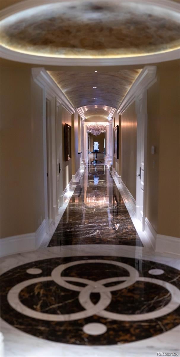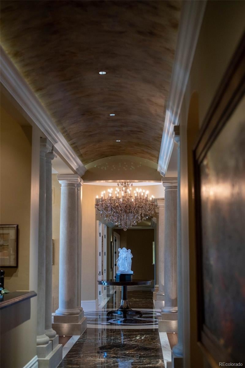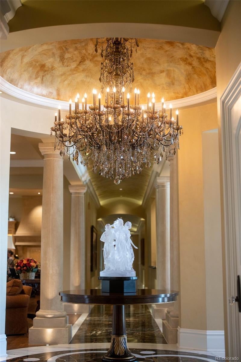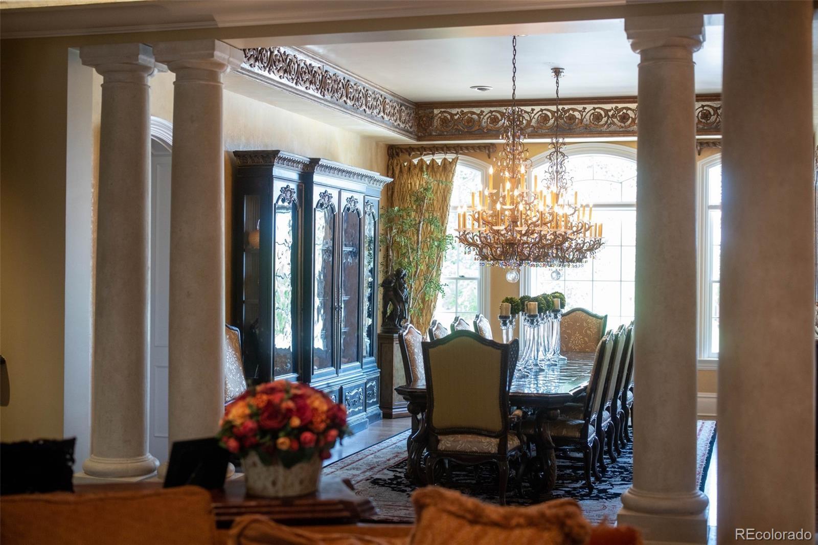 This is without question one of finest homes in Colorado! Built on an entire cul-de-sac of 6 lots, gated for privacy and safety in the exclusive Enclave Development of Walking Stick! The Kitchen was featured in Colorado Homes Sept/Oct issue in 2012, described by designer Nabeel Faizi of William Ohs as a Tuscan Retreat! It features 2 seven-foot islands, built-in Sub Zero refrigerator, Viking appliances and a French La Cornue gas range. The master bedroom suite includes male and female full bathrooms and huge walk-in closets. This amazing home includes 5 bedroom suites, 5 walk-in closets, formal dining room, breakfast nook, formal living room, gathering room, sitting room, family room, 2nd kitchen on lower level, 2 butler pantries, 2 offices, 3 jetted tubs, 2 steam baths, a large exercise room with walk-in hot tub, 2 automatic coffee makers, 7 patios, a large wine cellar and an elevator! A short list of upgrades boasts Michael Angelo marble floors, custom woodwork, doors, ironwork and stonework, back-lit onyx counter top, custom faux painting, built in display cabinets, custom lighting & a one-of-a kind stained glass window. Outside is tile roofing imported from Italy, tiled patios & driveway and a grand balcony off the master suite. The heated garage is finished & has extra storage. Home is across the street from Walking Stick Golf Course, voted the 3rd best public course in CO and minutes from Colorado's top reservoir. This amazing home sits on an entire Cul-de-sac and is gated for privacy and security!