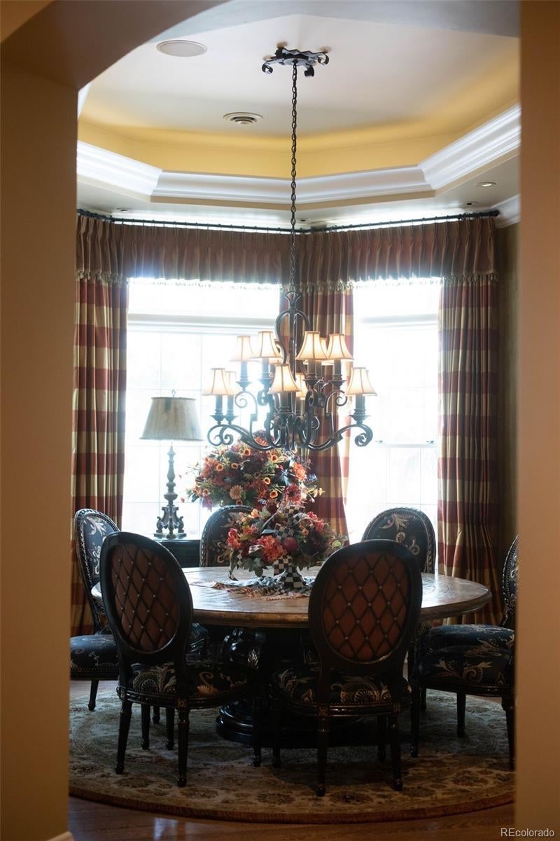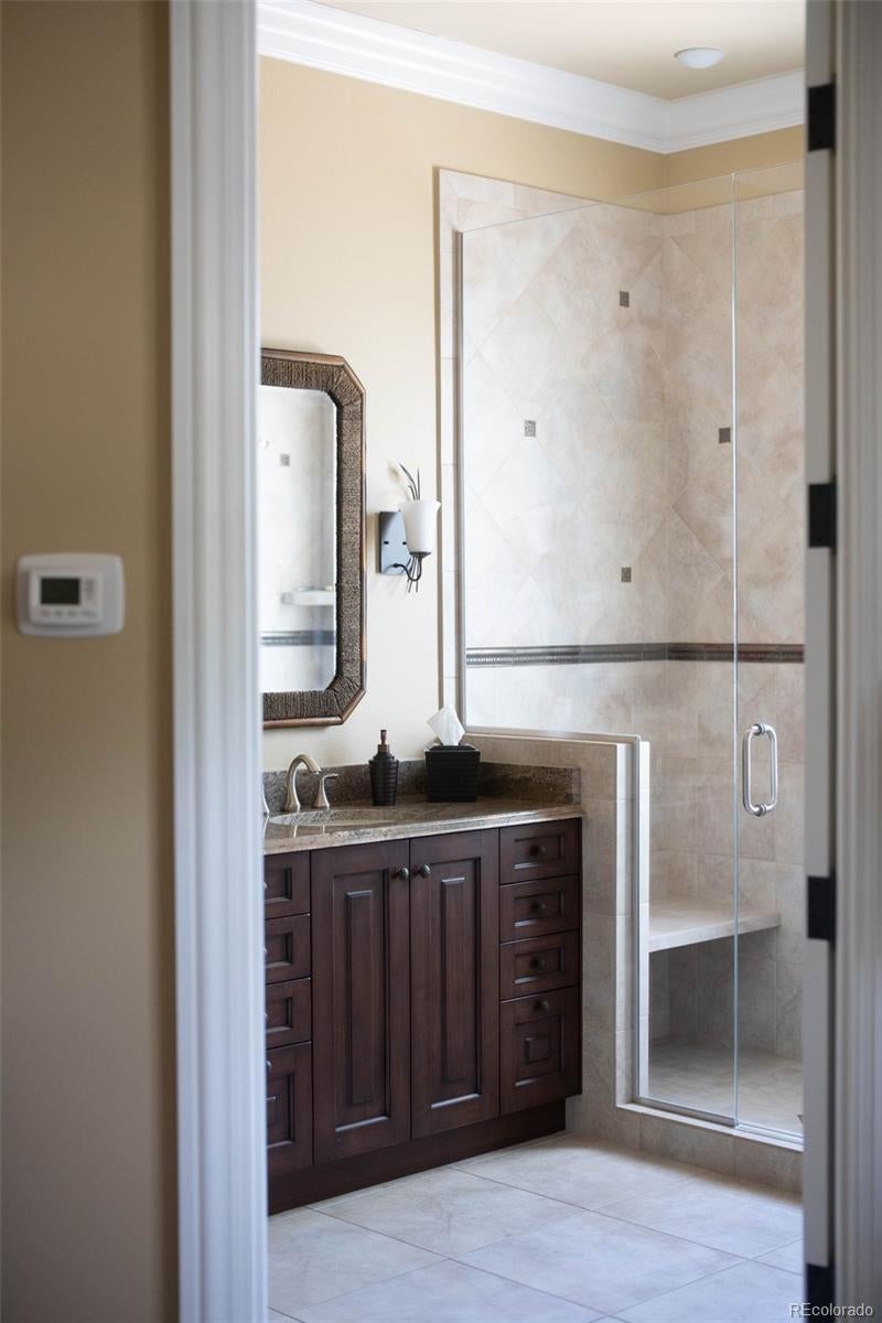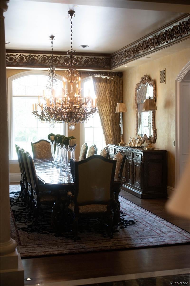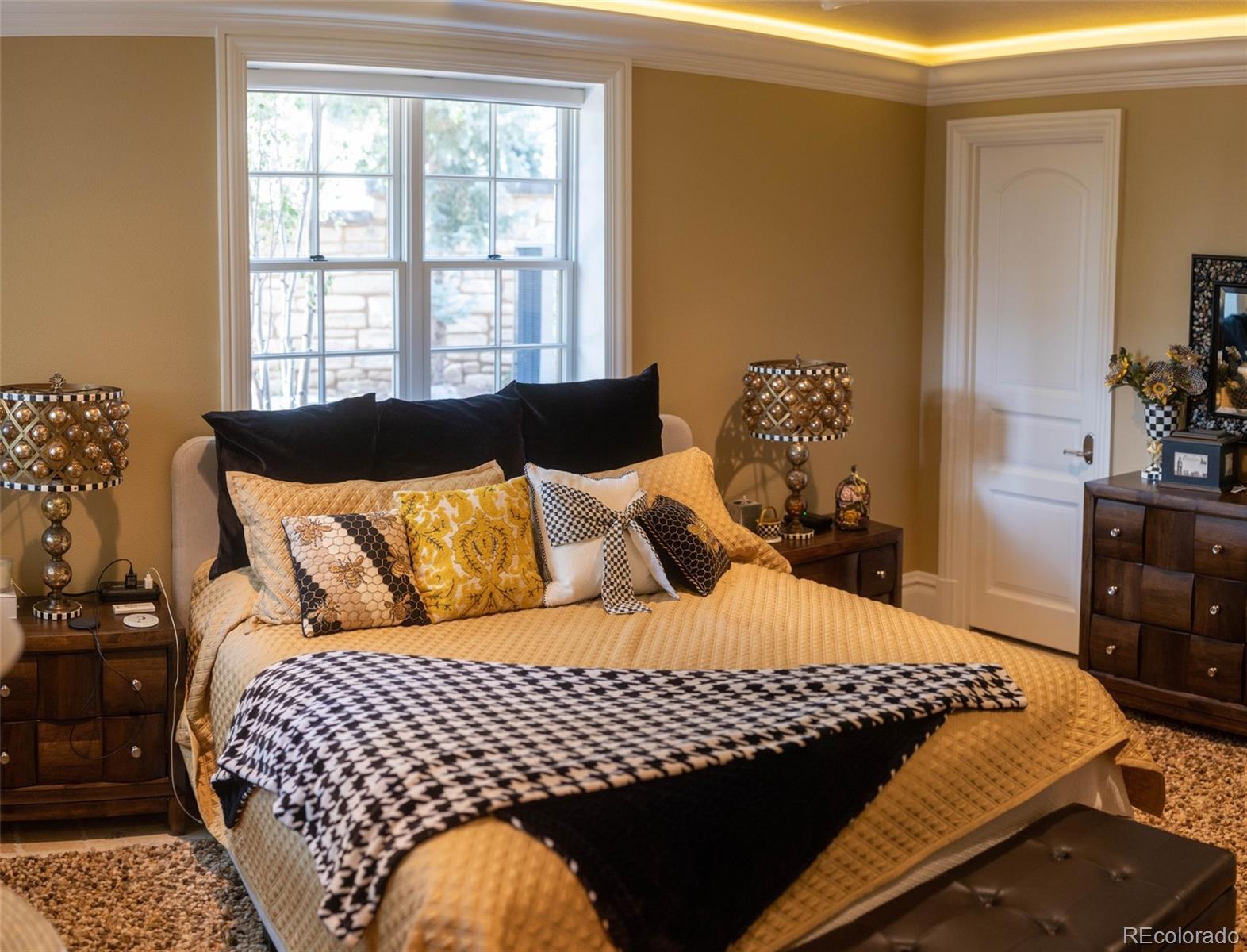 This is without question one of finest homes in Colorado! Built on an entire cul-de-sac of 6 lots, gated for privacy and safety in the exclusive Enclave Development of Walking Stick! The Kitchen was featured in Colorado Homes Sept/Oct issue in 2012, described by designer Nabeel Faizi of William Ohs as a Tuscan Retreat! It features 2 seven-foot islands, built-in Sub Zero refrigerator, Viking appliances and a French La Cornue gas range. The master bedroom suite includes male and female full bathrooms and huge walk-in closets. This amazing home includes 5 bedroom suites, 5 walk-in closets, formal dining room, breakfast nook, formal living room, gathering room, sitting room, family room, 2nd kitchen on lower level, 2 butler pantries, 2 offices, 3 jetted tubs, 2 steam baths, a large exercise room with walk-in hot tub, 2 automatic coffee makers, 7 patios, a large wine cellar and an elevator! A short list of upgrades boasts Michael Angelo marble floors, custom woodwork, doors, ironwork and stonework, back-lit onyx counter top, custom faux painting, built in display cabinets, custom lighting & a one-of-a kind stained glass window. Outside is tile roofing imported from Italy, tiled patios & driveway and a grand balcony off the master suite. The heated garage is finished & has extra storage. Home is across the street from Walking Stick Golf Course, voted the 3rd best public course in CO and minutes from Colorado's top reservoir. This amazing home sits on an entire Cul-de-sac and is gated for privacy and security!