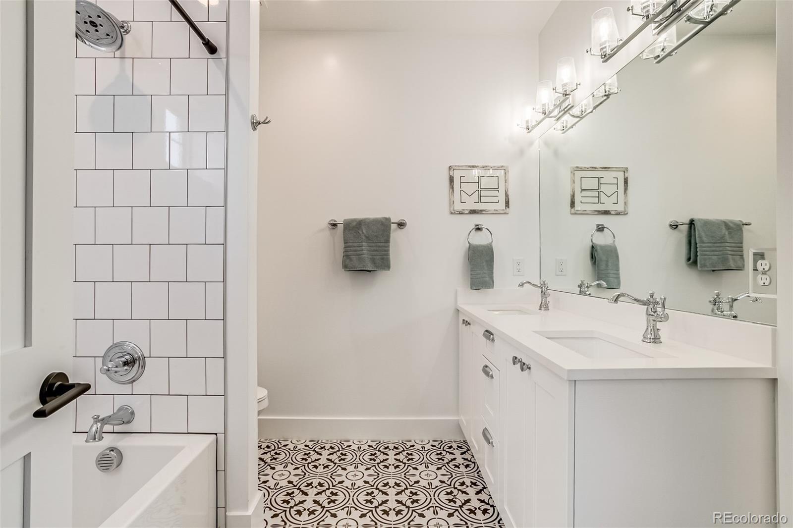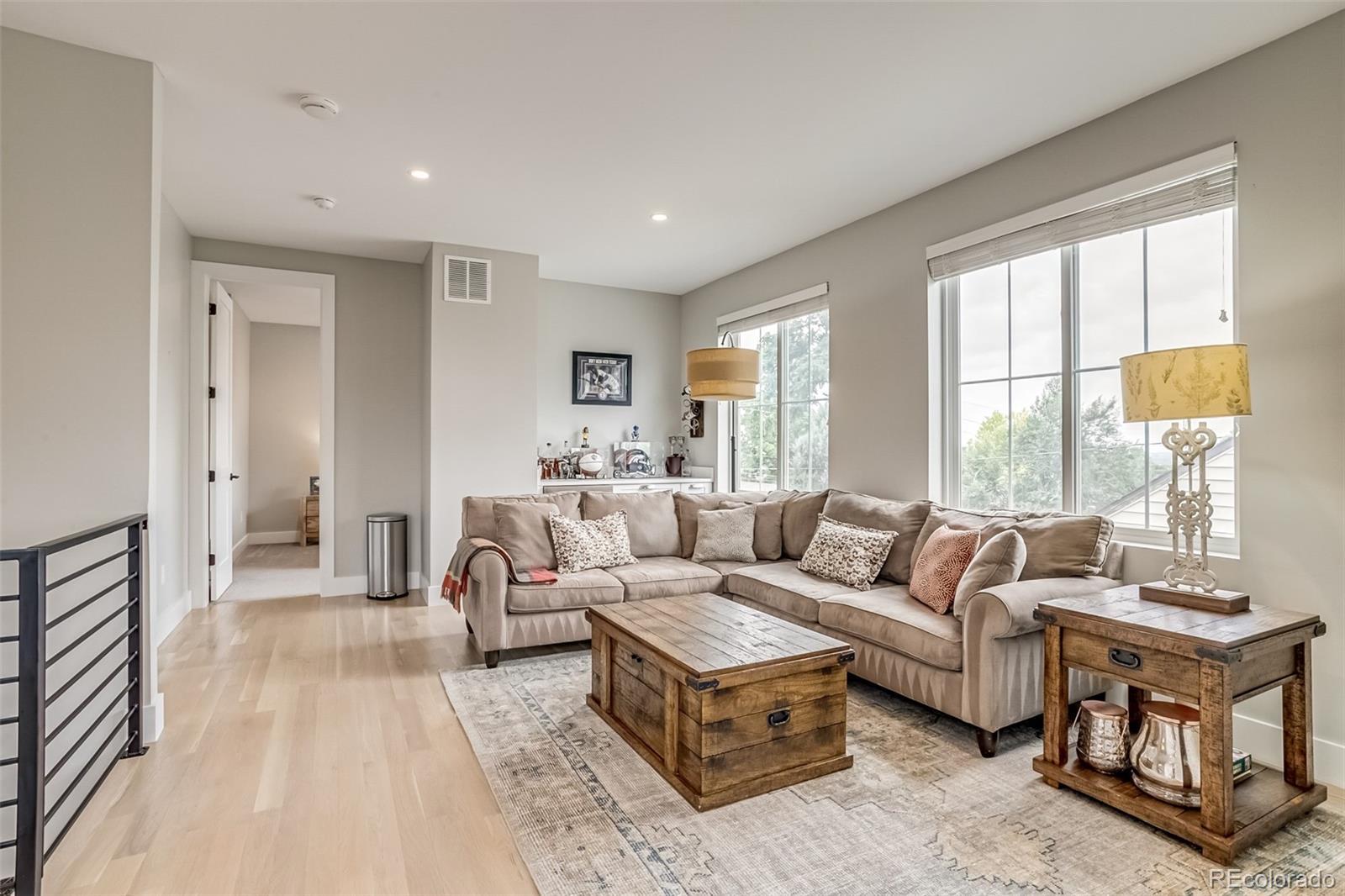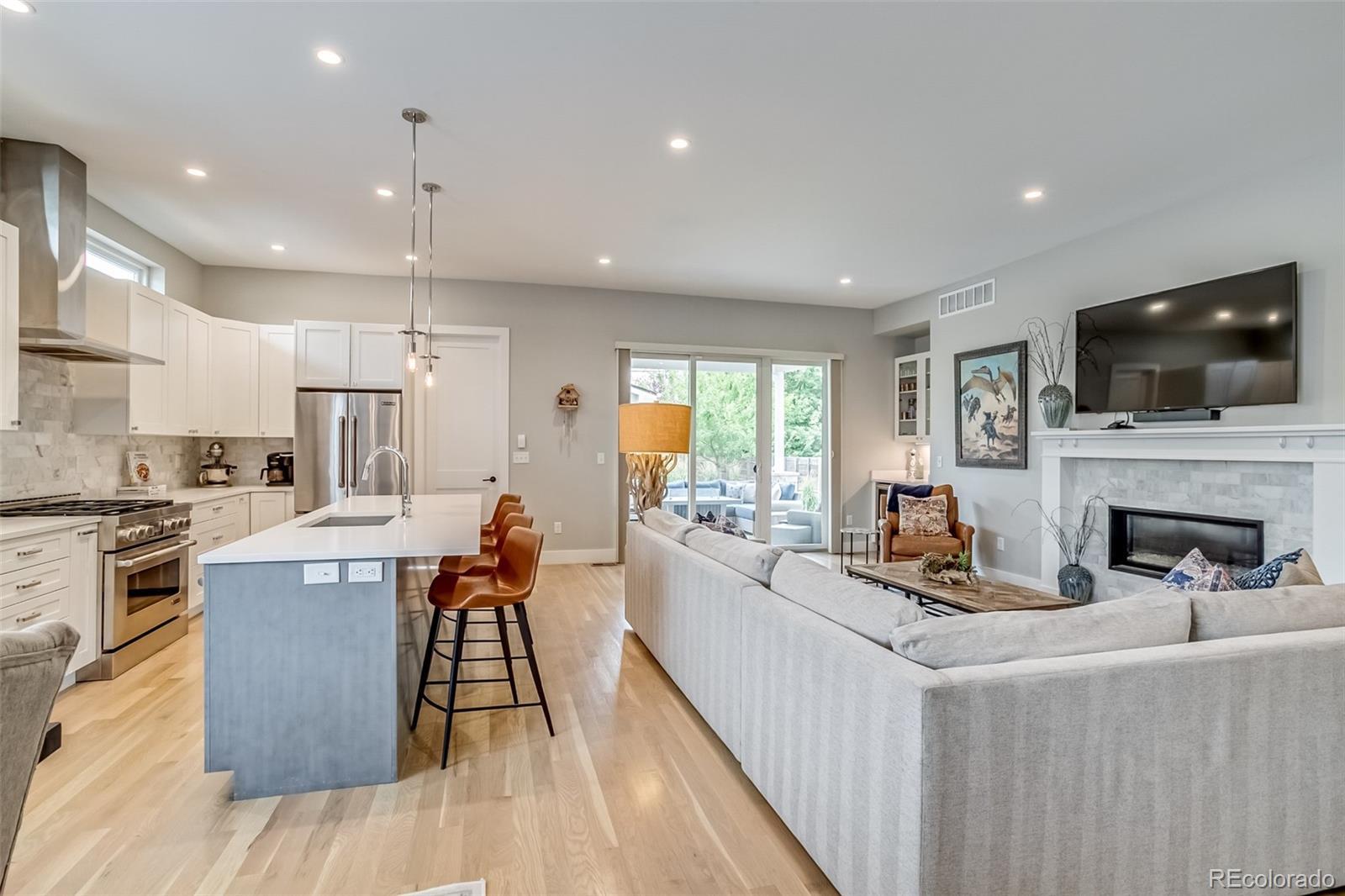 Beautiful Modern Farmhouse Near Sloan’s Lake -- stunning, like-new modern farmhouse offers contemporary style, thoughtful design, and exceptional livability. Featuring 4 bedrooms and 4 bathrooms, this home blends light-filled spaces, open living areas, and elegant details throughout. Step inside to discover white oak floors and an open-concept great room that seamlessly connects the kitchen, dining, and living spaces — perfect for entertaining or relaxing. The main-floor primary suite features a luxurious en suite marble bath and a spacious walk-in closet. Also on the main level are a dedicated office and a second bedroom with its own private bath, ideal for guests or family. Home chefs will love the gourmet kitchen, equipped with a six-burner gas stove and vented hood, a upgraded refrigerator, and a large quartz island with seating and a full marble backsplash. The adjacent dining area and great room offer warmth and style, complete with a fireplace, bar area, and bar refrigerator. Glass sliding doors open to a covered patio with an extended entertaining area, large lawn, and outdoor TV setup — a perfect place to relax or enjoy the big game. The mudroom provides easy access from the two-car garage, along with a laundry room and pantry for added convenience. Upstairs, you’ll find a spacious bonus room with a wet bar, hardwood floors, and extra storage — the perfect spot for a media space, workout room or playroom. Two additional bedrooms share a Jack-and-Jill bath and each feature walk-in closets. Additional highlights include a fully conditioned crawl space ideal for storage and a prime location just steps from Sloan’s Lake, local restaurants, coffee shops, and scenic trails. This home truly combines luxury, comfort, and unbeatable walkability — a rare find in one of Denver’s most desirable neighborhoods.