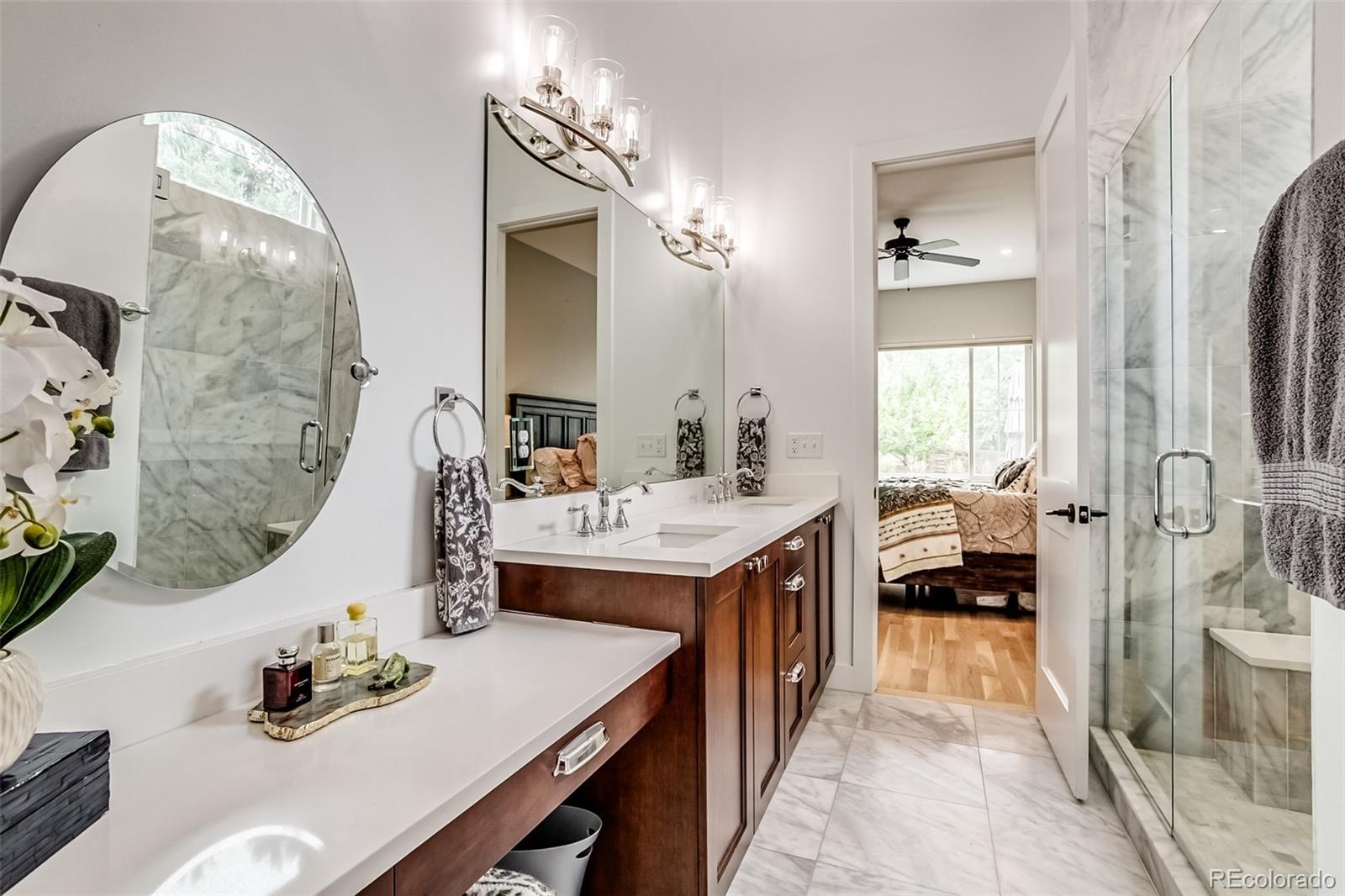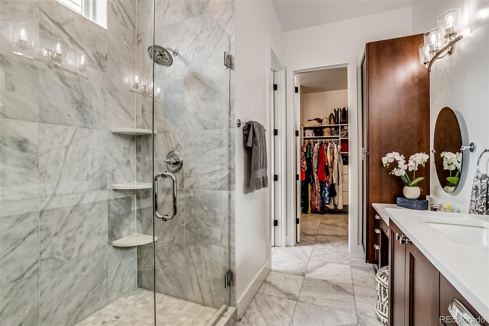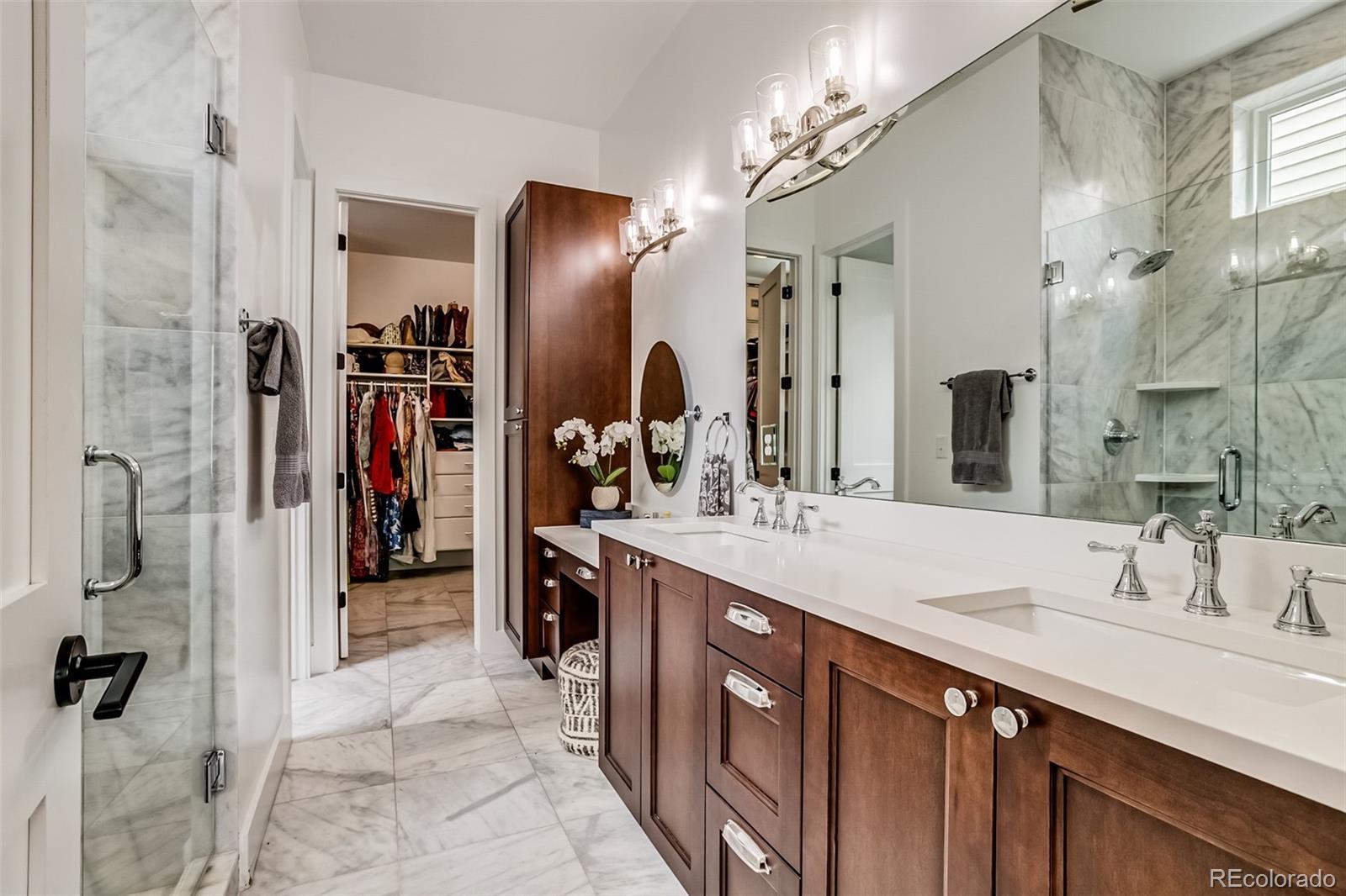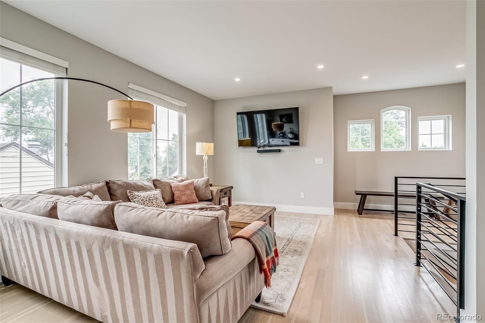 Beautiful Modern Farmhouse Near Sloan’s Lake -- stunning, like-new modern farmhouse offers contemporary style, thoughtful design, and exceptional livability. Featuring 4 bedrooms and 4 bathrooms, this home blends light-filled spaces, open living areas, and elegant details throughout. Step inside to discover white oak floors and an open-concept great room that seamlessly connects the kitchen, dining, and living spaces — perfect for entertaining or relaxing. The main-floor primary suite features a luxurious en suite marble bath and a spacious walk-in closet. Also on the main level are a dedicated office and a second bedroom with its own private bath, ideal for guests or family. Home chefs will love the gourmet kitchen, equipped with a six-burner gas stove and vented hood, a upgraded refrigerator, and a large quartz island with seating and a full marble backsplash. The adjacent dining area and great room offer warmth and style, complete with a fireplace, bar area, and bar refrigerator. Glass sliding doors open to a covered patio with an extended entertaining area, large lawn, and outdoor TV setup — a perfect place to relax or enjoy the big game. The mudroom provides easy access from the two-car garage, along with a laundry room and pantry for added convenience. Upstairs, you’ll find a spacious bonus room with a wet bar, hardwood floors, and extra storage — the perfect spot for a media space, workout room or playroom. Two additional bedrooms share a Jack-and-Jill bath and each feature walk-in closets. Additional highlights include a fully conditioned crawl space ideal for storage and a prime location just steps from Sloan’s Lake, local restaurants, coffee shops, and scenic trails. This home truly combines luxury, comfort, and unbeatable walkability — a rare find in one of Denver’s most desirable neighborhoods.