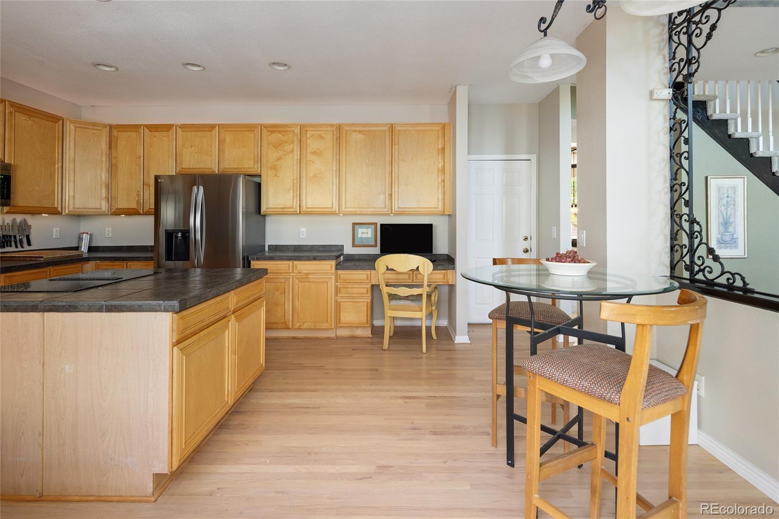 The best Highlands Ranch has to offer. The popular Richmond James Model is the most popular model and highly sought after. Brisbane Way is a gorgeous street that is out of the way and interior to the East Ridge Terrace neighborhood. The house has a wonderful floor plan, great flow, high ceilings and large rooms. The Family room is two stories with large arched windows that frame the fireplace. It is open to the kitchen and eating area. The deck off the kitchen is an Trex material and there is a pergola in the yard. The home has a Primary Suite and 3 additional bedrooms up with a hall bath. The basement is complete with a Rec Room, Game Room, Pool Table included, Home Office, a welcoming bar area with sink and bar fridge, Bedroom and Bath. There are sliders to a walk out covered patio. Enjoy the 4 Recreation Centers, Pools, Tennis Courts, Fitness Centers and Walking Trails.