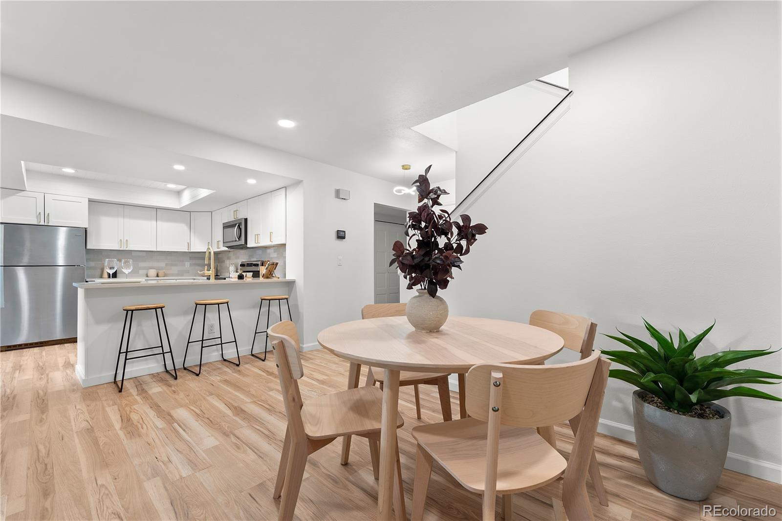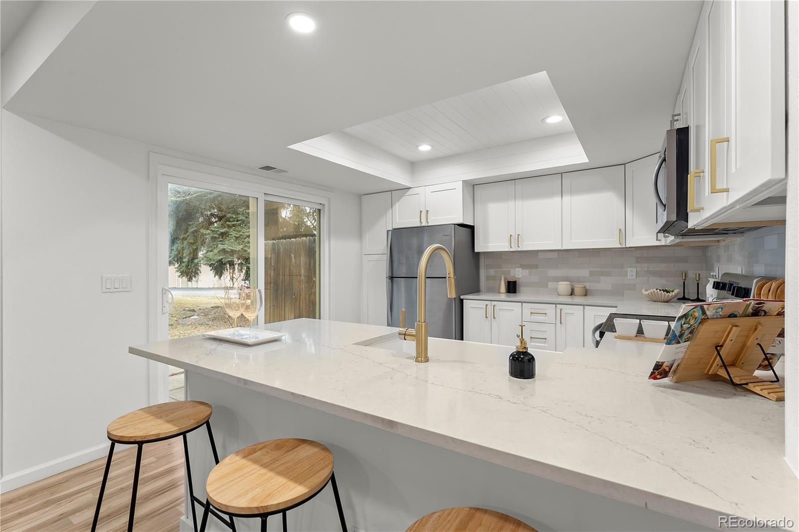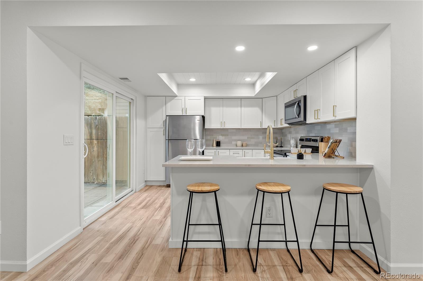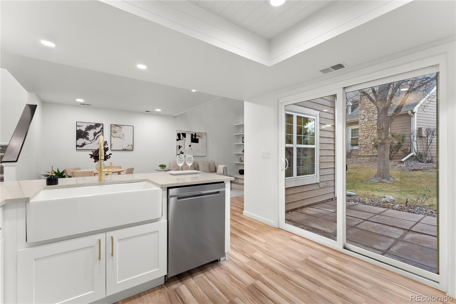Welcome to 13394 E Asbury Drive, a beautifully remodeled, golf-course-adjacent townhome offering just under 1,400 square feet of modern, open-concept living in the heart of Heather Ridge, one of Aurora’s most desirable communities. Step inside to find stunning luxury vinyl flooring flowing seamlessly through the spacious living, dining, and kitchen areas, creating a bright, cohesive layout ideal for everyday living and entertaining. The fully updated kitchen features quartz countertops, premium soft-close cabinetry, modern finishes, and a clean, open design that connects effortlessly to the main living space, a layout buyers continue to seek out. Both bathrooms have been completely remodeled with beautifully tiled showers, delivering a spa-like feel that elevates the entire home. All the windows are newer and they fill the space with natural light while the open layout provides an airy, welcoming atmosphere throughout. Enjoy your private outdoor space just steps from Heather Ridge Golf Course and Noonan’s, where morning coffee, evening walks, and weekend tee times become part of your daily routine. The home also includes one detached garage and a low-maintenance HOA that covers exterior maintenance, snow removal, water, trash, and community amenities, making life here both convenient and worry-free. Homes in this community continue to move quickly, and this one stands out with its full remodel, modern finishes, and unbeatable location.