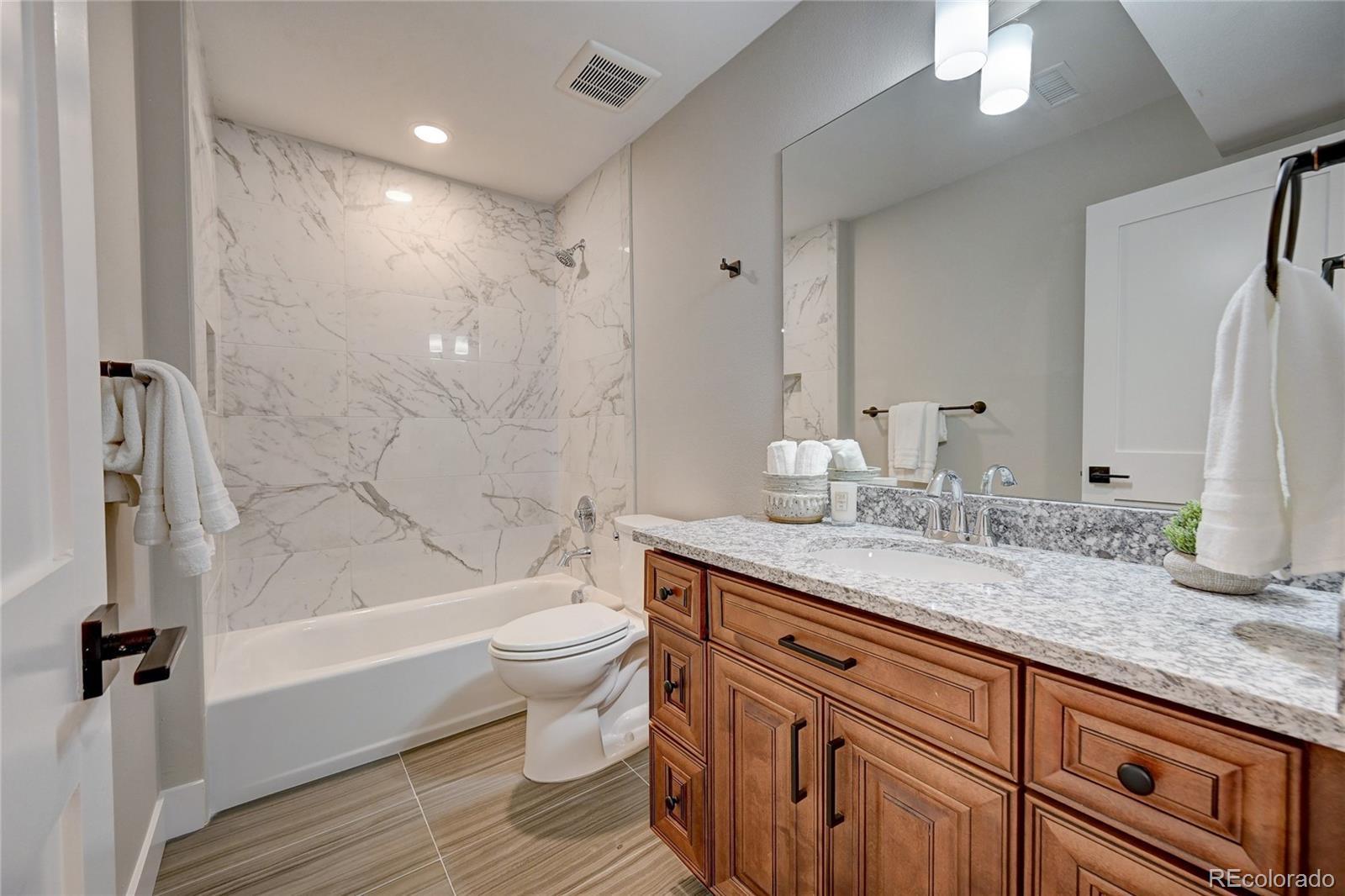 This custom-built home creates a one-of-a-kind living experience designed for today’s lifestyle. With 3,229 finished square feet, this residence offers the ideal balance of comfort, elegance, and functionality. Step inside to discover soaring natural light and a bright, open floor plan highlighted by real hardwood floors flowing throughout the main level. The kitchen serves as the heart of the home, showcasing quartz countertops, premium stainless steel appliances, a center island, and walk-in pantry, perfect for cooking and entertaining. Just beyond, the formal dining room features custom lighting and hardwood flooring, tucked behind the kitchen for added privacy. The spacious living room offers a gas fireplace, creating a warm, inviting atmosphere. A private office with double doors near the entry provides the perfect work-from-home space. Thoughtful details continue with a mudroom with built-in bench and a powder room. Upstairs, the expansive primary suite is a retreat with a large walk-in closet and a five-piece bathroom offering a huge walk-in shower and heated floors along with a second furnace to keep upstairs warm. The fully finished walkout basement expands your living space with a large family room boasting eight-foot ceilings and access to the backyard, ideal for movie nights or entertaining. A spacious bedroom with walk-in closet and full bath complete this level. Enjoy peaceful afternoons on the expansive deck or in the landscaped yard, complete with new grass and a sprinkler system. Nestled on a quiet cul-de-sac with no through traffic, this home offers direct access to trails and is just a short walk to the rec center, Harper Lake, and Davidson Mesa. With Whole Foods and Highway 36 nearby, you’ll love the perfect mix of privacy, convenience, and community. This home isn’t just a place to live; it’s a lifestyle. Welcome home!