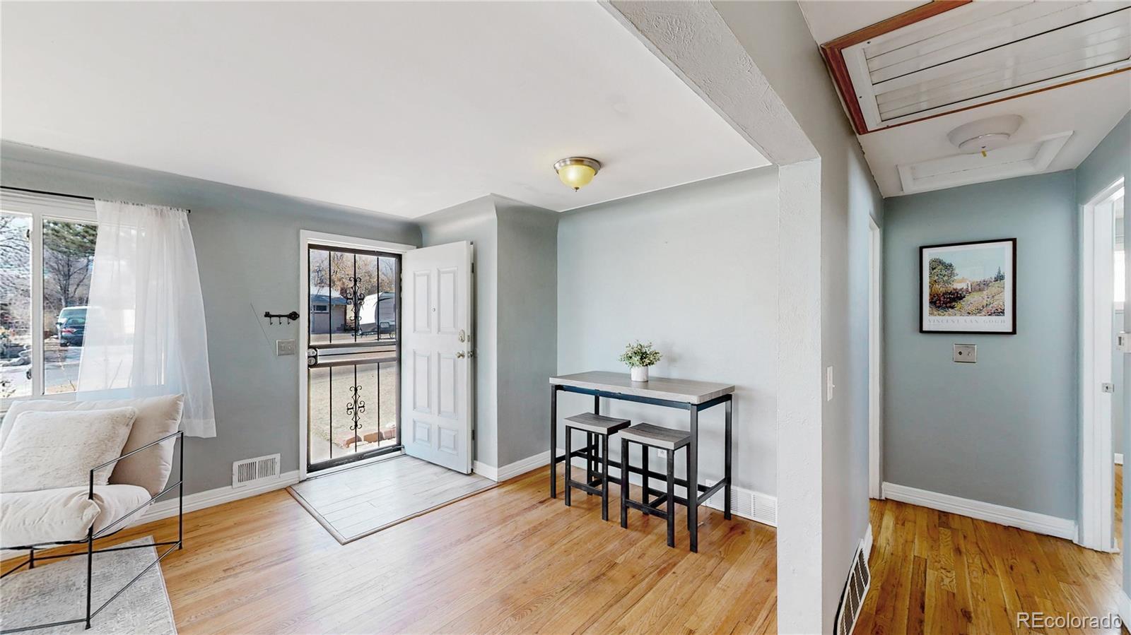 Situated in an established neighborhood, 1692 S Zenobia Way presents a classic 1955 single-family residence that reflects the enduring appeal of mid-century design paired with a highly accessible southwest Denver location. Offering three conforming bedrooms and one non-conforming, two bathrooms, and two living rooms, this home is arranged with a practical layout that supports both comfortable daily living and easy entertaining. The main living area welcomes you with an open, inviting feel, where natural light enhances the sense of warmth and livability. The living room flows naturally into the adjacent kitchen area, creating a connected central space that functions equally well for quiet evenings at home or hosting friends and family. The kitchen is positioned for efficiency and convenience, with proximity to both the main gathering areas and access to the backyard, encouraging seamless indoor-outdoor movement. Outside, the property’s yard offers space to relax, garden, or design an outdoor setting that reflects your personal vision, whether that means shaded seating areas, play space, or future enhancements. Mature trees and established neighboring homes contribute to the welcoming character of the street, reinforcing the stability and long-term appeal of the area.