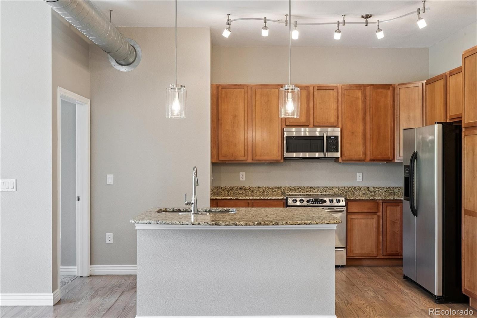 Live, Work & Play in the Heart of DTC! This gorgeous, move-in ready 2BD/2BA condo offers the perfect blend of modern updates and unbeatable convenience. New hardwood flooring, ceiling fans in both bedrooms, and upgraded lighting—including stylish West Elm fixtures—add designer touches throughout. The gourmet kitchen boasts 42" cabinets, granite countertops in a neutral palette, and is framed by soaring 10’ ceilings with exposed ductwork, creating an airy, contemporary feel. Enjoy your morning coffee on the south-facing balcony, privately tucked on the quiet side of the building for peaceful moments away from busy streets. The primary suite features large windows, a spa-like ensuite with double sinks, a walk-in shower with built-in seating and dual showerheads, plus a spacious walk-in closet. The secondary bedroom/office includes its own walk-in closet and sits next to a full bath with an oval soaking tub and ample vanity storage. The washer and dryer (included) are conveniently located just outside the secondary bath and fit a large stackable unit. This home includes two reserved parking spaces and personal storage in the secure and heated underground garage. The location is exceptional—walkable to the Dry Creek Light Rail Station, shops, restaurants, and coffee. Hop the Light Rail to downtown for a Rockies game or concert, or reach DIA in about an hour. Cherry Creek State Park is just 15 minutes away, offering easy access to trails, water activities, and Colorado’s great outdoors. Whether you commute, work from home, or simply want a lock-and-leave lifestyle with every convenience at your doorstep, this DTC condo is the perfect place to call home.