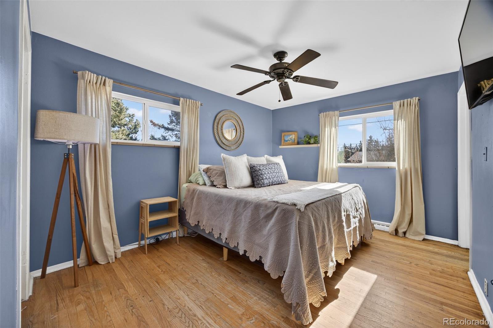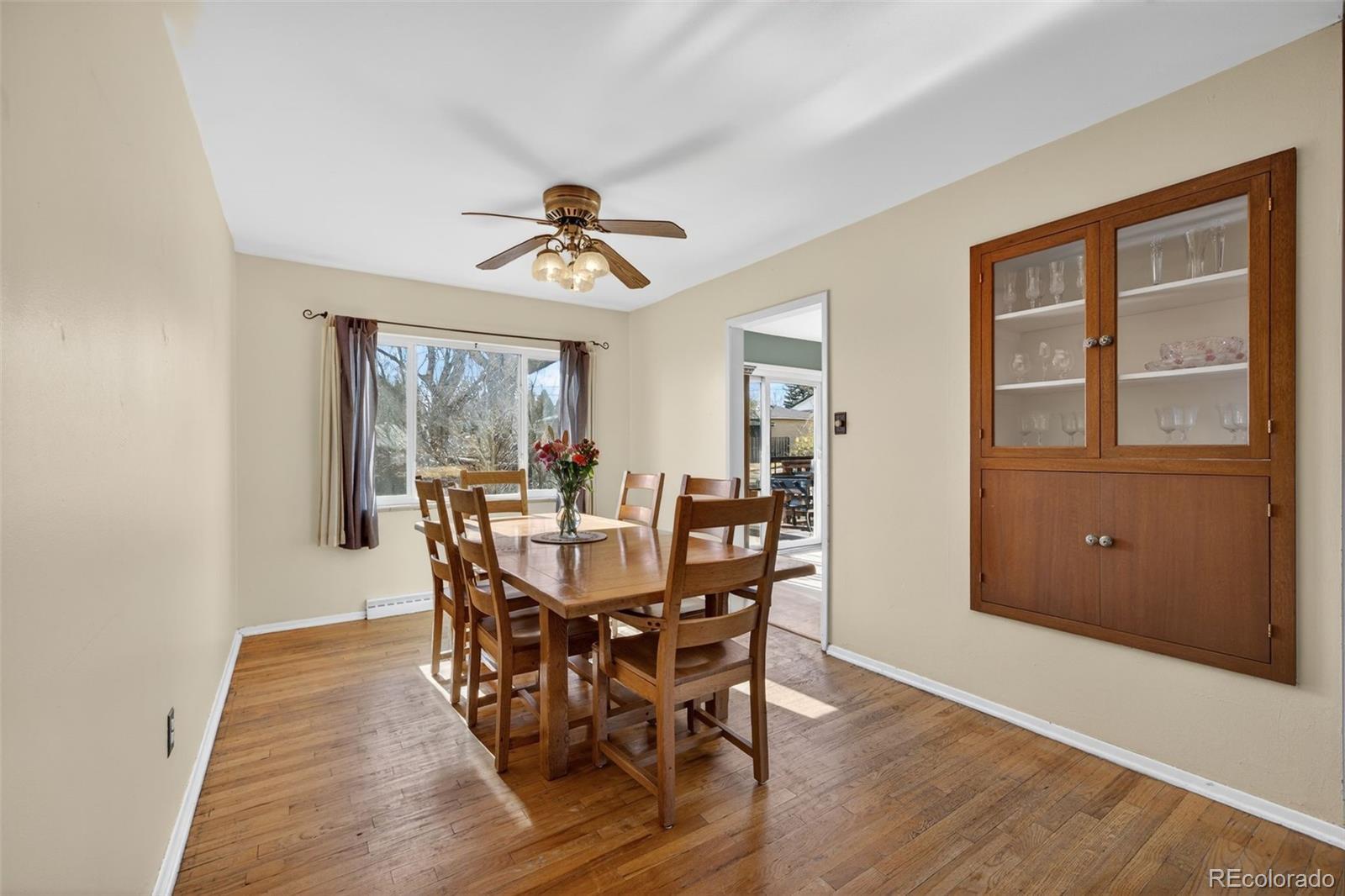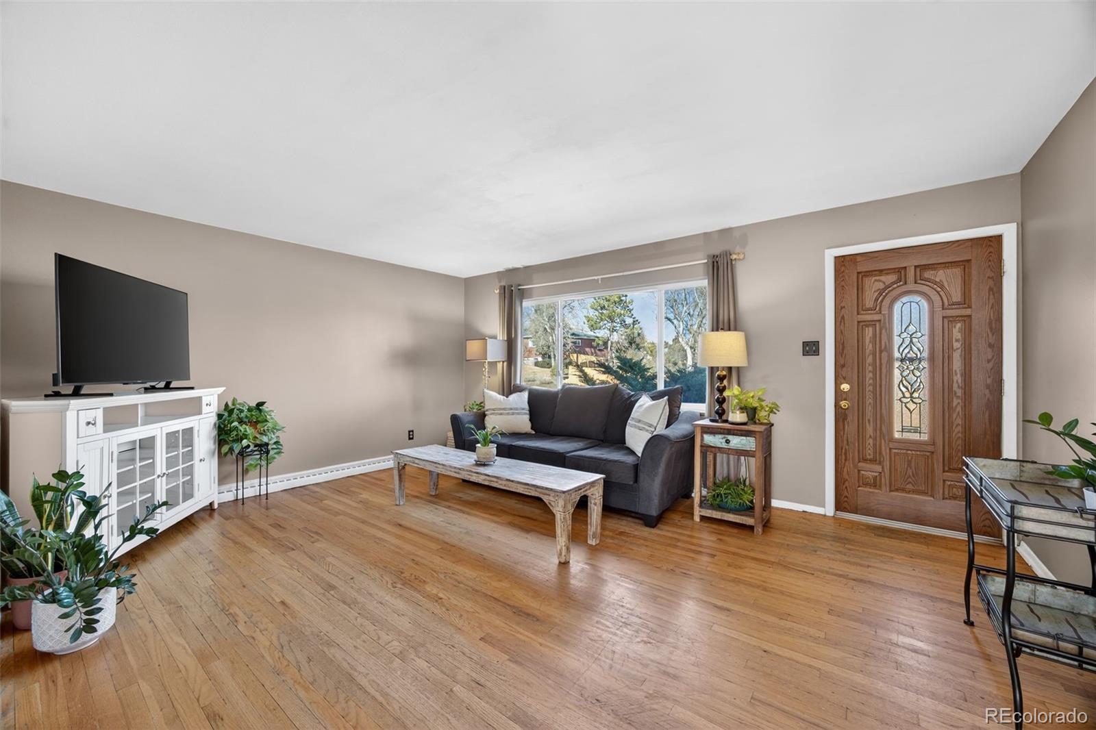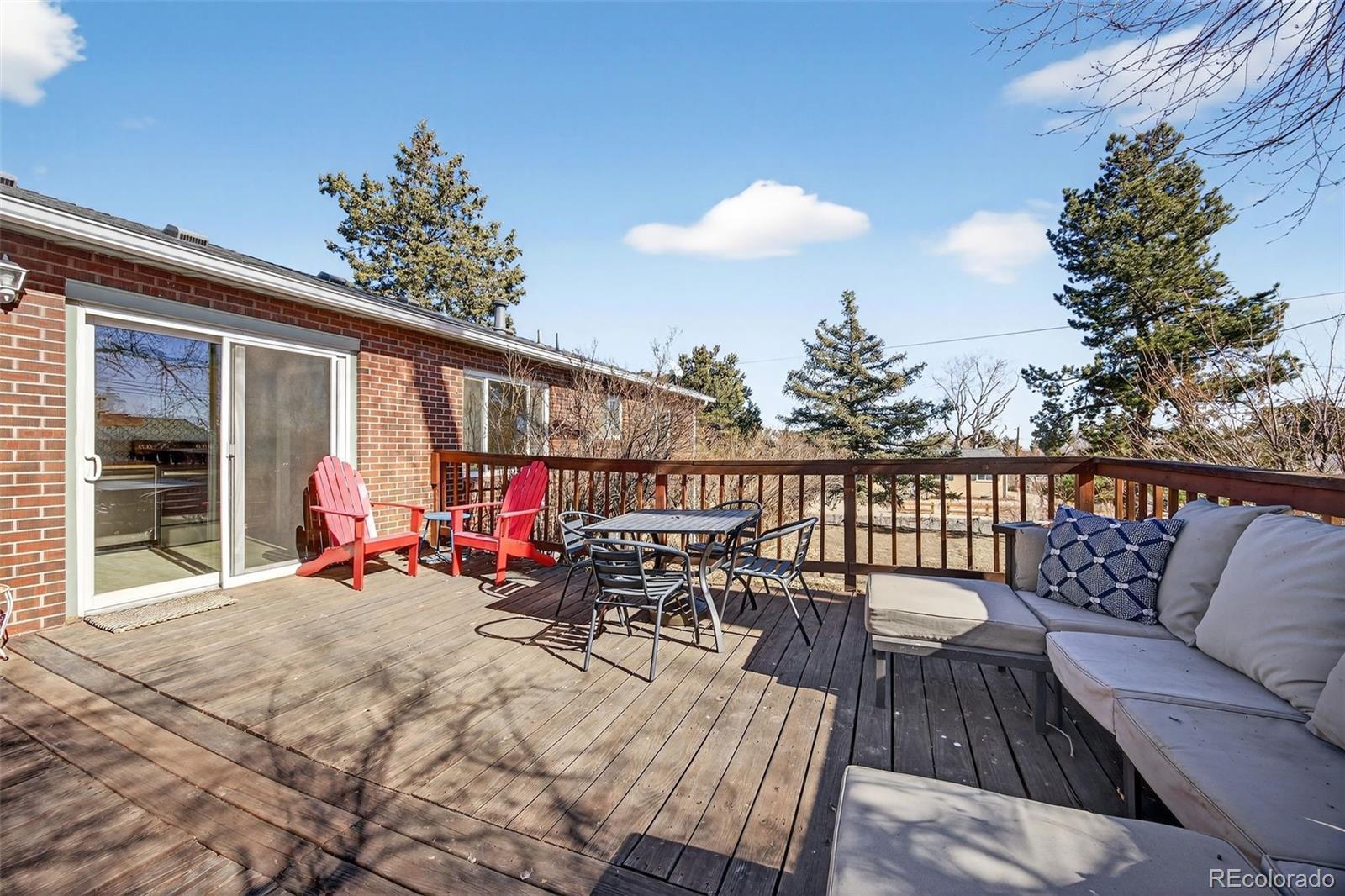 If a large backyard, ranch style home, and Green Mountain location are high on your priority list, then look no further! This .34 acre corner lot sits along the Foothills in Lakewood; an ideal location for an easy commute into Denver or a convenient drive to the mountains. This community allows for Colorado living to the fullest. With Green Mountain, Bear Creek Lake Park, and Red Rocks Amphitheater just minutes to the west, hiking, biking, fishing, paddle boarding and a spectacular, historic concert venue are at your fingertips. Fifteen minutes to the east is Belmar, an outdoor mall full of shopping, dining, and entertainment. In between these desirable attractions, are several parks, schools, restaurants, breweries, and grocery options. As you walk through this well-maintained home you’ll find pieces of authentic 1960’s charm in the original hardwood floors, the dining room built-in, beautiful exterior red brick, and mid-century modern flat panel cabinetry. The living, dining, and kitchen flow seamlessly together with three bedrooms and two bathrooms down the hall. Downstairs you’ll find a large living room, two non-conforming bedrooms, laundry, and massive unfinished storage room. A perfect place to house all your Colorado gear! This backyard is truly one of a kind. Sip your morning coffee on the porch, host a backyard barbecue, hang your hammock from the trees, or enjoy the many sunny Colorado days. Don’t miss your opportunity to own this rare, Green Mountain gem! System updates include: sewer line replacement (2018), roof (2017), furnace (2014), hot water heater (2021), washer & dryer (2022), and kitchen appliances (2018-2020). Other upgrades include: gutter replacement (2025), trees trimmed (2025), main level bathroom remodels (~2016), main level window replacement (~2014). **Seller to offer a $5,000 seller concession to refinish the hardwood floors. Estimate from All City Floors available upon request!