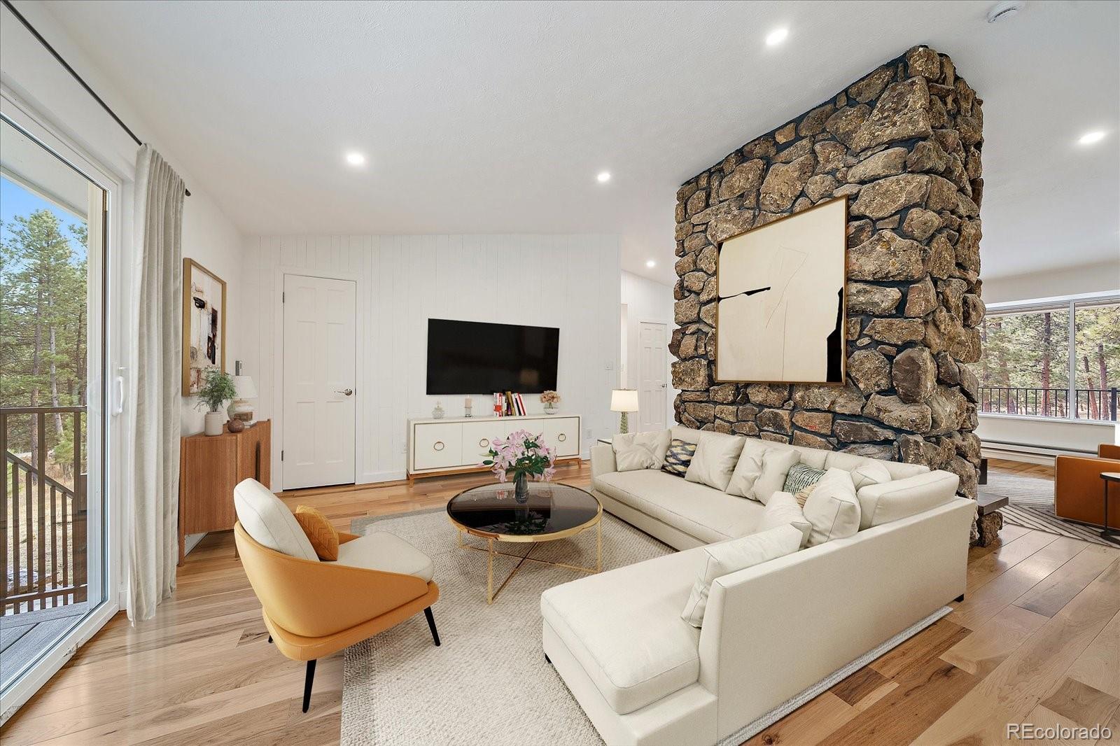Home for the holidays—and for years to come. Set on a usable, sunlit acre in one of South Evergreen’s most beloved neighborhoods, this newly renovated home offers a rare blend of sophistication, comfort, and craftsmanship. Surrounded by towering pines and a peaceful, endearing sense of privacy, it’s the kind of setting buyers wait years to find. What makes this property truly special is the story behind it. The seller wasn’t preparing a flip—she was crafting her forever home. Every finish was selected with care, every detail executed with long-term quality in mind. From the elevated design choices to the meticulous workmanship, you’ll feel the intention and investment throughout. But life opened an unexpected door abroad, and her dream home will now become someone else’s. For the next owner, that means the benefit of a top-tier custom renovation—move-in ready, beautifully finished, and far beyond the typical “updated” home. This is a scarce opportunity to step into a fully realized vision without the stress, delays, or compromises of a remodel. The hard work is done. The result is exceptional. And homes like this, in this neighborhood, rarely come to market. The main level features vaulted ceilings and a spacious open floorplan including the new Kitchen, Living, and Dining Areas as well as two bedrooms, a new full bathroom - plus the incredible Primary Suite with a completely new 5 piece bathroom and walk in closet. On the lower level, a suite to utilize as a bedroom, office, studio, or apartment for family/friends. Just minutes to groceries, restaurants, parks, and schools. Covenants/zoning even allow for one horse! ** Full Marketing Platform with photos, video, 3D floorplan, floorplans & more at https://qrco.de/bgTMgv ** Call today for a private showing!