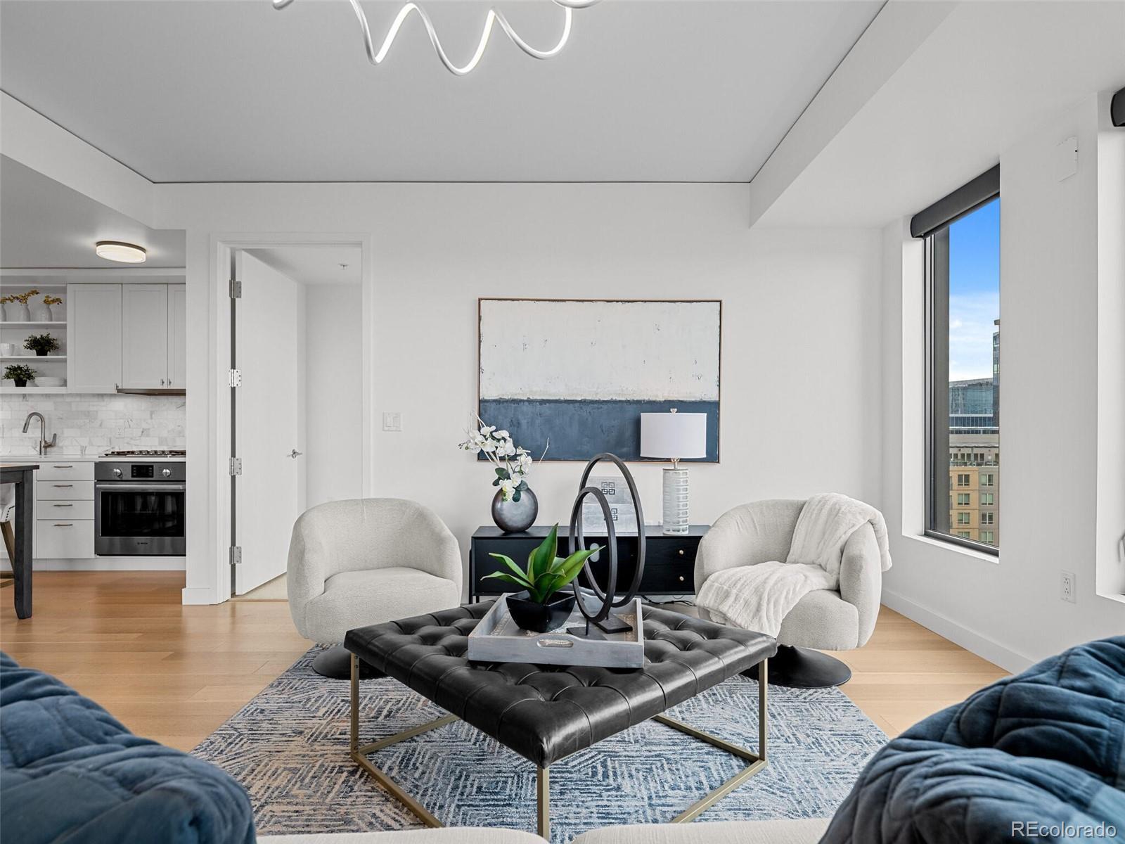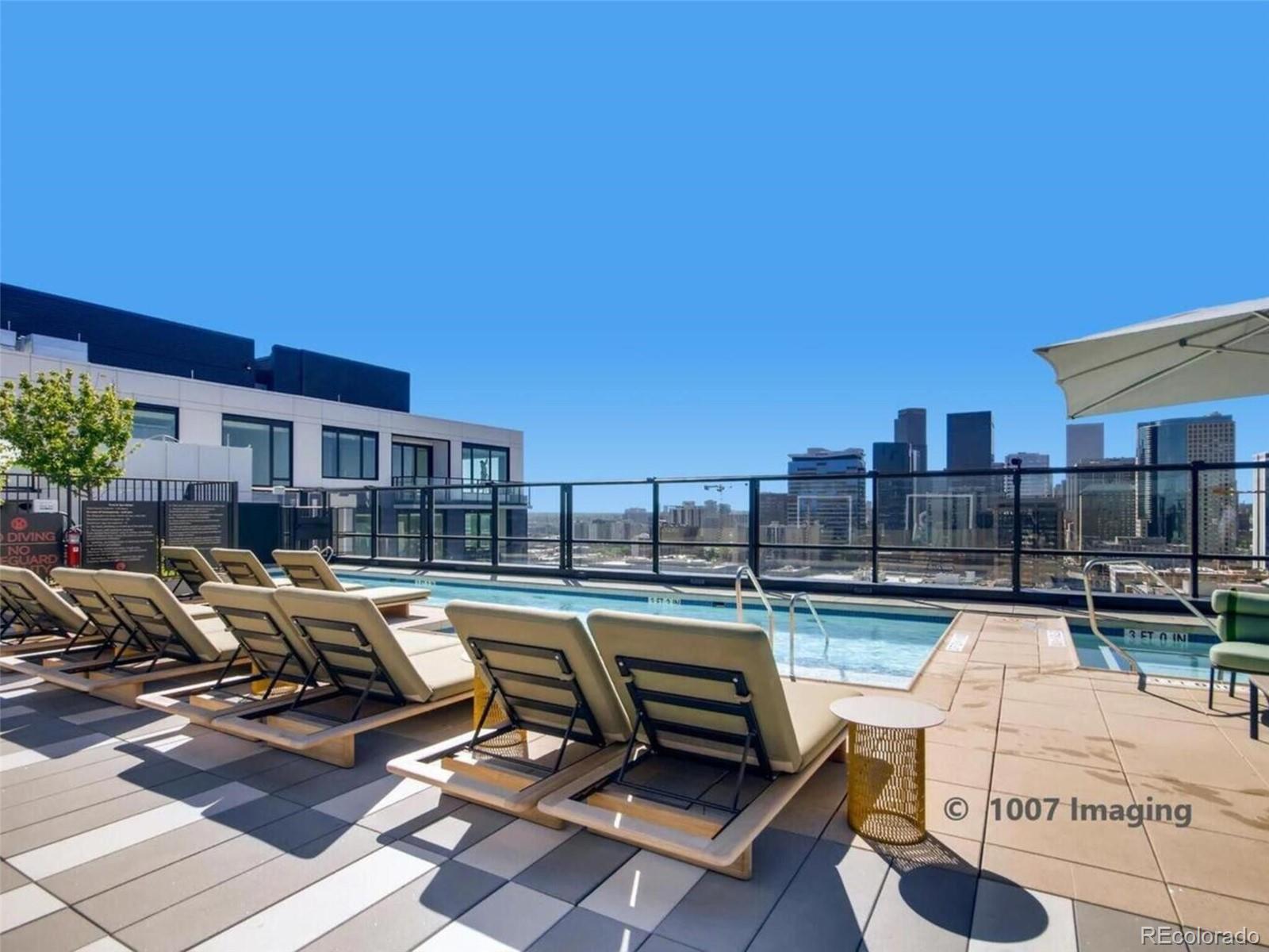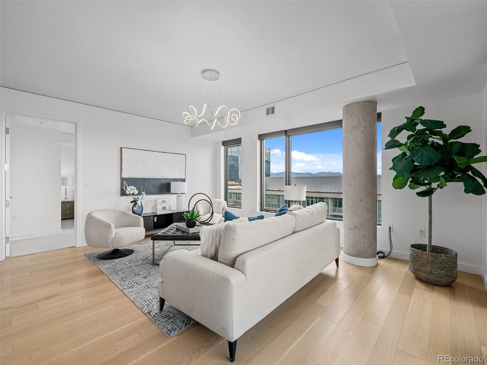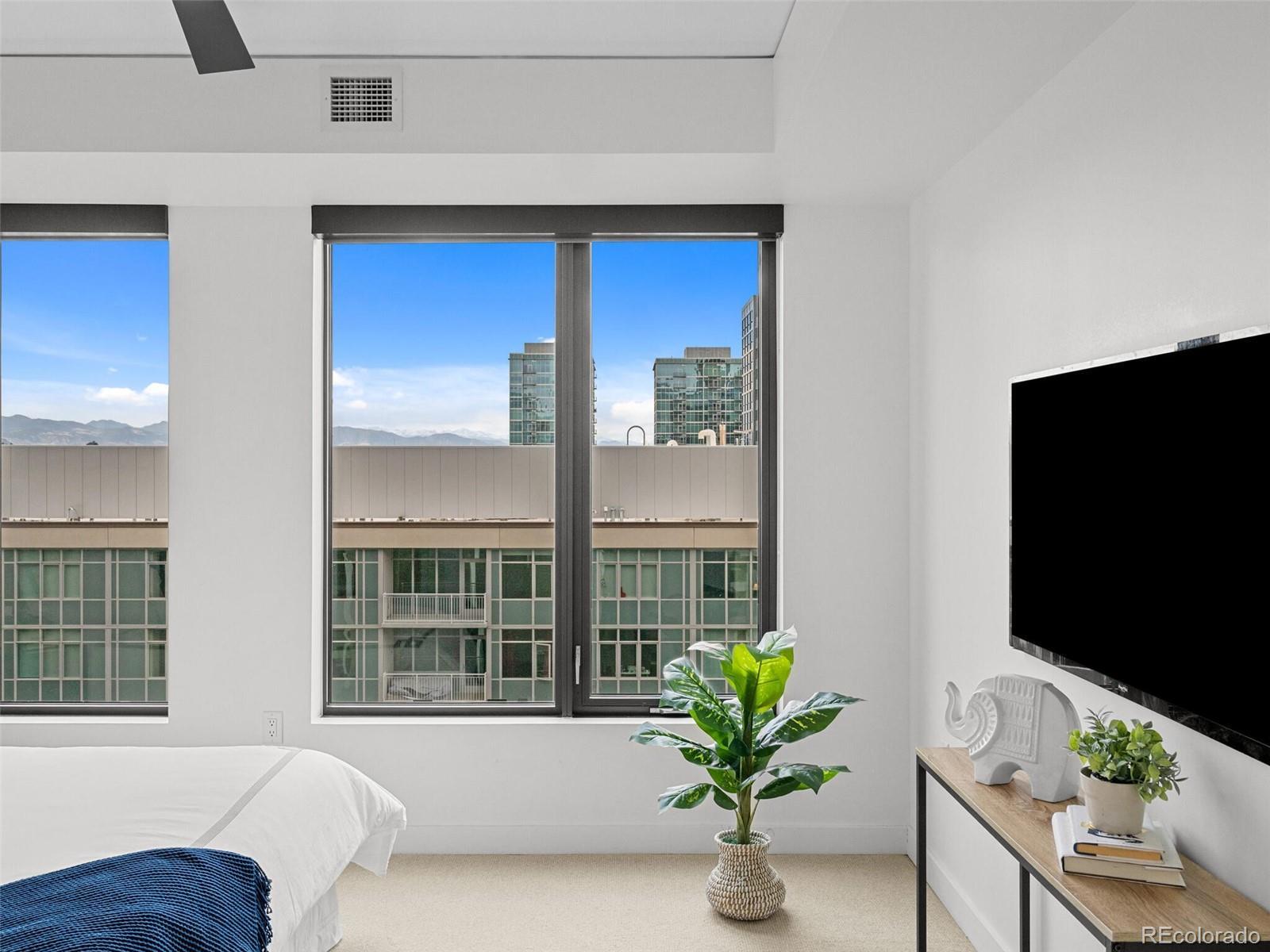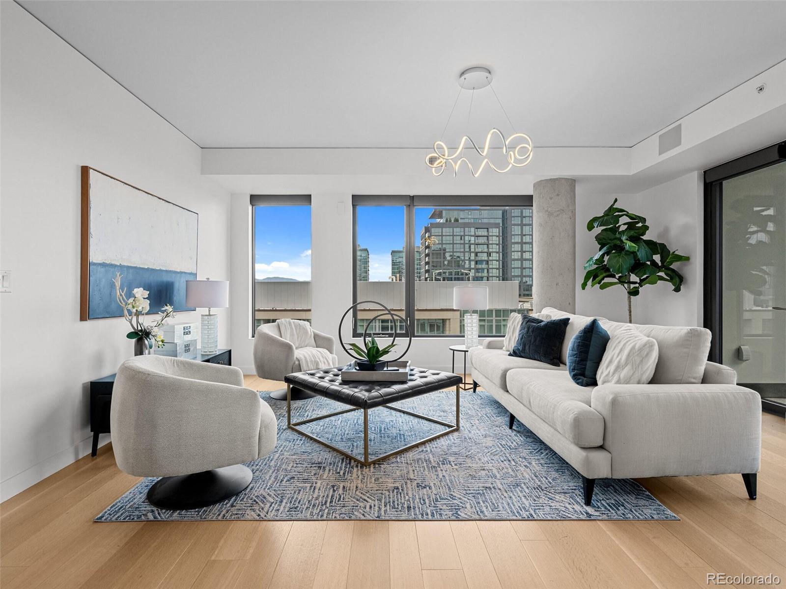 THREE-BEDROOM RESIDENCE AT THE COLORADAN WITH BALCONY! MOUNTAIN VIEWS FROM LIVING ROOM & PRIMARY BEDROOM! Nestled in the heart of Denver’s bustling Union Station neighborhood, this residence offers up a sanctuary in the city with its 3 bedrooms and 2 bathrooms beautifully laid out in nearly 1,600 square feet of space, along with its own balcony -- a truly rare amenity at The Coloradan condominiums. Welcome home to this light, bright and cheerful home with its walls of glass and tons of natural light reflecting off the white oak wood floors and pristine white walls. The wide-open floor plan features a living room, dining area, and a contemporary kitchen with sleek stainless steel appliances, white quartz countertops, and a Bosch range that will have you cooking with gas! At the end of the day, relax on your outdoor balcony and then retreat to your primary suite featuring a bedroom, walk-in closet with custom closet system, and an ensuite spa-like bathroom complete with a generously-sized shower and frameless glass. The second bedroom features a large window onto the city and its own walk-in closet. The third bedroom is conveniently located off the living area and doubles as the ideal work-from-home space. Residents of The Coloradan enjoy world-class amenities, including a state-of-the-art fitness center, concierge services, a rooftop pool deck, hot tub, outdoor kitchen with grills, co-working and entertaining spaces, an excellent bike room, and breathtaking mountain and city views. Additionally, high-speed gigabit internet is provided. For added convenience, onsite garage parking is available for a monthly fee, with access to EV chargers. The building hosts an array of convenient shops, such as Sweetgreen, Ghost Donkey, Café Landskappe, Eggs Inc. and more. The central location is unbeatable, directly across from Whole Foods and adjacent to Union Station, the DIA train, and renowned restaurants like Tavernetta, Snooze, Mercantile and more