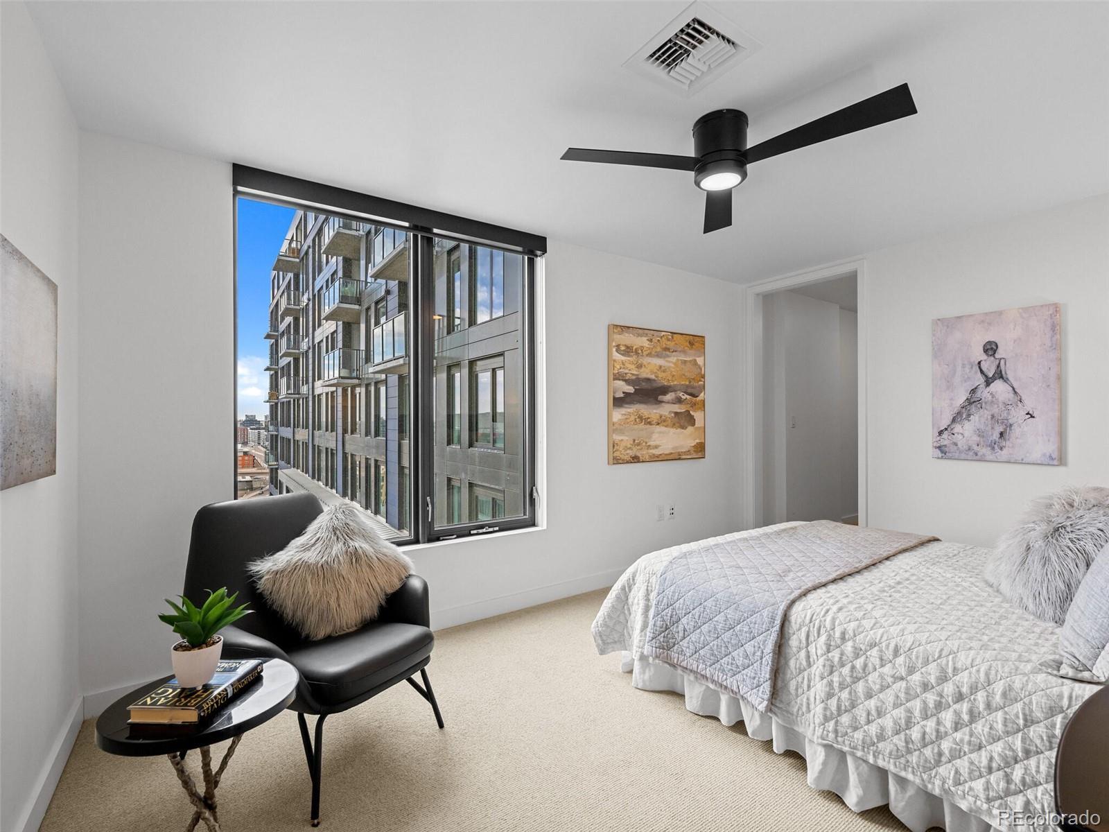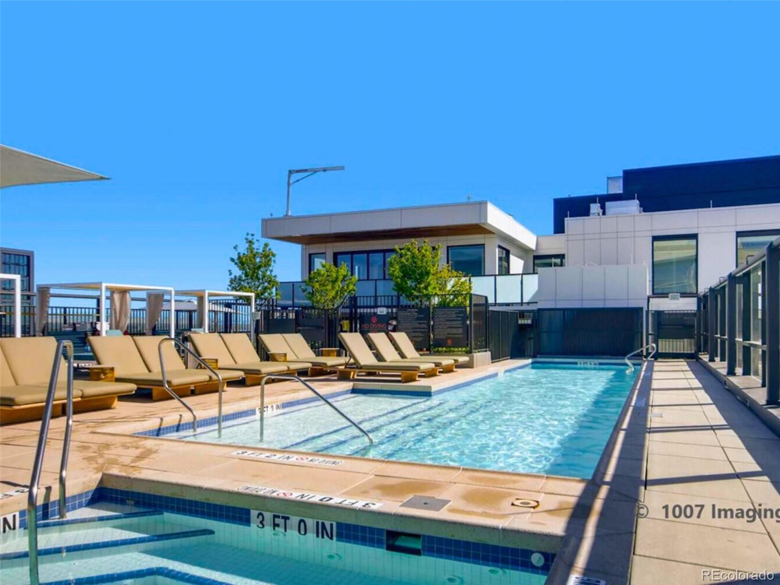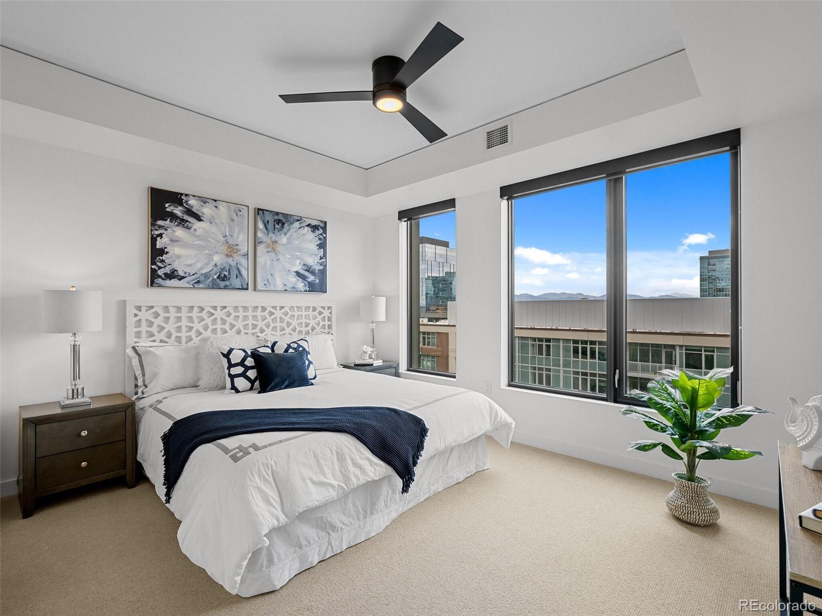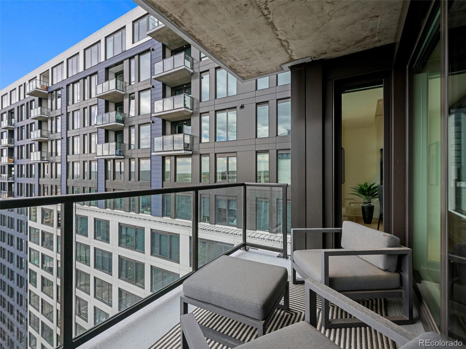 THREE-BEDROOM RESIDENCE AT THE COLORADAN WITH BALCONY! MOUNTAIN VIEWS FROM LIVING ROOM & PRIMARY BEDROOM! Nestled in the heart of Denver’s bustling Union Station neighborhood, this residence offers up a sanctuary in the city with its 3 bedrooms and 2 bathrooms beautifully laid out in nearly 1,600 square feet of space, along with its own balcony -- a truly rare amenity at The Coloradan condominiums. Welcome home to this light, bright and cheerful home with its walls of glass and tons of natural light reflecting off the white oak wood floors and pristine white walls. The wide-open floor plan features a living room, dining area, and a contemporary kitchen with sleek stainless steel appliances, white quartz countertops, and a Bosch range that will have you cooking with gas! At the end of the day, relax on your outdoor balcony and then retreat to your primary suite featuring a bedroom, walk-in closet with custom closet system, and an ensuite spa-like bathroom complete with a generously-sized shower and frameless glass. The second bedroom features a large window onto the city and its own walk-in closet. The third bedroom is conveniently located off the living area and doubles as the ideal work-from-home space. Residents of The Coloradan enjoy world-class amenities, including a state-of-the-art fitness center, concierge services, a rooftop pool deck, hot tub, outdoor kitchen with grills, co-working and entertaining spaces, an excellent bike room, and breathtaking mountain and city views. Additionally, high-speed gigabit internet is provided. For added convenience, onsite garage parking is available for a monthly fee, with access to EV chargers. The building hosts an array of convenient shops, such as Sweetgreen, Ghost Donkey, Café Landskappe, Eggs Inc. and more. The central location is unbeatable, directly across from Whole Foods and adjacent to Union Station, the DIA train, and renowned restaurants like Tavernetta, Snooze, Mercantile and more