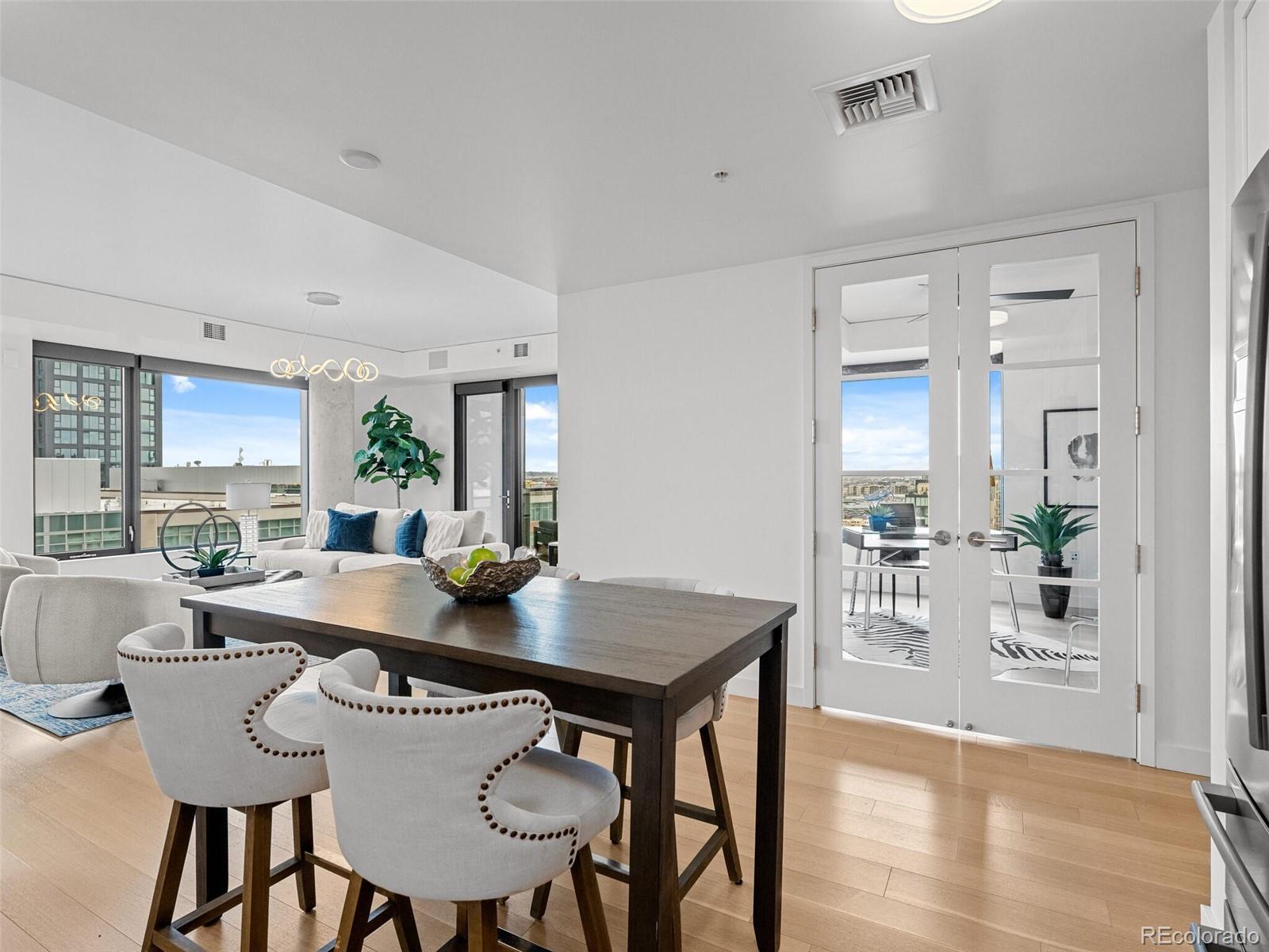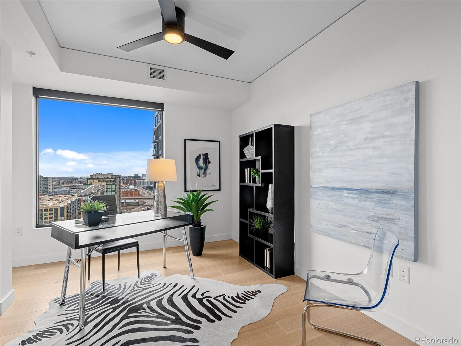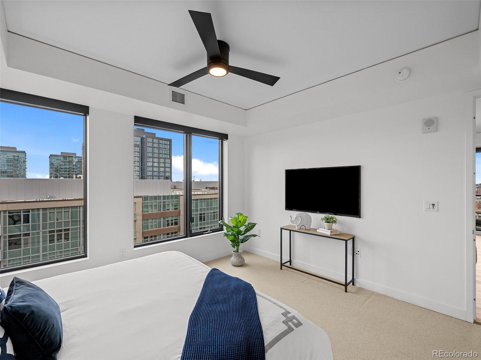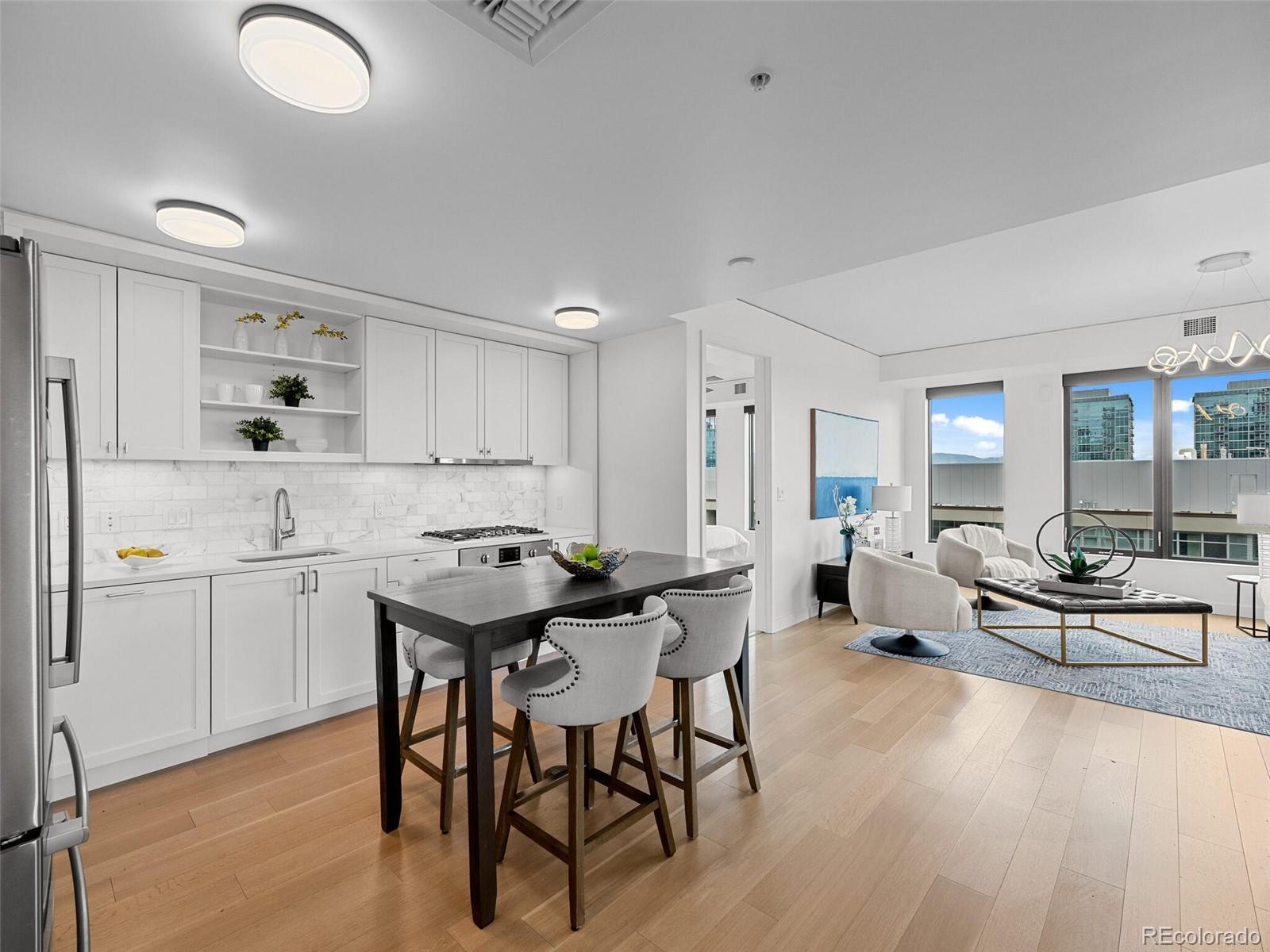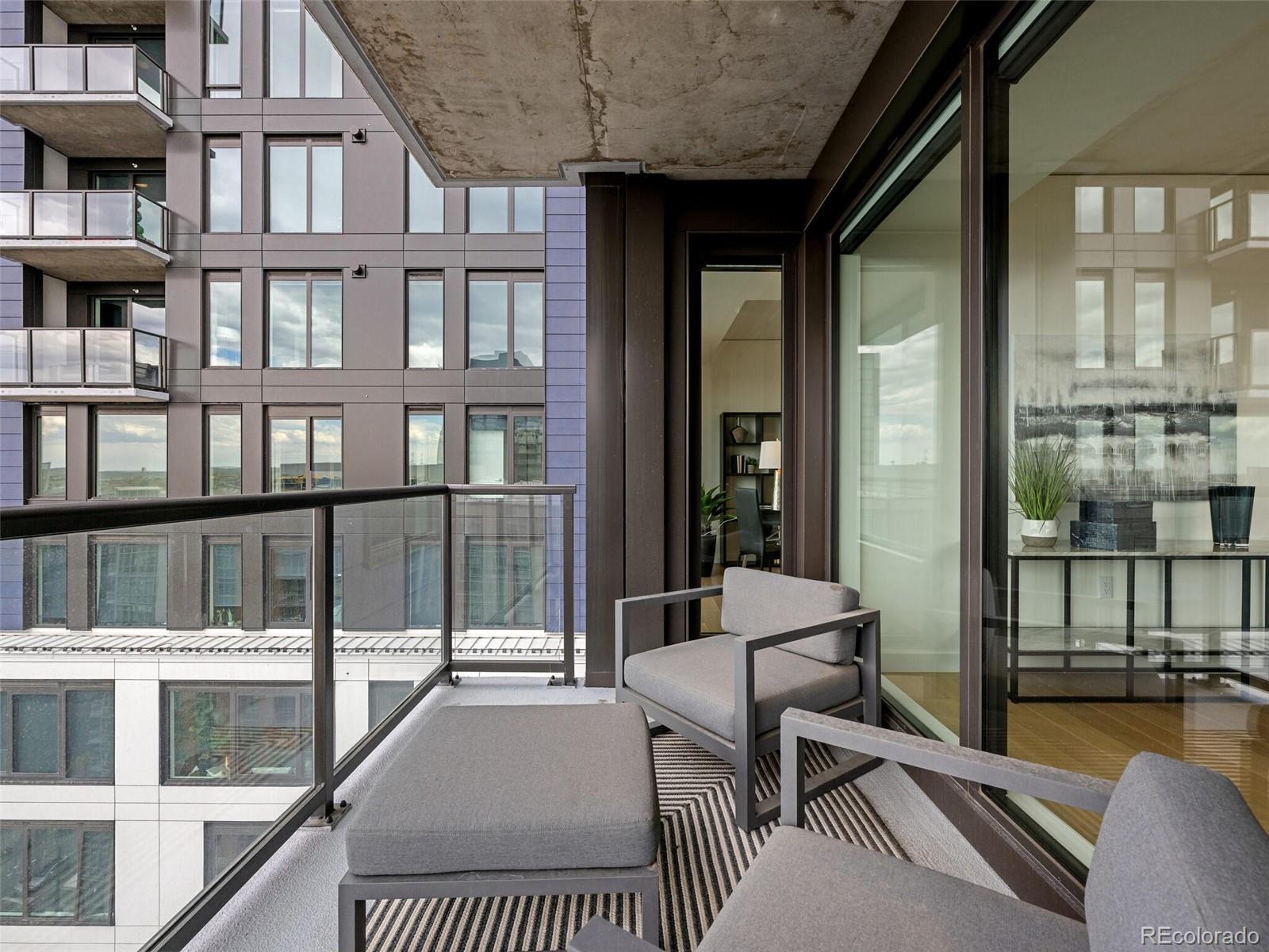 THREE-BEDROOM RESIDENCE AT THE COLORADAN WITH BALCONY! MOUNTAIN VIEWS FROM LIVING ROOM & PRIMARY BEDROOM! Nestled in the heart of Denver’s bustling Union Station neighborhood, this residence offers up a sanctuary in the city with its 3 bedrooms and 2 bathrooms beautifully laid out in nearly 1,600 square feet of space, along with its own balcony -- a truly rare amenity at The Coloradan condominiums. Welcome home to this light, bright and cheerful home with its walls of glass and tons of natural light reflecting off the white oak wood floors and pristine white walls. The wide-open floor plan features a living room, dining area, and a contemporary kitchen with sleek stainless steel appliances, white quartz countertops, and a Bosch range that will have you cooking with gas! At the end of the day, relax on your outdoor balcony and then retreat to your primary suite featuring a bedroom, walk-in closet with custom closet system, and an ensuite spa-like bathroom complete with a generously-sized shower and frameless glass. The second bedroom features a large window onto the city and its own walk-in closet. The third bedroom is conveniently located off the living area and doubles as the ideal work-from-home space. Residents of The Coloradan enjoy world-class amenities, including a state-of-the-art fitness center, concierge services, a rooftop pool deck, hot tub, outdoor kitchen with grills, co-working and entertaining spaces, an excellent bike room, and breathtaking mountain and city views. Additionally, high-speed gigabit internet is provided. For added convenience, onsite garage parking is available for a monthly fee, with access to EV chargers. The building hosts an array of convenient shops, such as Sweetgreen, Ghost Donkey, Café Landskappe, Eggs Inc. and more. The central location is unbeatable, directly across from Whole Foods and adjacent to Union Station, the DIA train, and renowned restaurants like Tavernetta, Snooze, Mercantile and more
