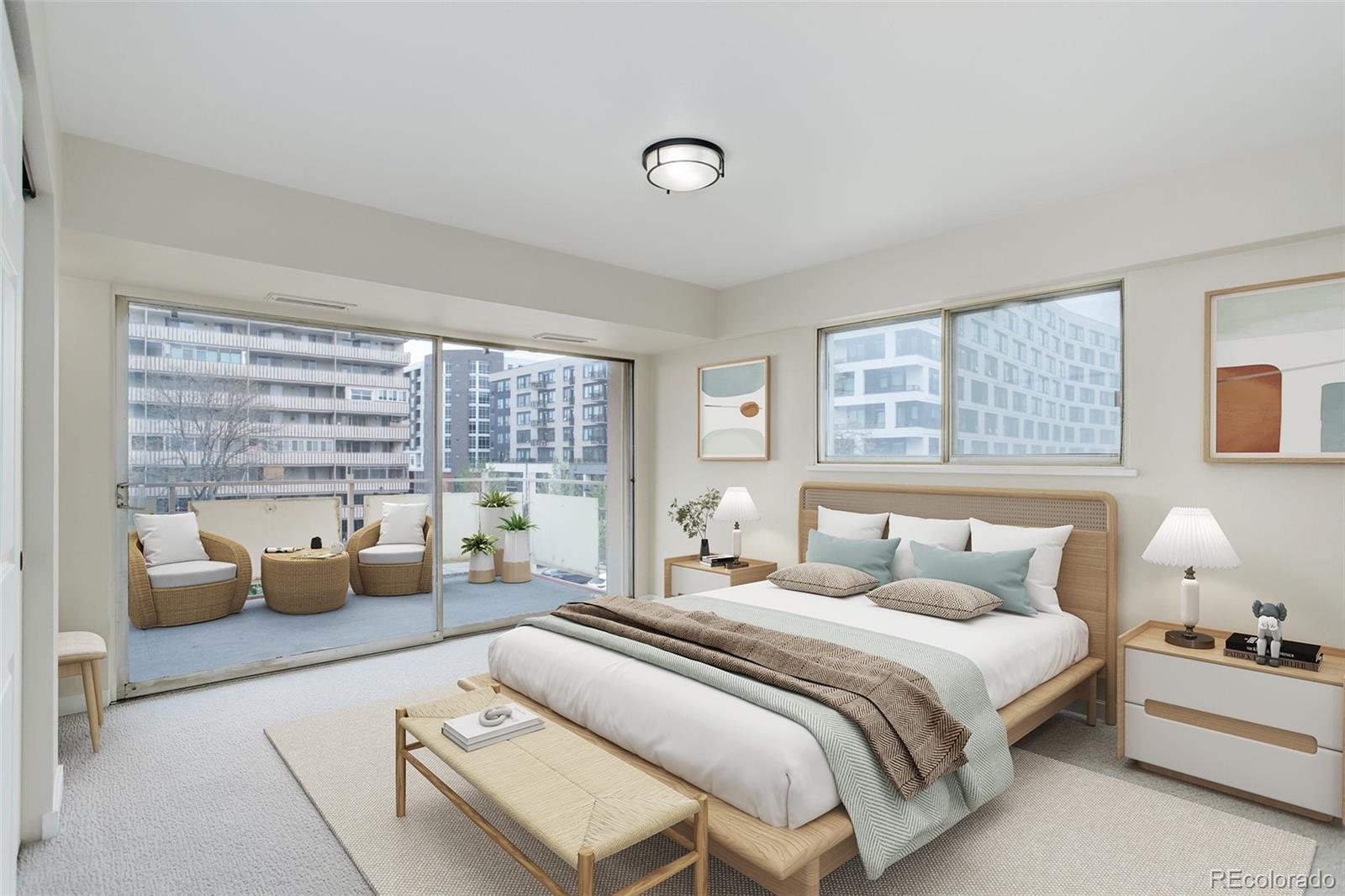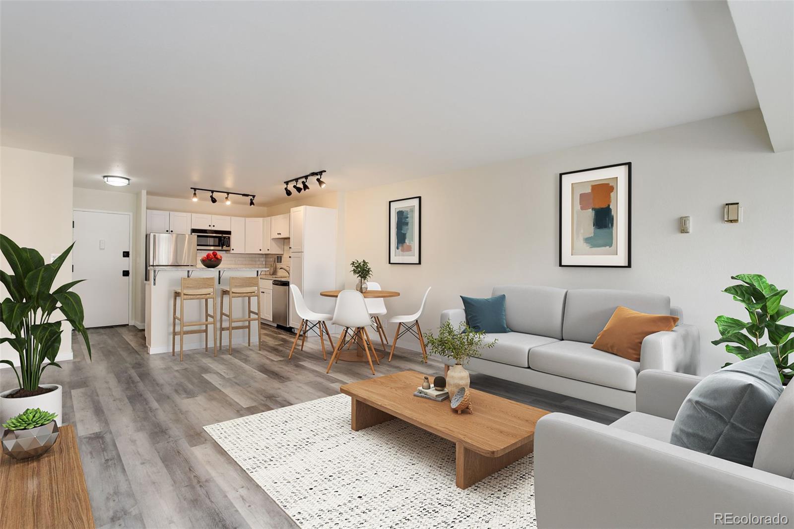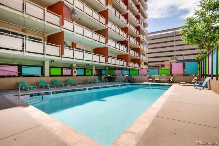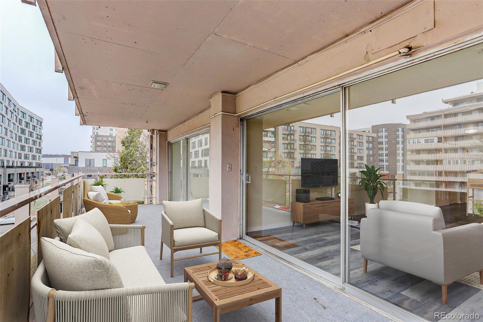 This spectacular corner two-bedroom unit is in an unbeatable location close to restaurants, shopping, and all that Denver has to offer. This recently remodeled sunny unit features an open floor plan with a gourmet kitchen outfitted with new appliances and granite countertops. You will love the eat-in breakfast bar and eye-catching backsplash. New luxury vinyl flooring extends throughout the main living area. A wall of glass provides an abundance of natural light and leads to a tremendous covered deck. It is the perfect spot to spend quiet afternoons and offers plenty of room for indoor/outdoor living. The primary suite is highlighted by new carpet, a luxurious ensuite bath, and access to the deck. The secondary bedroom is spacious and bright. The building is secure and offers a sparkling pool, underground parking, extra storage, and a laundry room. Check out the newly renovated 10th floor community room with home working hub! With its convenient location and designer remodel, this property is prime for the discerning investor or home buyer.