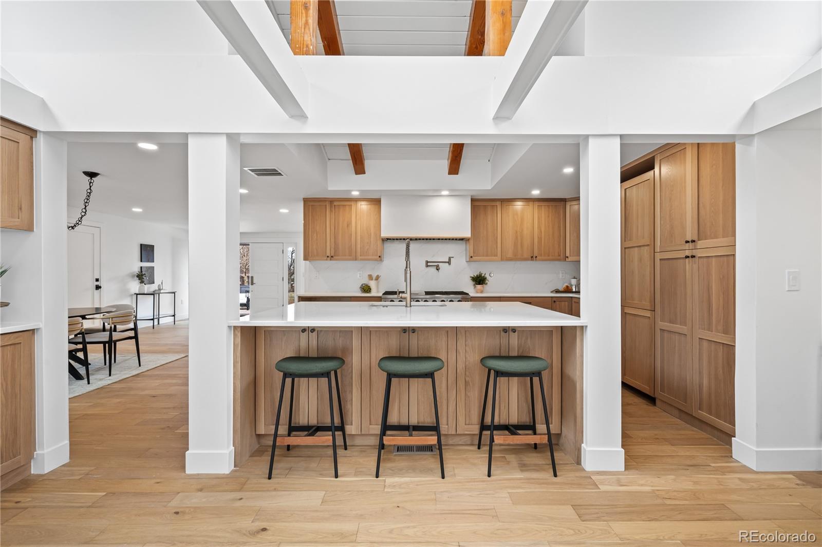 Stunning fully renovated luxury residence in the heart of Denver’s coveted Hilltop neighborhood. This expansive 4,000 sq ft home has been thoughtfully redesigned with elevated finishes throughout, featuring brand-new white oak custom cabinetry, high-end appliances, and beautifully curated materials at every turn. Wide-plank hardwood floors anchor the main living spaces, complemented by plush new carpet in the bedrooms and spa-inspired luxury bathrooms that feel straight out of a five-star retreat. Situated on one of the largest lots in all of Hilltop, the property offers rare outdoor space with a fully fenced yard—perfect for entertaining, privacy, or future customization. Every detail of this renovation was executed with sophistication and longevity in mind, blending modern luxury with timeless design. Prime central Denver location with close proximity to top dining, shopping, parks, and everything the city has to offer. A truly exceptional home that combines scale, style, and location.
