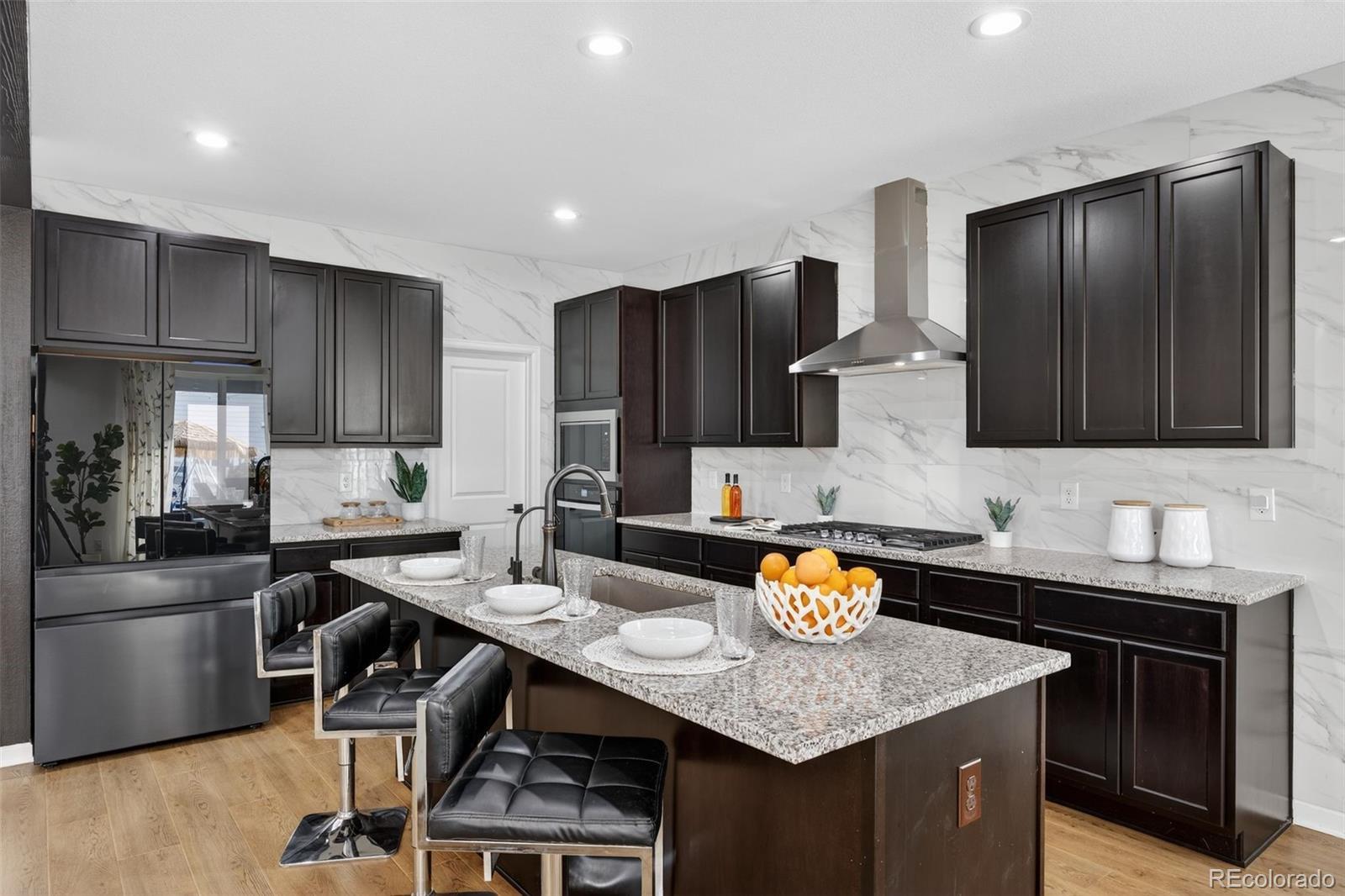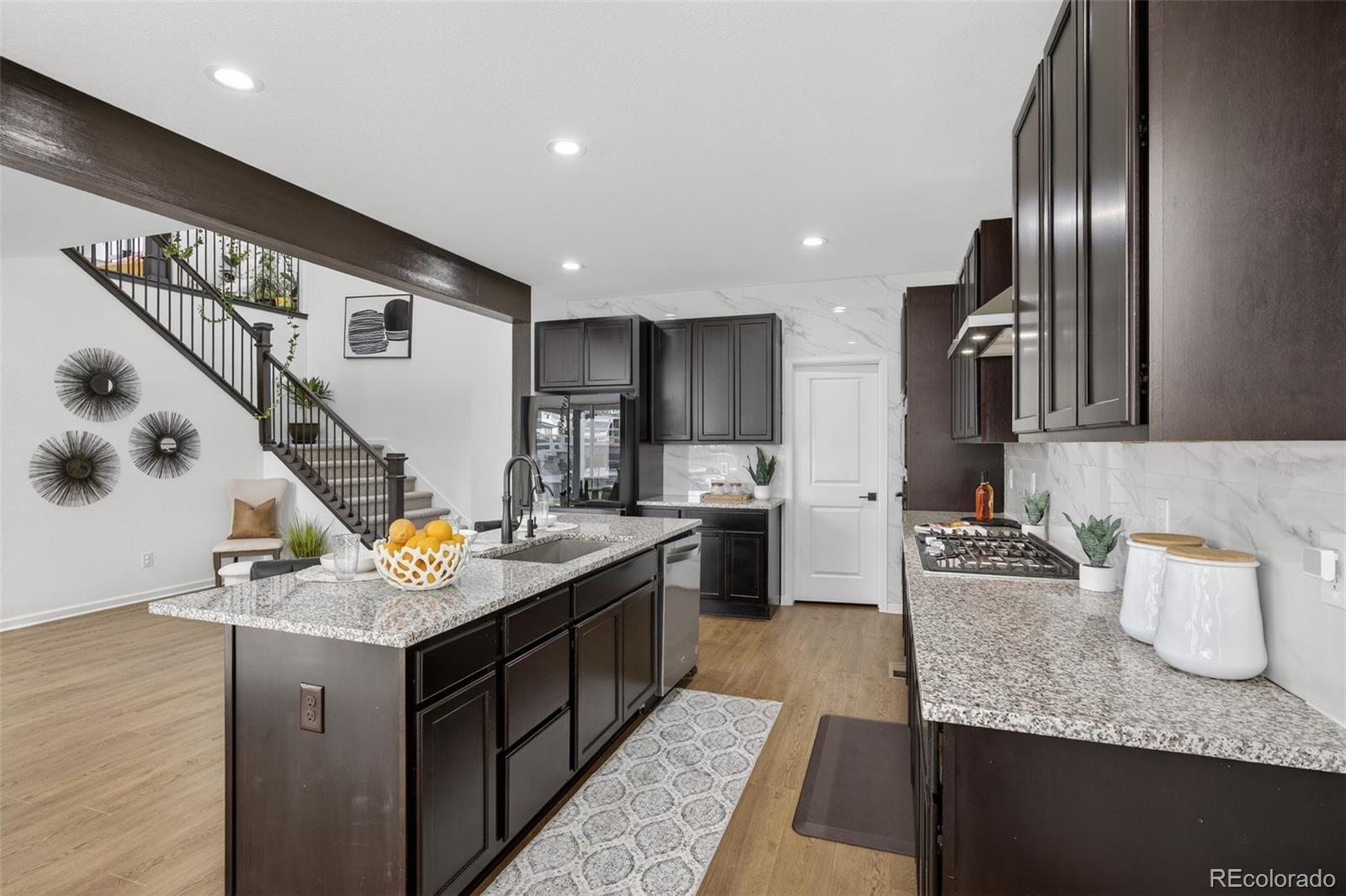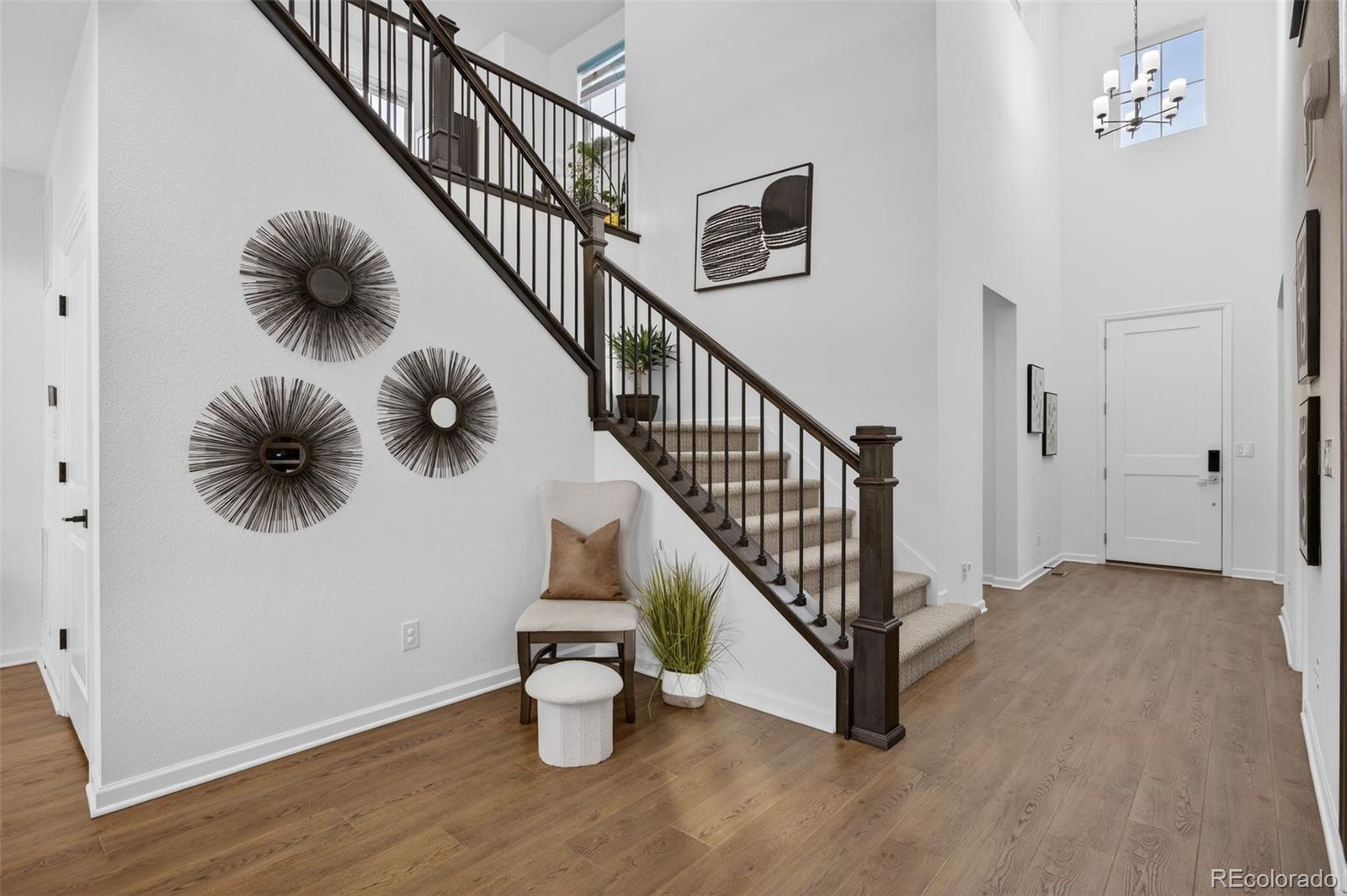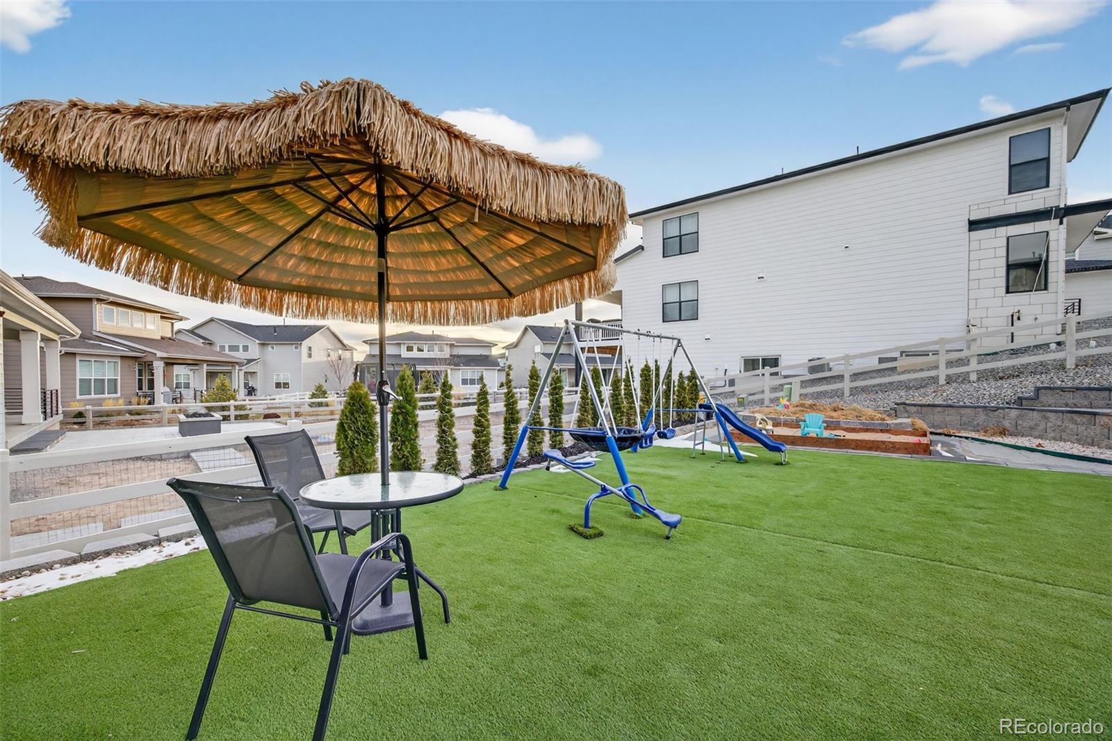 Welcome to this exceptional Allison Ranch home, perfectly placed on one of the largest premium lots in the neighborhood. Spanning 0.22 acre, the setting feels private and peaceful with minimal traffic, open space beyond the neighboring home and a cul de sac at the rear. The plot was purchased in 2023 and the home was built in 2024, giving you the beauty of new construction. Inside elevated design meets everyday comfort. A stunning two story foyer makes a memorable first impression with an architectural open iron staircase and premium luxury flooring. The main floor primary suite is a calming retreat with a luxurious tiled bath, dual vanities, and a deep soaking tub. Thoughtful main level conveniences include an office, laundry room, mudroom and powder room. Carefully curated upgrades include dual furnaces and air conditioning units, a whole house reverse osmosis water softener and whole house humidifier. Expansive 15 foot multi panel stacking glass doors open to a covered outdoor living space, creating an effortless indoor outdoor flow. Once outside be prepare to be impressed. The backyard is a true showstopper, designed with multiple zones that elevate outdoor living. A custom built in outdoor kitchen and grill serves as the centerpiece, ideal for hosting and dining under the open sky. Tiered patios create inviting spaces for gathering, lounging and relaxing, while the covered patio offers a comfortable retreat throughout the seasons. Thoughtful design details throughout the yard create a space that feels expansive, intentional and incredibly inviting. Enjoy resort style amenities including a clubhouse, pool, fitness center, playgrounds, trails, turf fields, basketball and baseball courts and a dog park. Minutes from Pradera and The Pinery golf courses, close to shopping, dining and within walking distance to Lehman Academy’s new Parker campus. This home is visually stunning, carefully designed and filled with spaces that make everyday living feel special.