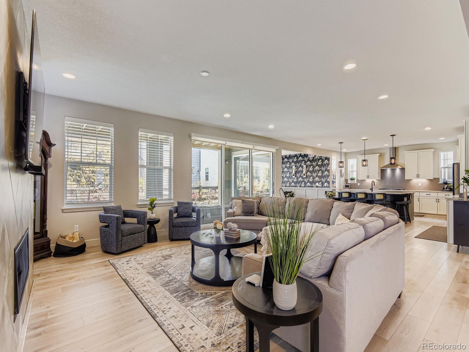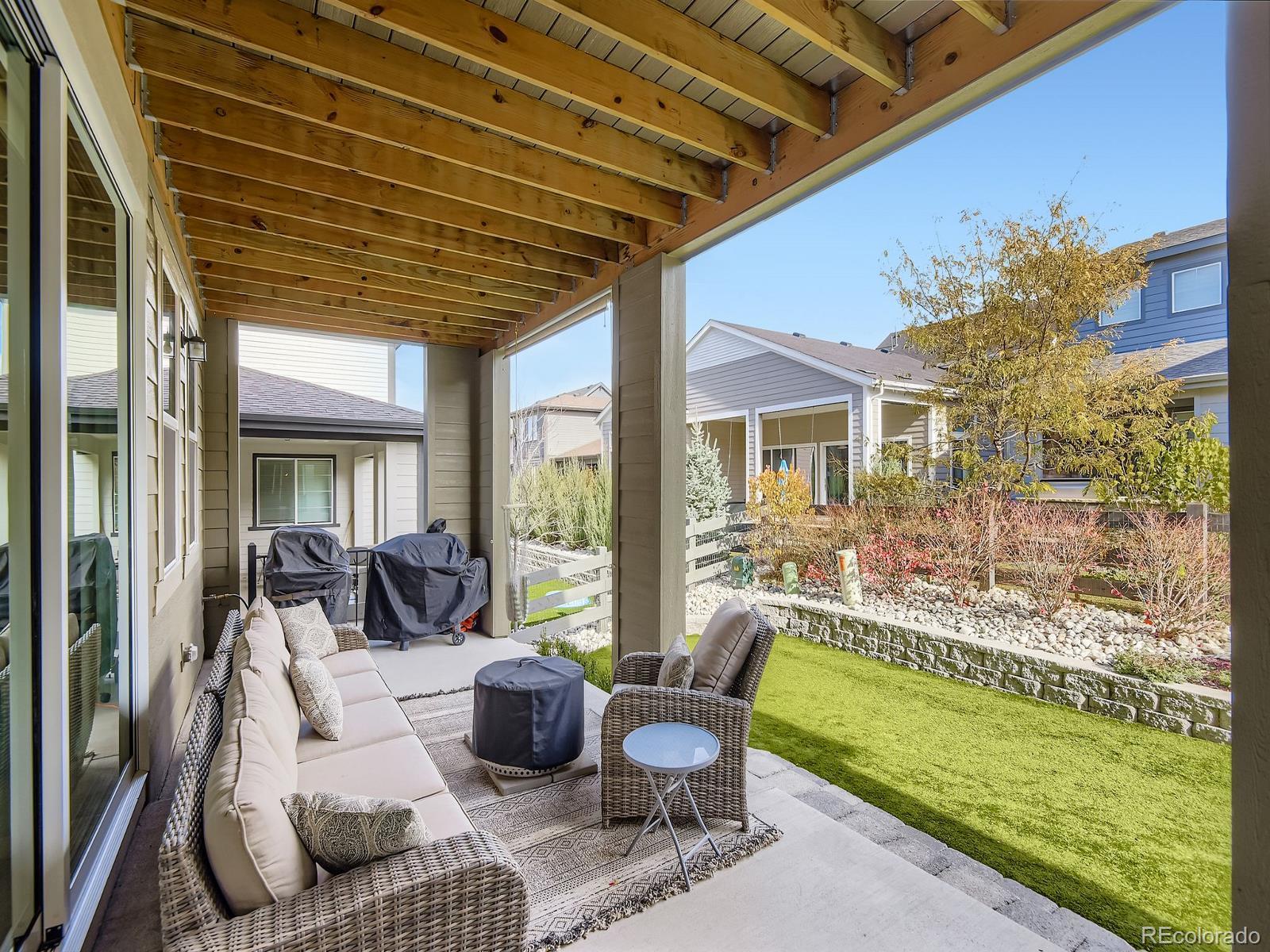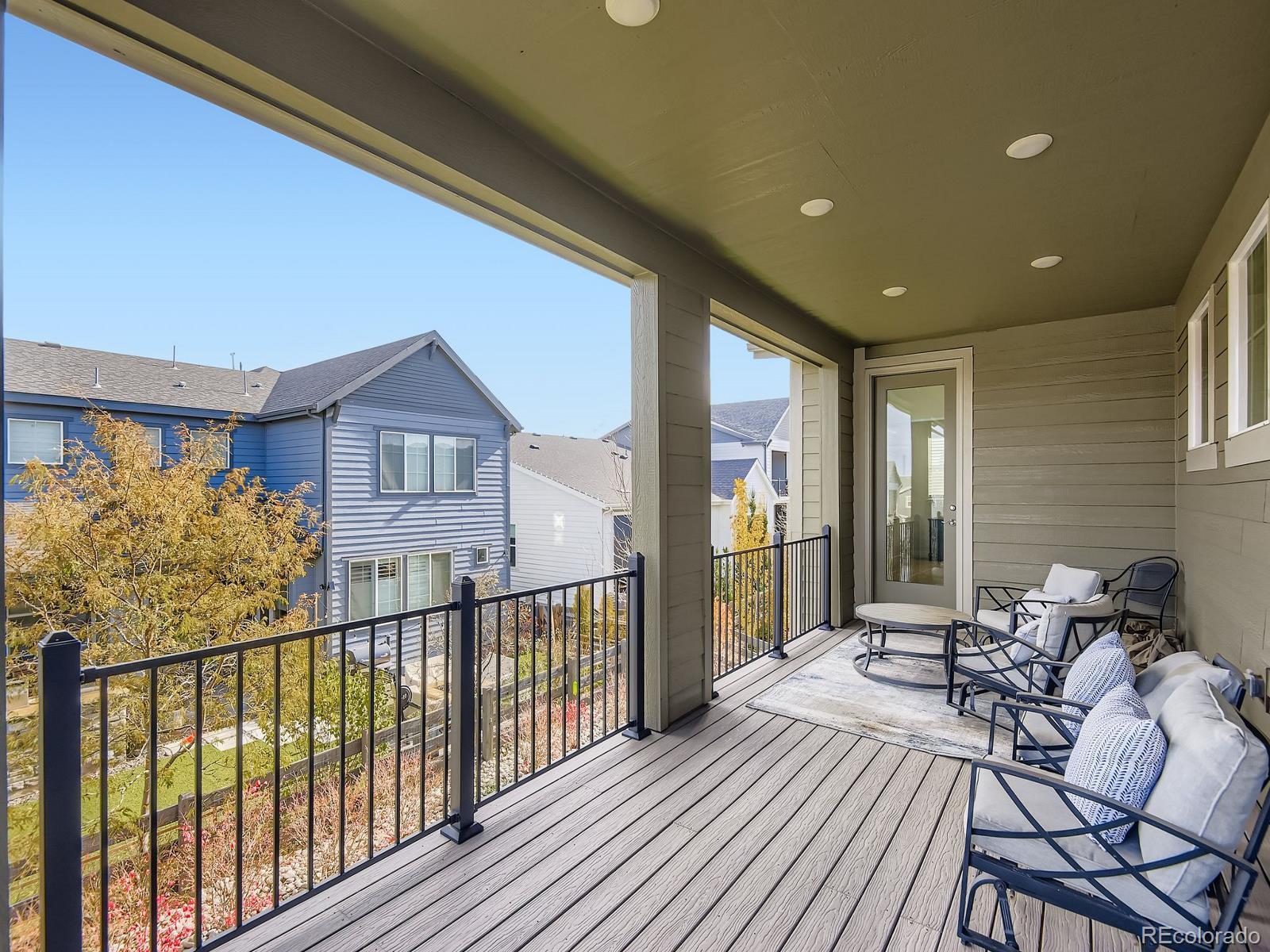 Welcome Home to this beautiful five-bedroom, five and a half bath home in the sought-after Canyons community of Castle Pines. Designed with family living in mind, this spacious home offers an open floor plan filled with natural light and modern finishes throughout. The heart of the home is the gorgeous kitchen with quartz countertops, stainless steel appliances, a large island, and plenty of space for gathering and entertaining. The inviting great room features a cozy fireplace and opens to a covered patio, perfect for backyard barbecues and relaxing mornings and evenings. Upstairs, the primary suite provides a peaceful retreat with its own private deck, a spa-like bath and large walk-in closet, with laundry room attached. Additional bedrooms and bathrooms offer comfort and privacy for family and guests. The open loft area is perfect for a game room, TV room, or office. The finished basement adds even more living space for movie nights, games or a home gym/office. Families will love the vibrant neighborhood amenities including a clubhouse, pool, gym, coffee shop and restaurant. There is a close-by park with covered picnic area with lots of fun for the kids! This area is located near top-rated schools, shopping, and dining. This home offers the best of Colorado living in a welcoming community.