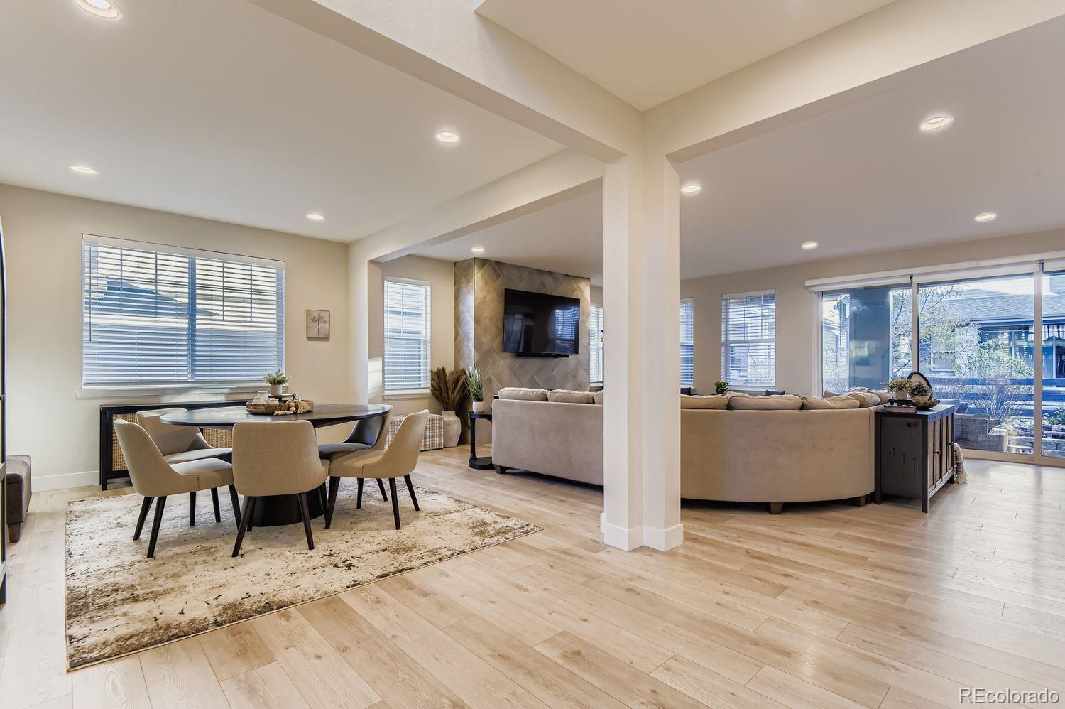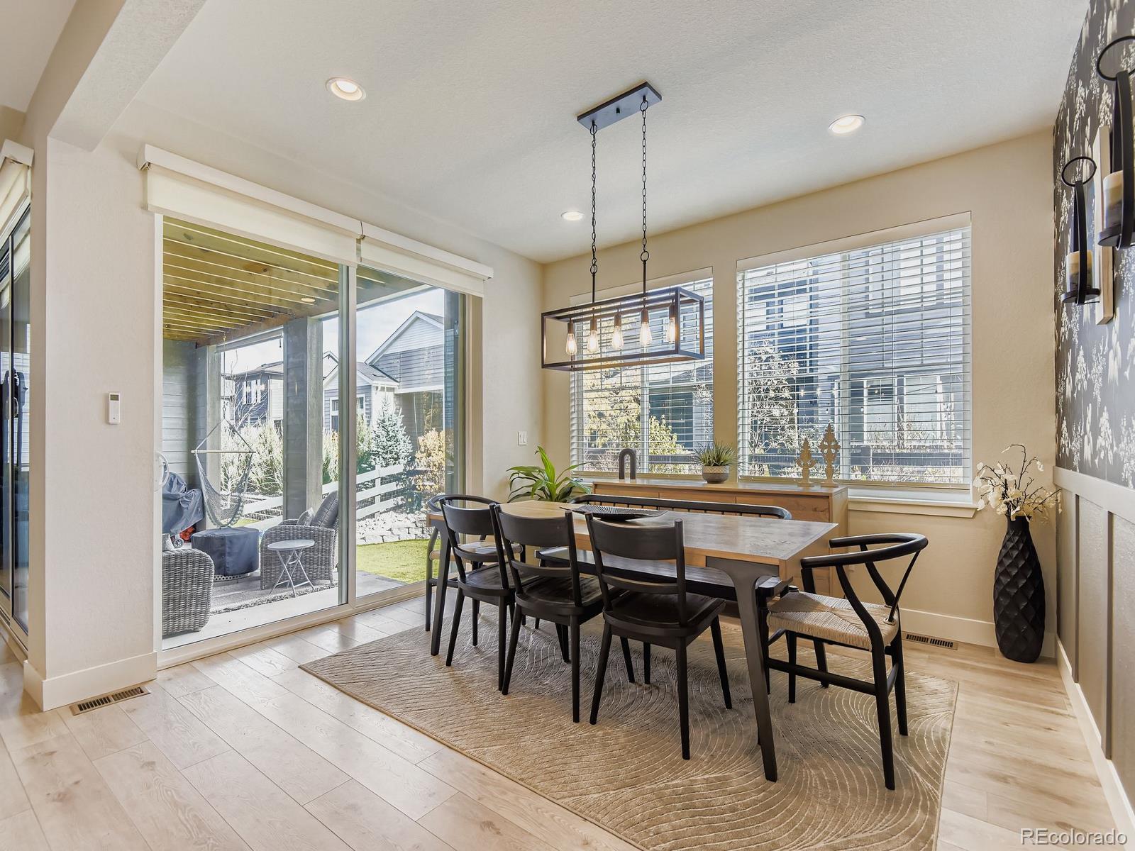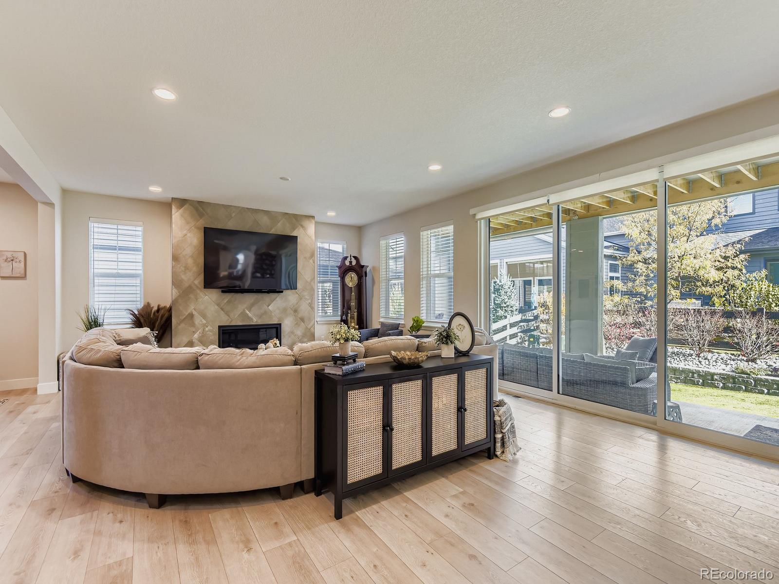 Welcome Home to this beautiful five-bedroom, five and a half bath home in the sought-after Canyons community of Castle Pines. Designed with family living in mind, this spacious home offers an open floor plan filled with natural light and modern finishes throughout. The heart of the home is the gorgeous kitchen with quartz countertops, stainless steel appliances, a large island, and plenty of space for gathering and entertaining. The inviting great room features a cozy fireplace and opens to a covered patio, perfect for backyard barbecues and relaxing mornings and evenings. Upstairs, the primary suite provides a peaceful retreat with its own private deck, a spa-like bath and large walk-in closet, with laundry room attached. Additional bedrooms and bathrooms offer comfort and privacy for family and guests. The open loft area is perfect for a game room, TV room, or office. The finished basement adds even more living space for movie nights, games or a home gym/office. Families will love the vibrant neighborhood amenities including a clubhouse, pool, gym, coffee shop and restaurant. There is a close-by park with covered picnic area with lots of fun for the kids! This area is located near top-rated schools, shopping, and dining. This home offers the best of Colorado living in a welcoming community.