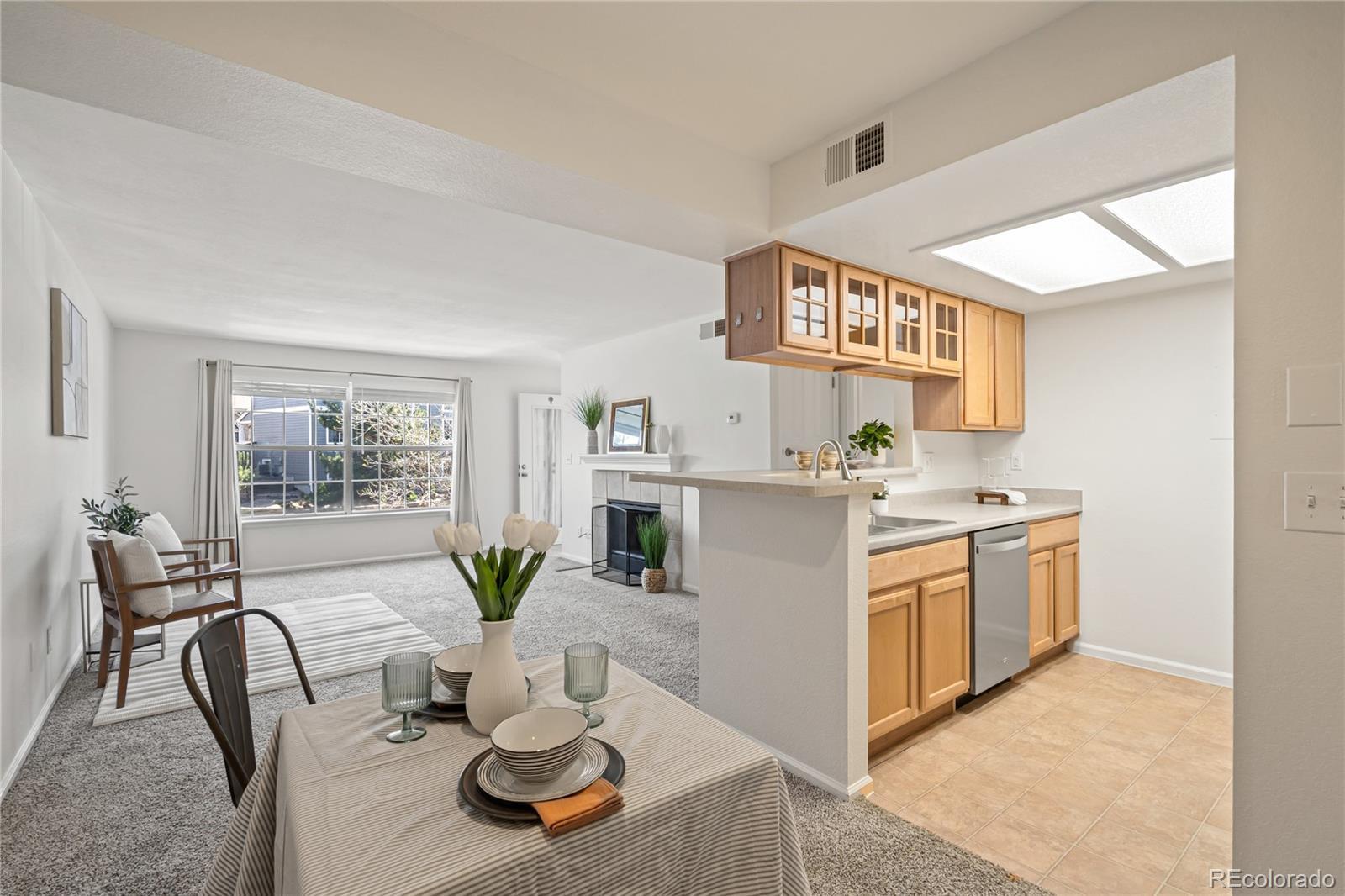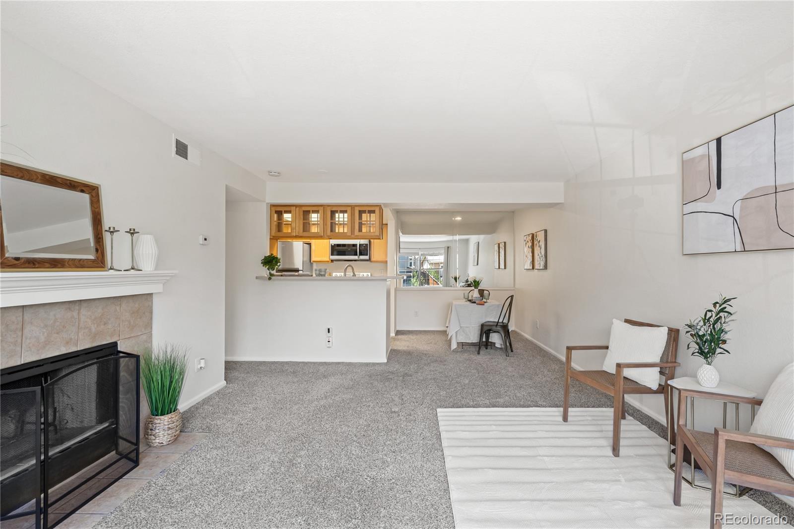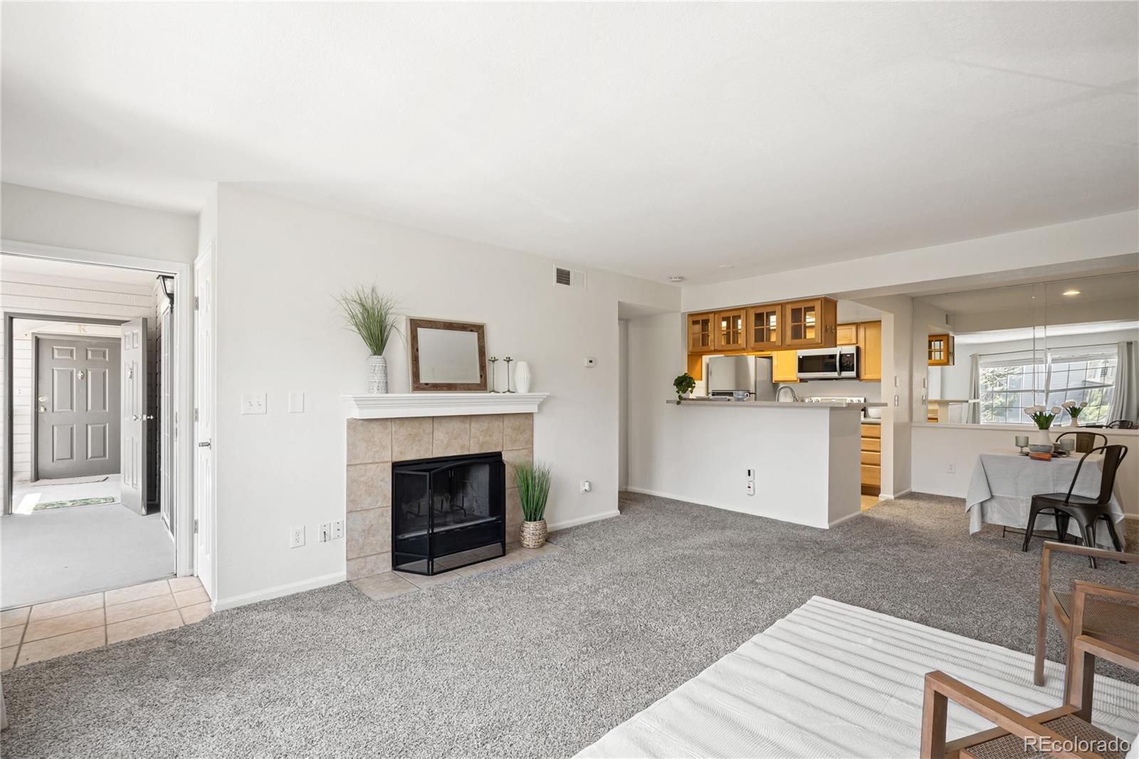 All new HVAC and appliances. New hot water heater too * $15K price drop on RARE 3rd floor unit w/fireplace! - Now $230K!* These units sold have sold for close to $300K in the past!* No one lives above you! * This is the larger 1 bed / 1 bath unit vs some of the others on the 1st and 2nd floor * Includes BRAND NEW STAINLESS appliances - never used! - refrigerator, stove, microwave, dishwasher and new stainless kitchen sink * This condo lives big with a large family room and separate dining area/office space* In unit washer/dryer is super convenient * All new paint and newer carpet * Private patio with extra storage * Located super close to Arapahoe RTD Lightrail stop, Fiddler's Green Ampitheater w/access via walking crossover bridge, adjacent to numerous Greenwood Village parks, I25 and C470 * HOA includes access to pool and community clubhouse with workout room * Located in award winning Cherry Creek Schools with easy bike path access * Walking distance to many Fiddler's business center office buildings