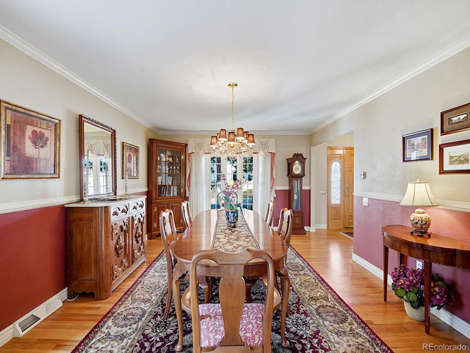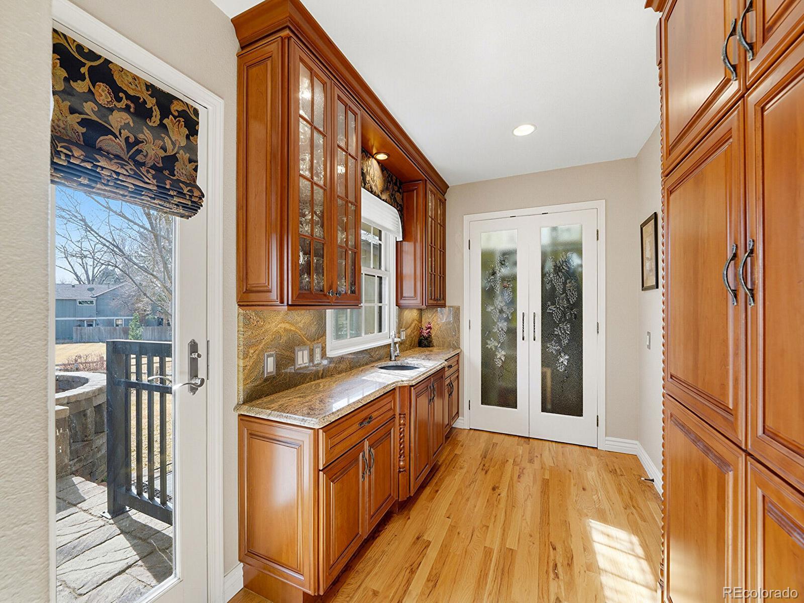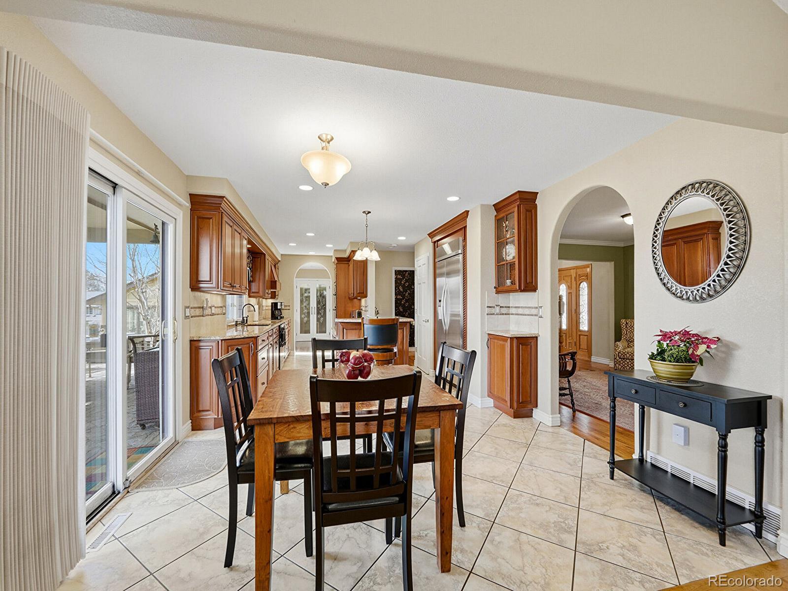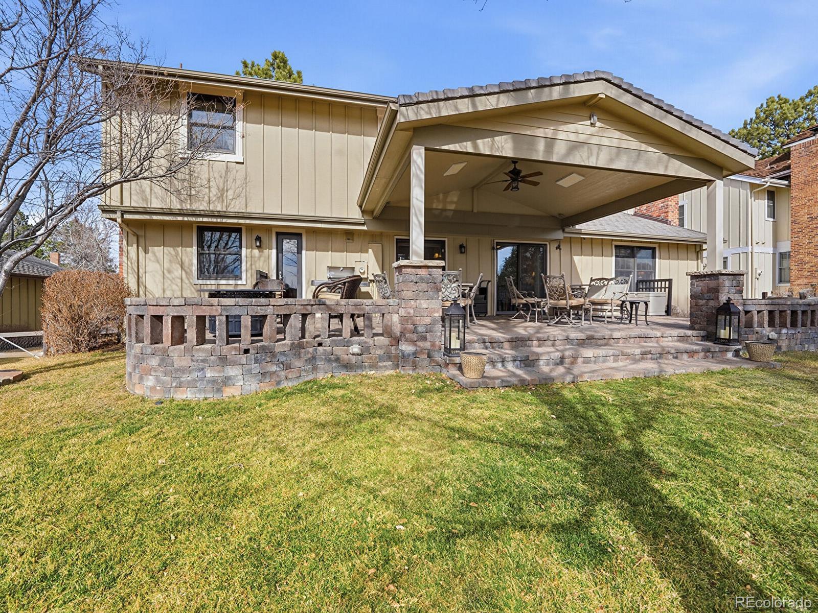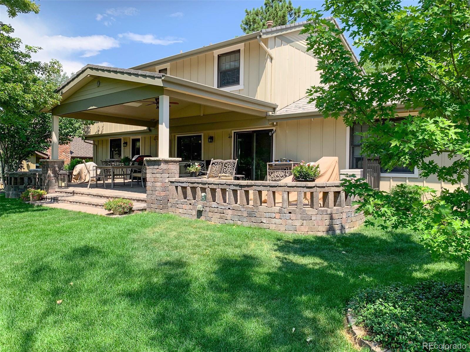 Entertainer’s dream home in Willow Creek backing to HOA green space, featuring a Chef’s kitchen, plentiful living space, and a backyard designed for hosting! Set on a quiet, tree-lined lot, this 4-bed, 3-bath single-owner home has been meticulously maintained, with upgrades and custom touches throughout. A classic Colonial exterior and new faux slate roof create a polished first impression, leading into warm oak hardwood floors and arched doorways that set a refined tone. The formal living room flows into a vaulted family room designed for lively gatherings or cozy movie nights, anchored by a granite-surround gas fireplace. Casual dining connects to the kitchen with glass sliders that open to the covered patio for easy indoor–outdoor hosting. The chef’s kitchen is made for easy weeknight dinners or feeding a crowd with an oversized island, cherry cabinetry, granite countertops, and high-end appliances. The adjacent butler’s pantry connects to the formal dining room, where a five-panel bay window elevates every occasion, with a convenient nearby powder bath. Upstairs, the airy primary suite offers a walk-in closet and spacious en suite with dual sinks, generous storage, and an oversized walk-in shower. Three additional bedrooms with custom closets share a full hall bath. The finished basement extends living space with a large rec room and wet bar—ideal for game nights, movie marathons, or hobbies. Laundry and unfinished space (stubbed for future expansion) provide flexibility, plus a large crawl space for storage. A covered masonry patio with a built-in firepit anchors a backyard designed for gathering, gardening, and play, while a private gate opens directly to park space. Residents of Willow Creek enjoy pools, clubhouses, trails, and sport courts, all just minutes from the Denver Tech Center, South Suburban Golf Course, and Park Meadows. Classic, curated, and exceptionally well cared for, this is Willow Creek living at its finest!