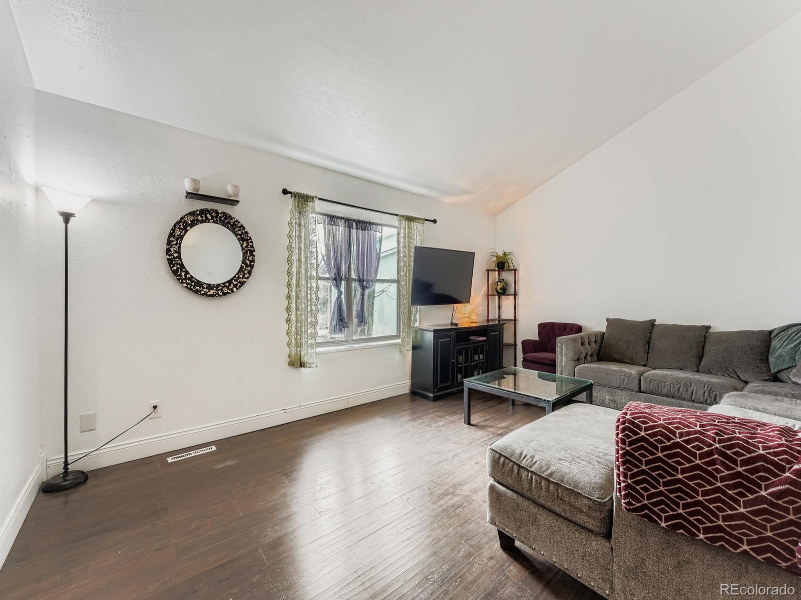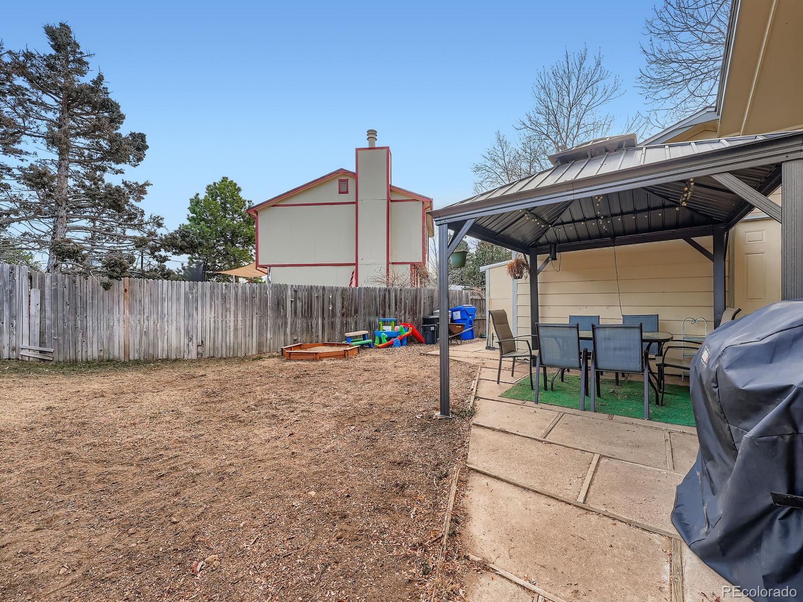 Welcome to this charming tri-level home tucked away at the end of a quiet cul-de-sac in Summer Valley Ranch. With 1,814 SF of living space, this home offers four generously sized bedrooms and three bathrooms, providing comfort and flexibility for a variety of lifestyles. Upstairs, you'll find a peaceful primary suite with an en-suite ¾ bath, along with two additional bedrooms and a full hall bath. The main floor features engineered hardwood flooring, a bright living room with vaulted ceilings, and a kitchen equipped with stainless steel appliances. The adjacent dining area, complete with a ceiling fan, opens directly onto the backyard patio. Down on the lower garden level, enjoy a spacious family room with a cozy wood-burning fireplace, complete with a custom-painted brick hearth, mantel, and built-in bookshelves with wood storage (currently covered by bookshelves). A second primary bedroom with its own en-suite ¾ bath offers additional privacy or guest space. The HVAC system is located in the crawl space with plastic-covered flooring. The attached, finished two-car garage includes a convenient exterior door leading to the backyard. Outside, you'll love the fully fenced back yard with a private patio, attached storage shed, a dedicated dog run, and another area with raised garden beds. The front yard features mature trees that provide plenty of shade. Amenities nearby include numerous parks, VASA Fitness, Wood Paddle Pizza & Tap in addition to Lowes, Target, King Soopers and Summer Valley Shopping Center. Enjoy the tour!