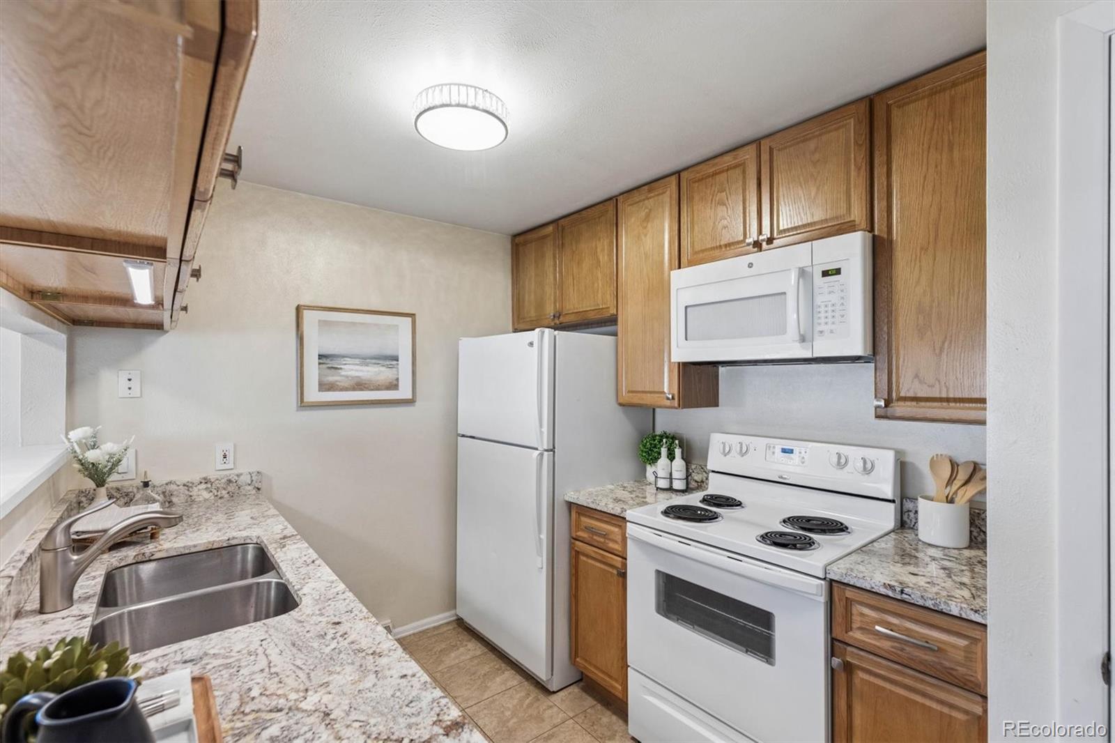 Highly desirable RANCH-style end unit townhome offering true single-level living in the established Columbine Townhomes community. Efficient and functional floorplan featuring a light-filled living area with engineered hardwood flooring and seamless open-concept flow into the dining space, creating comfortable everyday living and entertaining flexibility. Kitchen includes GRANITE countertops, oak cabinetry, white appliances, and practical storage solutions. Two well-proportioned main-level bedrooms provide versatile use, including a spacious primary bedroom with GENEROUS closet space and a secondary bedroom ideal for guests, home office, or flex space. Full hall bath with JETTED tub/shower combo plus convenient in-unit LAUNDRY with built-in shelving. Engineered hardwood flooring throughout main living areas and bedrooms adds durability and cohesive design. Detached GARAGE included for added storage and parking convenience. Strong Littleton LOCATION with close proximity to Chatfield Reservoir, Dutch Creek Trail system, neighborhood parks, and extensive outdoor recreation. Easy C-470 access provides efficient connectivity to the Denver Tech Center, foothills, and mountain recreation. Convenient access to shopping, dining, and everyday amenities along Ken Caryl and Wadsworth corridors. Professionally managed HOA covering exterior maintenance, grounds care, snow removal, water, sewer, and trash supports low-maintenance ownership and long-term ease of living.