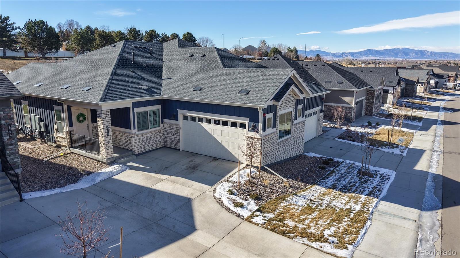 This nearly new Vista ranch model offers 2 bedrooms and 2 bathrooms with a stunning open-concept layout connecting the living room, dining area, and kitchen. The kitchen features a large island, quartz countertops, gas range, and stainless-steel appliances, with warm, cohesive cabinetry carried throughout both the kitchen and bathrooms. Quartz countertops continue in the bathrooms for a clean, elevated look. This home feels practically brand new, as the sellers are relocating for work, creating an excellent opportunity for a move-in-ready, low-maintenance home. Upgrades include custom window shutters throughout, washer and dryer, all appliances included, and a finished garage with an EV charger. Enjoy morning coffee or lunch on the covered patio, and take advantage of this home being priced competitively, the best value currently in the community. This popular Vista model is one you won’t want to miss. Pickleball lovers will appreciate the private community court, along with nearby trails and parks, convenient access to I-25, and shopping, restaurants, and coffee shops just minutes from home. Be sure to check out the property video by scrolling to Facts & Features and clicking Virtual Tour. Showings start Feb 12th, and Open Houses both Feb 14th & 15th from 12-2pm.