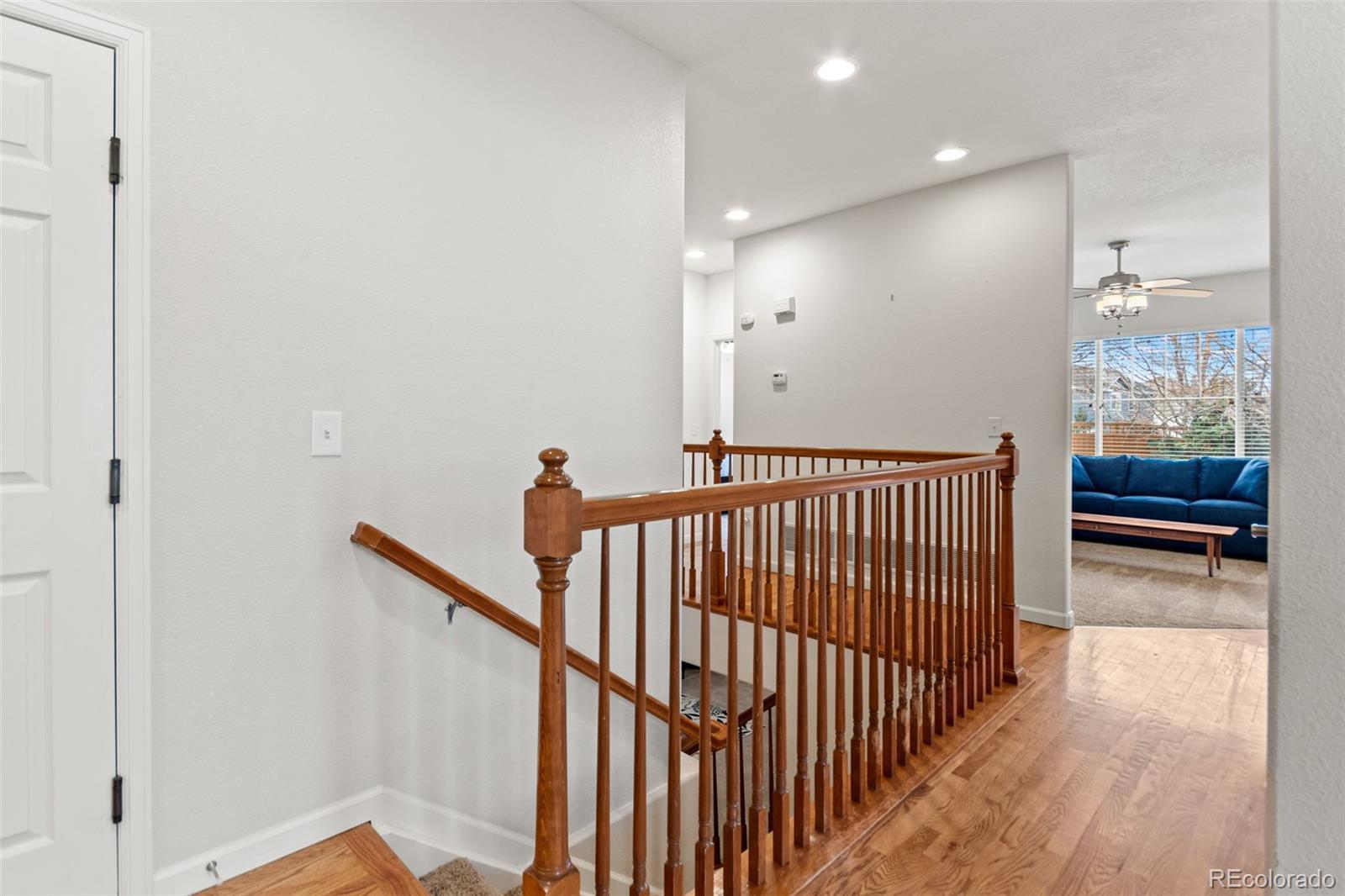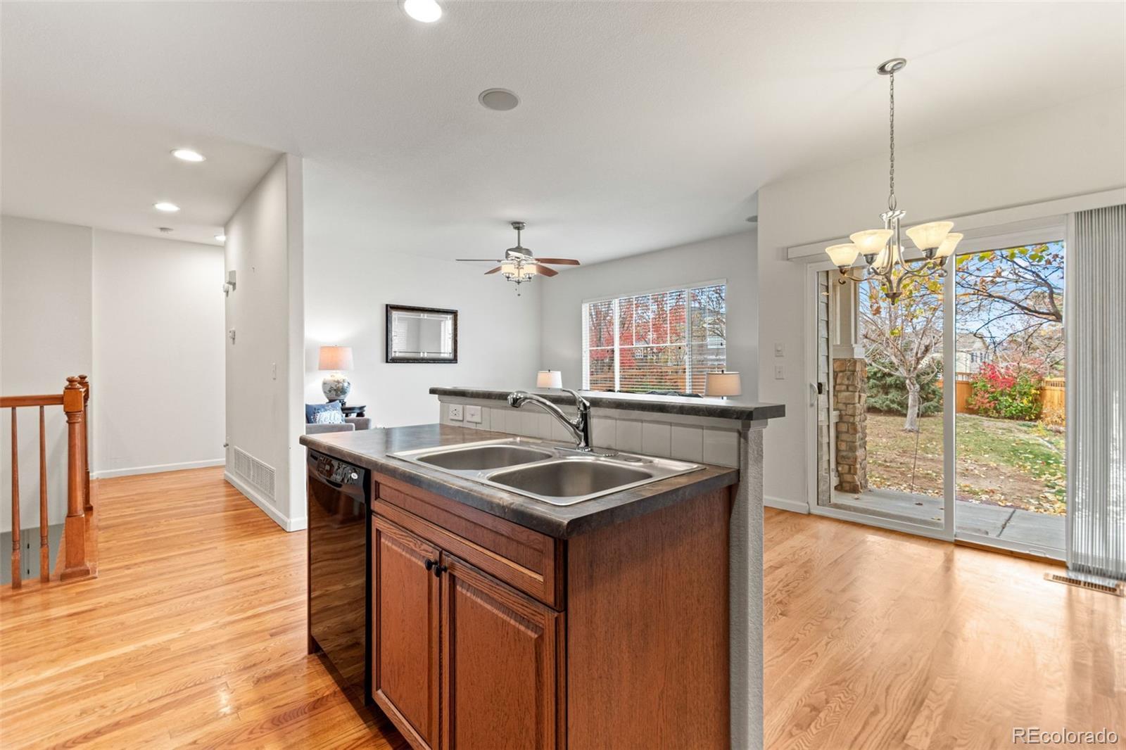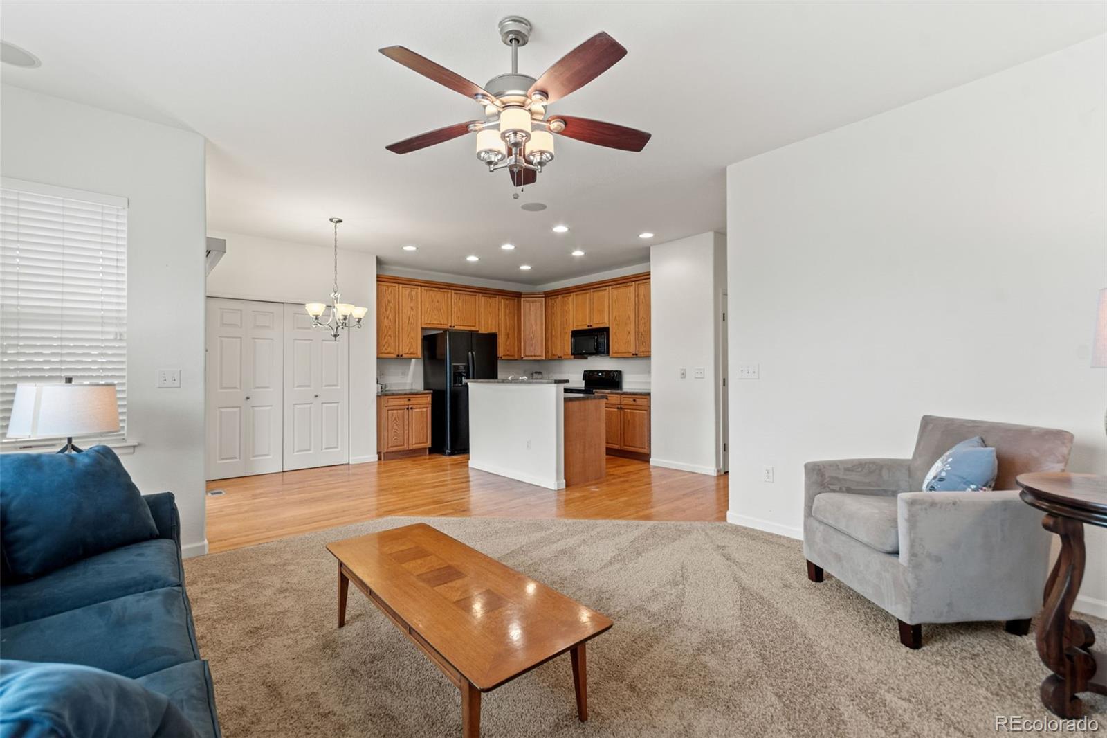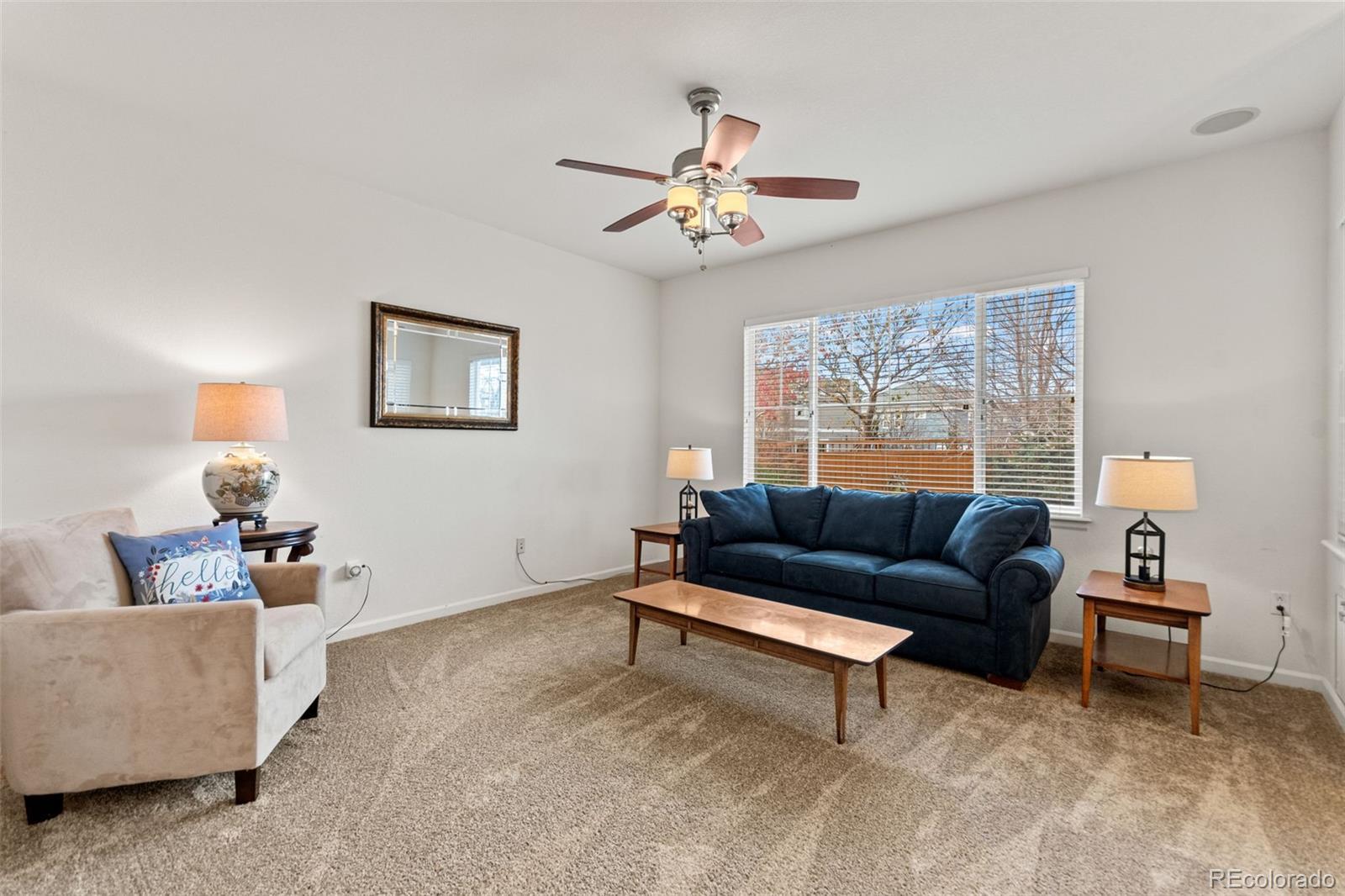This true ranch-style home has a main floor which features an open dine-in kitchen with breakfast bar, a formal dining room, a family room, a primary bedroom with a walk-in closet and a four-piece en-suite bathroom, a second bedroom and a second full bath. The total main floor living space is 1349 square feet. Head into the finished basement (1297 SF finished below grade living space), where you'll find a large open space for any activity. With a built-in media system, a home office with double French doors, a full bathroom, laundry room, and a large basement bedroom with a walk-in closet. But wait, there's more with a 2-car attached garage with a freezer and a work bench, a fenced backyard with western mountain views, access to walking, biking, hiking paths, and so many green spaces, you'll love it all. Experience the best of Colorado living in this well-maintained home, perfectly situated in the heart of a 24-mile trail system in the 80109 zip code. Enjoy nearby parks, playgrounds, restaurants, breweries, movie theaters, the Outlet Mall, Whole Foods, Home Depot, Lowes, Starbucks, schools, and, the Grange pool and event center. This move-in ready ranch home perfectly blends serene Colorado surroundings with modern comfort and accessibility.