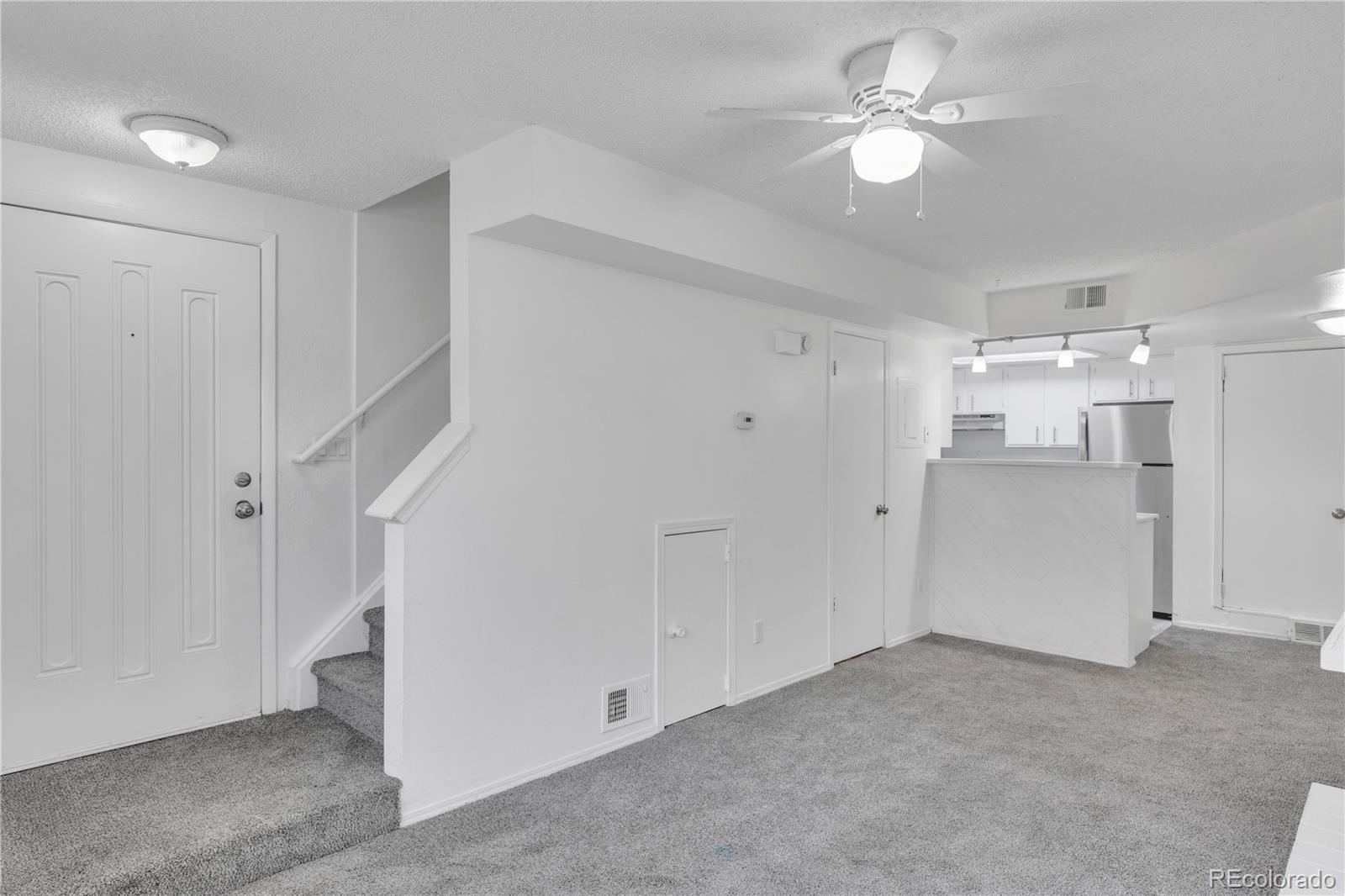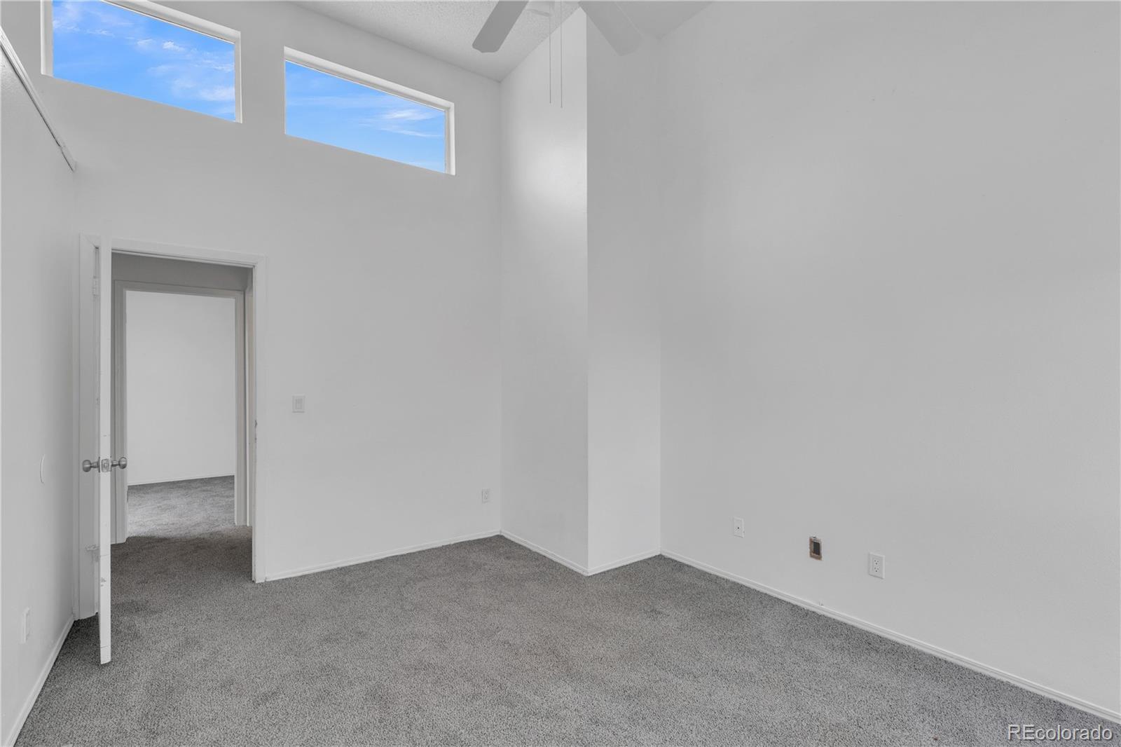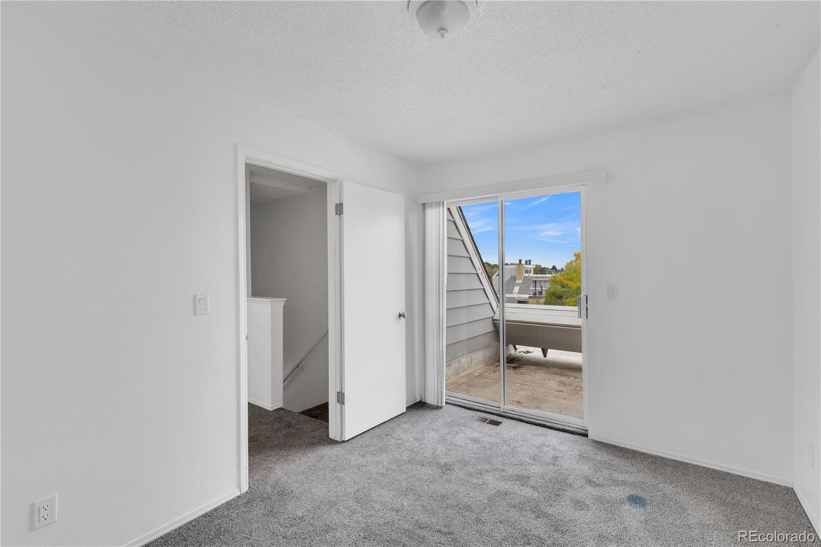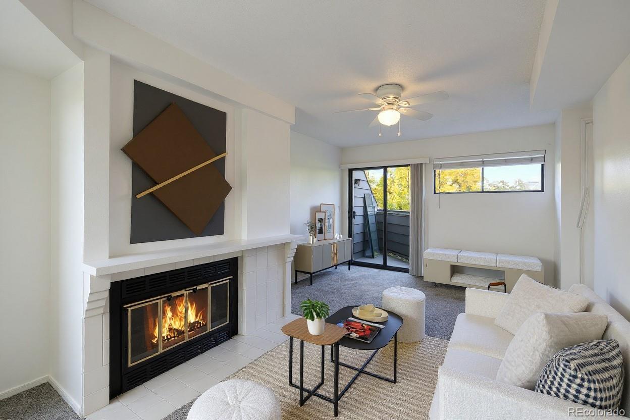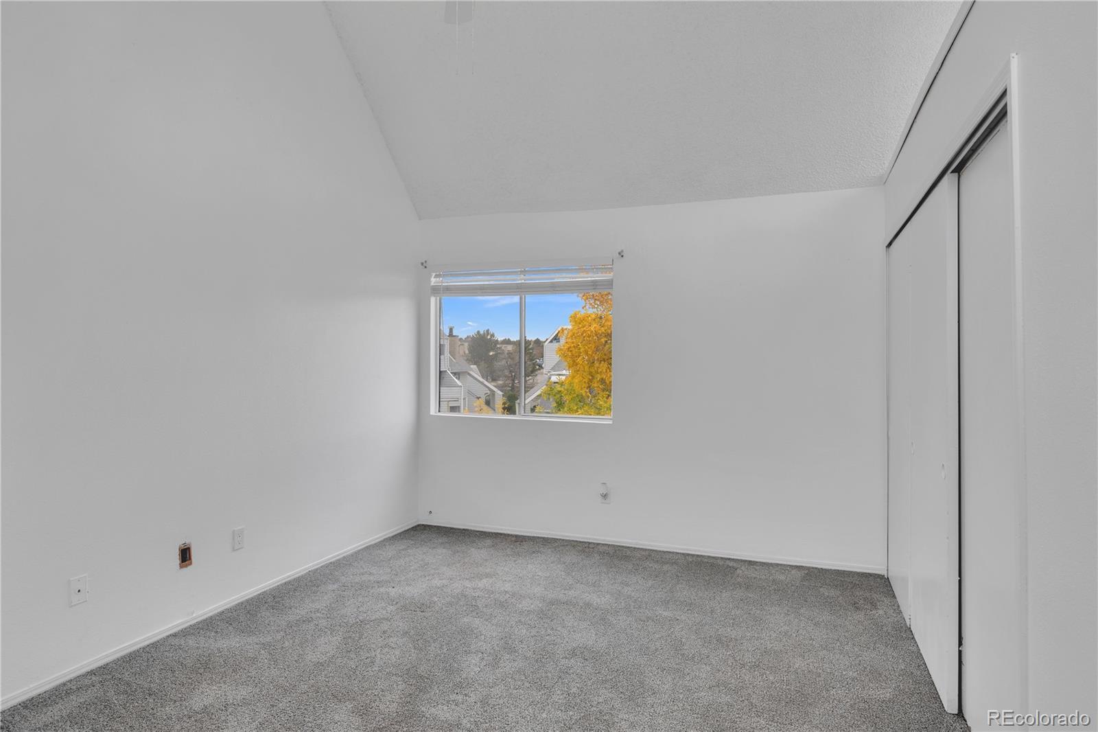 Welcome home to this sunny and spacious 2-bed, 2-bath penthouse condo! This move-in ready, two-story unit offers vaulted ceilings upstairs, tons of natural light, and a smart layout with no one above you. Step into an open living space featuring a cozy wood-burning fireplace, ideal for these cool fall evenings. The kitchen flows seamlessly into the dining and living areas with a powder bath on this level, making your main living area feel easy and relaxed. Just off the living room, you'll also find a private balcony that is ideal for your morning coffee or unwinding after a long day. The primary suite upstairs features a large closet, while the second bedroom offers flexibility for guests, roommates, or a home office setup. You'll also find a shared full bathroom upstairs and private, in-unit laundry on the main level, which adds so much convenience to your everyday living. You'll also love having a reserved covered parking space and a location that truly delivers with easy access to Buckley Space Force Base, I-225, the light rail, shopping, dining, and the Anschutz Medical Campus. Whether you're looking for a comfortable place to call home or a turn-key investment property, this one checks all the boxes. Come see it today before it's gone!