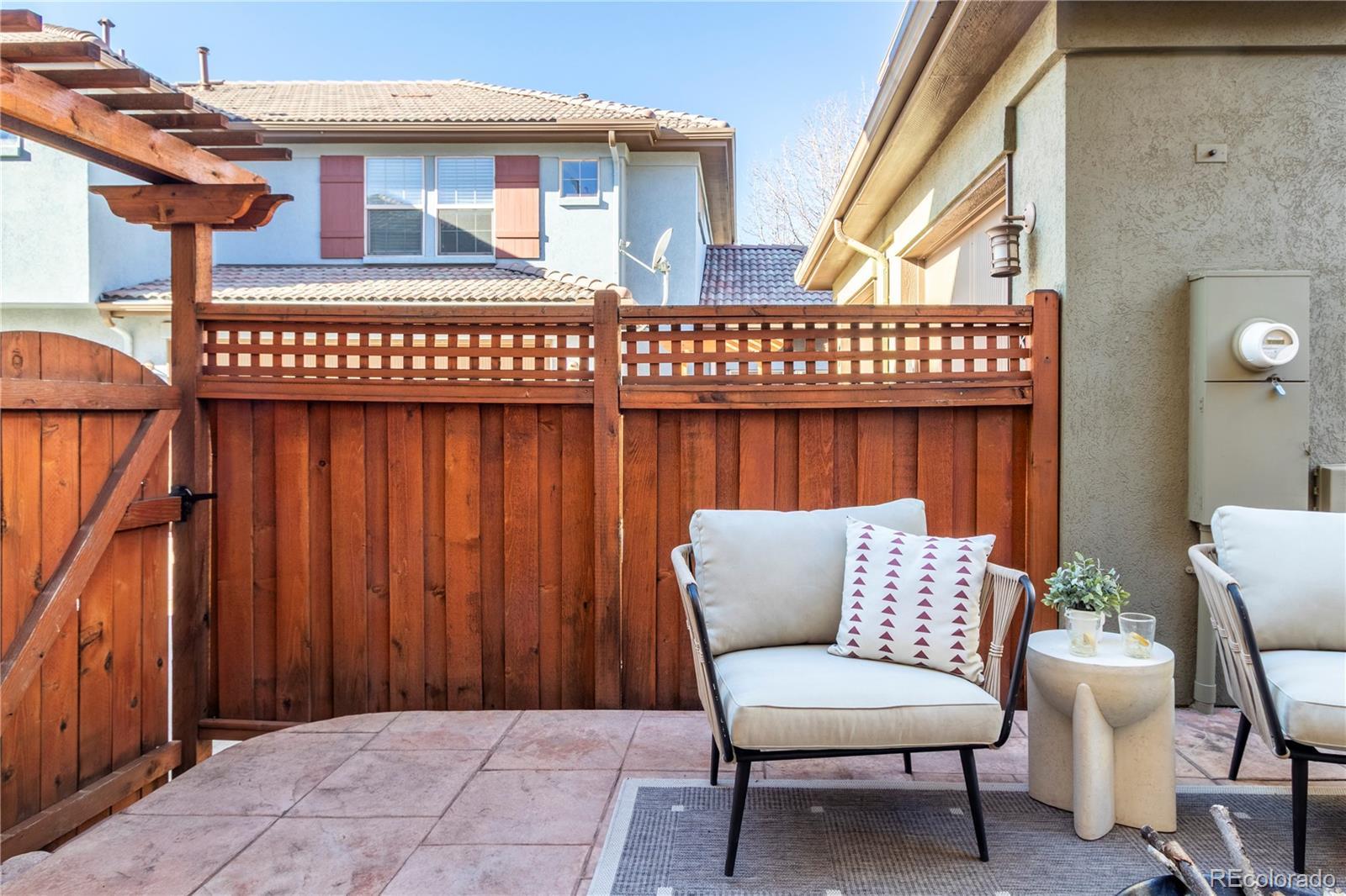 Tucked quietly off the street through a charming courtyard, this two-bedroom, one-and-a-half bath end-unit townhome blends character, convenience, and low-maintenance living in one of Denver’s most connected neighborhoods.The main level features an open and inviting layout with a comfortable living room, dining area, and kitchen accented by updated countertops. Sliding glass doors open to a private patio, perfect for morning coffee or evening downtime. An oversized attached two-car garage adds storage space and makes unloading the grocery haul a breeze. Upstairs, you’ll find two well-proportioned bedrooms, one with a cozy reading nook, a full bathroom with double sinks and a water closet, and a dedicated laundry room - a thoughtful and functional layout that maximizes space. The home’s Spanish-style architecture sets it apart, with warm honey-toned stucco, spiral columns, and a classic Spanish tile roof. The HOA supports truly easy living, covering exterior maintenance, roof, and snow removal. This home has been meticulously cared for, with recent updates including newer carpet and paint, a furnace, AC, hot water heater, quartz countertops, and upgraded insulation - all thoughtfully completed to enhance comfort, efficiency, and peace of mind. The location is a standout: just one block to Eastbridge Town Center with its grocery store, restaurants, and shops, and directly across the street from the neighborhood recreation center offering a pool, indoor basketball courts, fitness equipment, and classes. The nearby trail system weaves throughout the community, effortlessly connecting parks, pools, Stanley Marketplace, and other daily destinations.