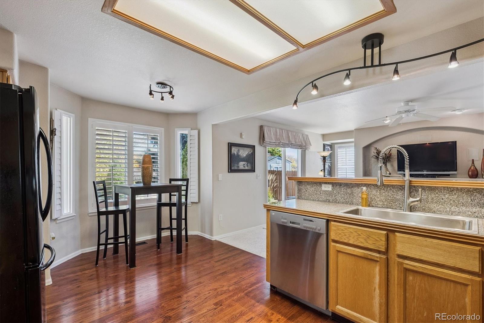 Tucked in the Westcliff neighborhood and bordered by open-air beauty, this thoughtfully cared-for home offers a daily rhythm that feels both effortless and restorative. Beyond the backyard, a trail connection leads straight into the Big Dry Creek system where you will find miles of greenway to wander, jog, or bike beneath Colorado skies. Step outside onto the composite deck and flagstone patio and you’ll find a setting that feels almost secluded with aspen groves that flicker in the breeze, and mature cedars creating a soft, natural embrace. Inside, natural light pours through plentiful double-pane windows, warming hardwood floors and highlighting classic plantation shutters throughout. Vaulted ceilings in the living room, dining room, and primary suite add an airy sense of space, while the gas fireplace brings a grounding glow on winter evenings. The lower level is a hidden gem with new egress windows, a wet bar, and speaker hookups ready for movie nights, entertaining, or a creative retreat. With 3 bedrooms, 4 baths, central A/C, a double oven, included washer/dryer, and an attached 2-car garage, comfort meets convenience with close proximity to Walnut Creek shopping center, Highway 36 and an easy commute to both Denver and Boulder.