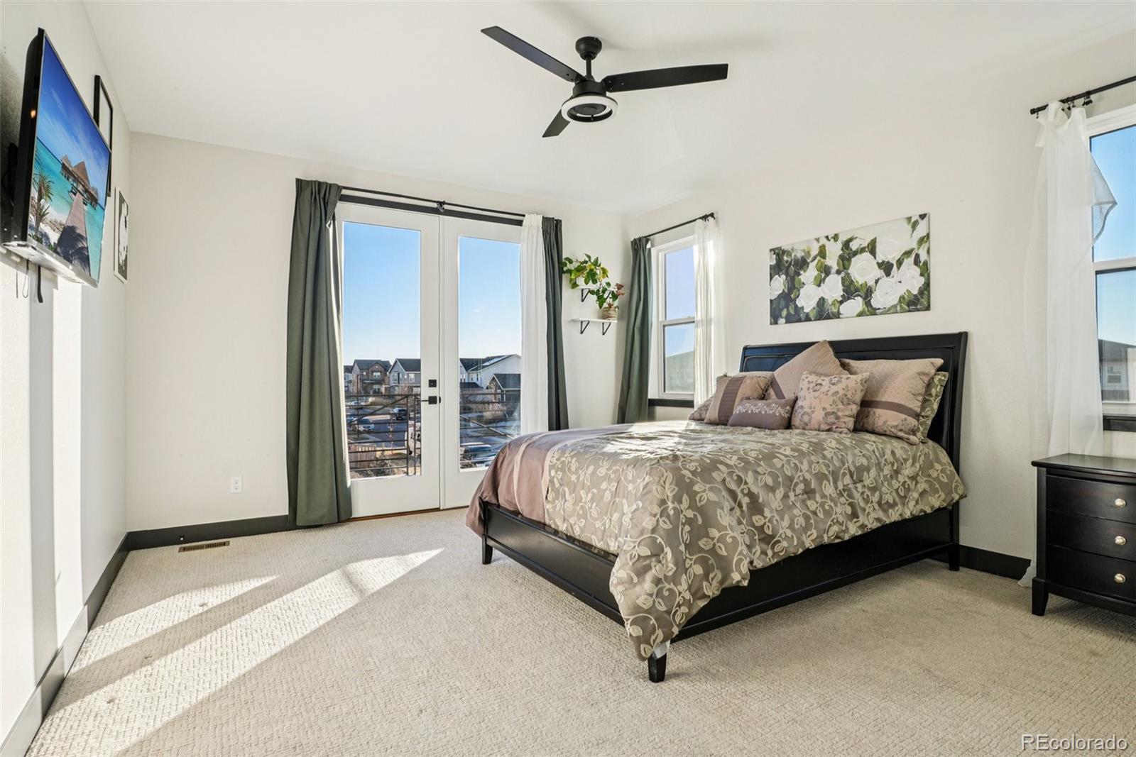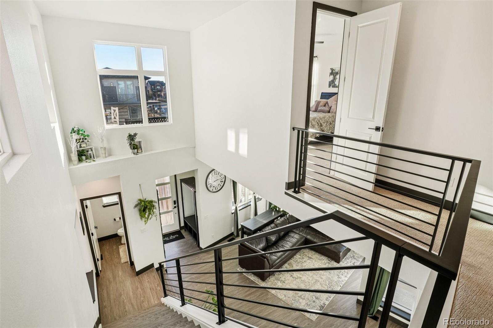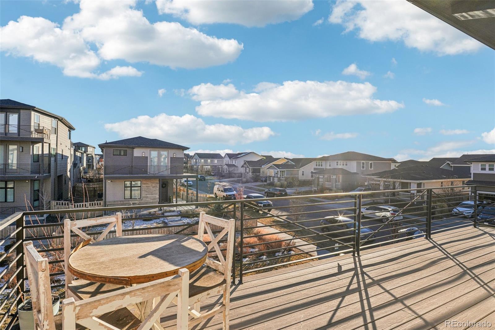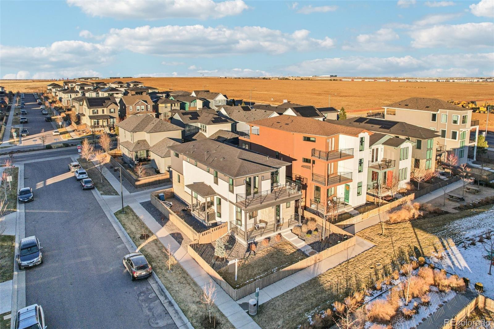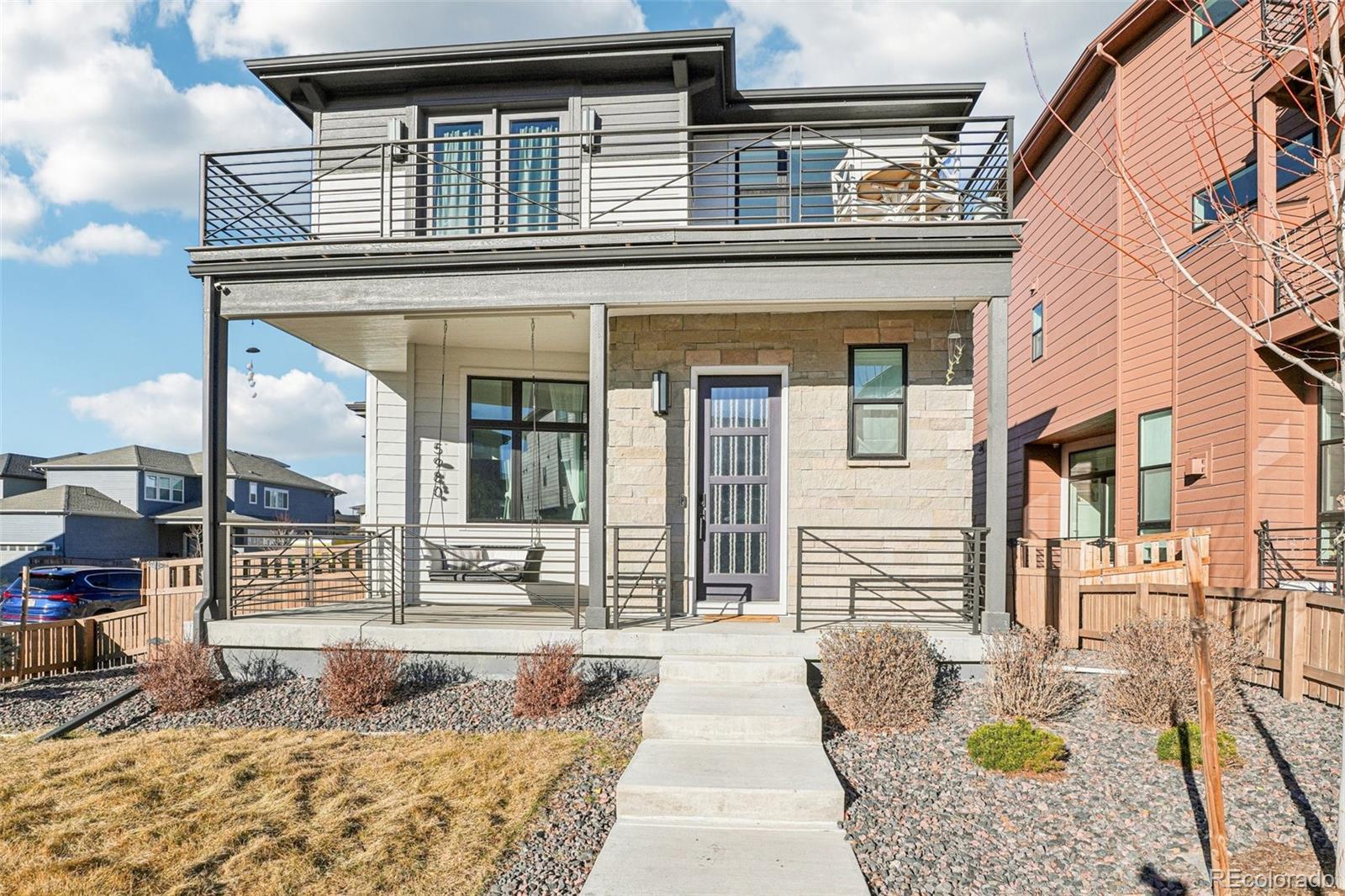 Welcome to this beautifully upgraded two-story home in the highly sought-after Painted Prairie community. Built in 2022 and thoughtfully enhanced by both the builder and owner, this home offers 4 bedrooms, 3.5 bathrooms, and over 2,700 finished square feet of flexible living space with no waiting and no construction hassle. The open-concept main floor features 10-foot ceilings, expansive windows, black trim and window sills, and designer custom pendant lighting in the kitchen and living room. The chef’s kitchen is equipped with shaker cabinets, upgraded hardware, quartz countertops, oversized island, cup washer at the main sink, stainless steel appliances including a 4-door Samsung refrigerator, gas cooktop and oven, and smart lighting. Upstairs, the primary suite offers a walk-in closet, custom tile shower with bench, TV rough-in, and access to a private balcony. Additional bedrooms and a loft provide space for work, guests, or play. The fully finished basement was completed by the owner and includes a living space, bedroom or office, full bathroom, storage room, in-wall safe, and sub panel already installed by the builder, offering future flexibility. Additional highlights include a custom built-in laundry room with matching Samsung washer and dryer, oversized two-car and half garage with 220V outlet for a welder, radon fan added in the attic, full security system with cameras and POE wiring, smart thermostat, remote garage door opener with camera, TV rough-ins, and remote keypad entry. Outdoor features include a covered front porch with swing, side swing gate, dog door with dedicated dog run, fenced yard, and drip irrigation. Painted Prairie offers pocket parks, community gardens, trails, and future Town Center amenities. Conveniently located minutes from Denver International Airport, Anschutz Medical Campus, and Downtown Denver, this home blends modern upgrades, smart technology, and true community living.