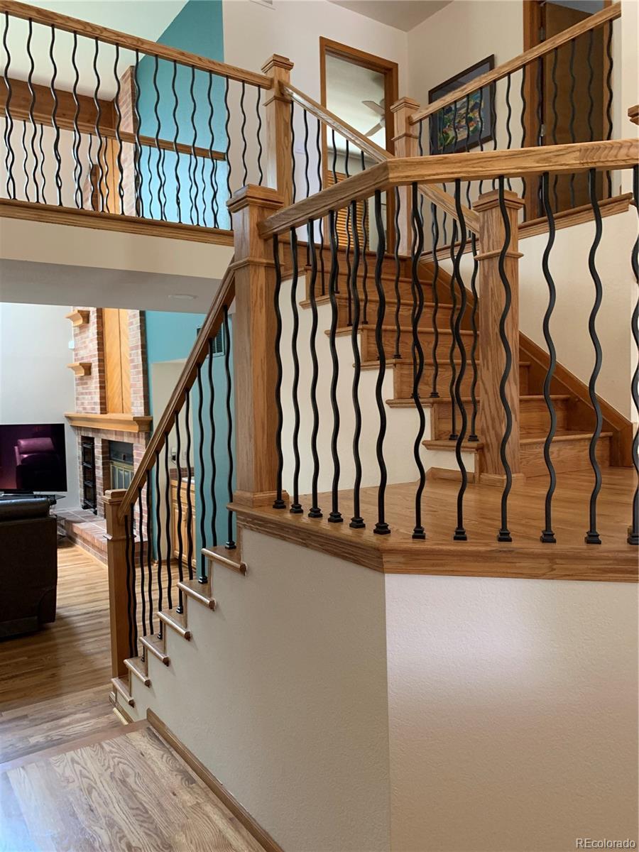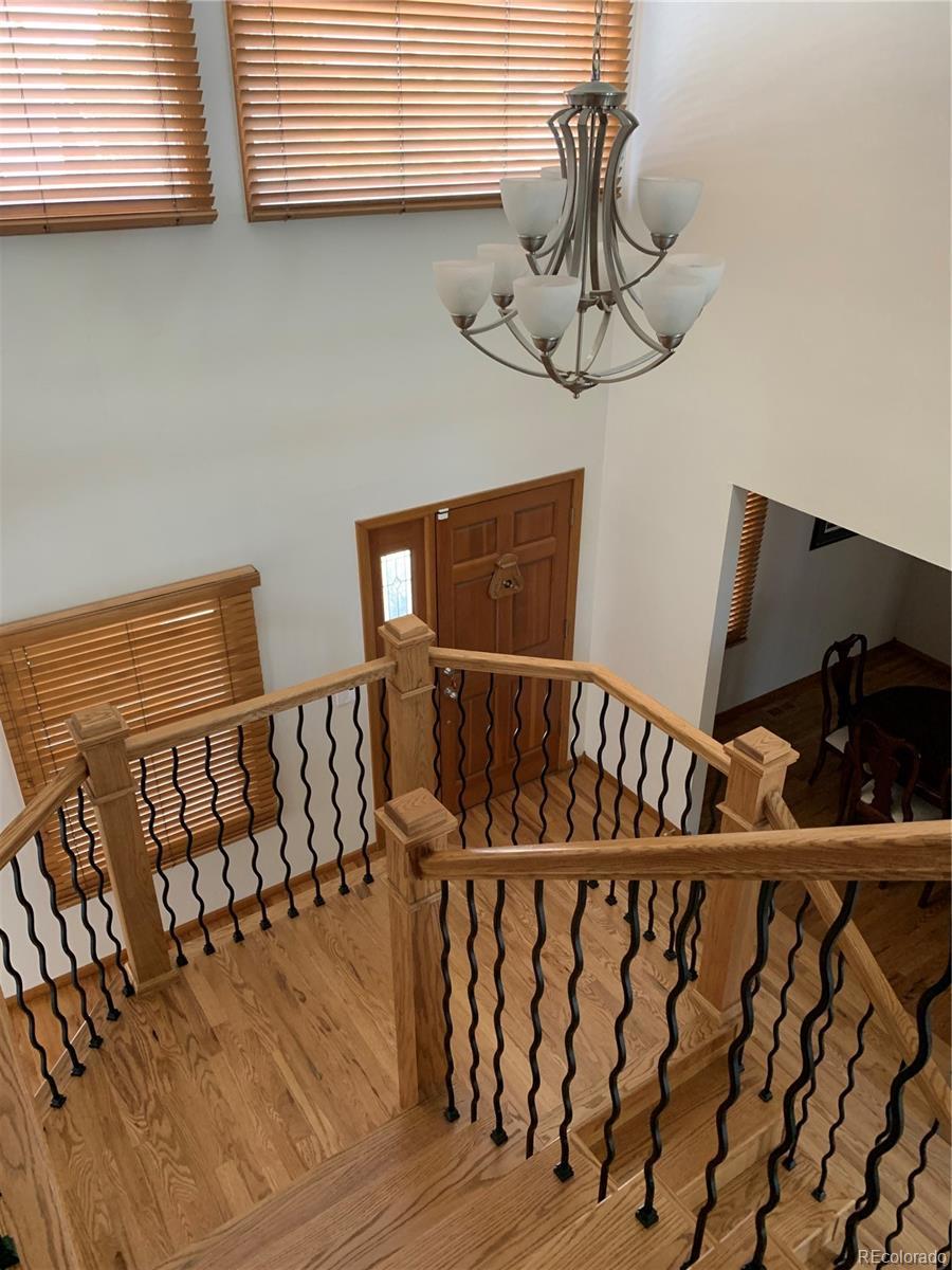 Amazing opportunity to own a beautifully maintained 5 bedroom home within the sought after Falcon Creek Subdivision. Stunning oak hardwood floors flow throughout both the main and upper levels. Open floorplan with soaring vaulted ceilings, makes this 2-story house into a home that you will enjoy for a lifetime. The entry foyer is accented by the open staircase that includes custom spindles and railings. The main floor living area includes massive windows, a warm gas fireplace with brick and wood accented mantel, and a wet bar for all of your family get togethers. Custom door treatments and wood blinds are prevalent throughout the property. Luxurious primary suite with walkout balcony that overlooks the stunning rear yard. This primary suite is both spacious and elegant. It includes not only a fabulous oversized walk-in shower, jetted tub, dual vanities with granite countertops, two large walk-in closets, along with multiple windows that allow sunlight to cascade throughout. The main floor bedroom can also double as a perfect place for your office. Adjacent to the kitchen is an eating space that will accommodate a full size dining table. In addition, you also have room for bar stools at the oversized counter area. Step outside onto your private custom stamped concrete patio area. Both the front and rear yards are not only manicured to perfection, but include custom stamped concrete edging for that professionally maintained appearance. The 3-car attached garage is massive and includes an access door to the rear yard. Upgrades throughout, including a cement tile roof. Make housework easy with the main floor laundry area with cabinets and abundant shelving. Should you desire additional finished living space, the unfinished basement is ready and waiting. Located just minutes from major highways, Park Meadows Mall and surrounding shopping area, along with amenities galore. HURRY, don't miss out on this very special home!