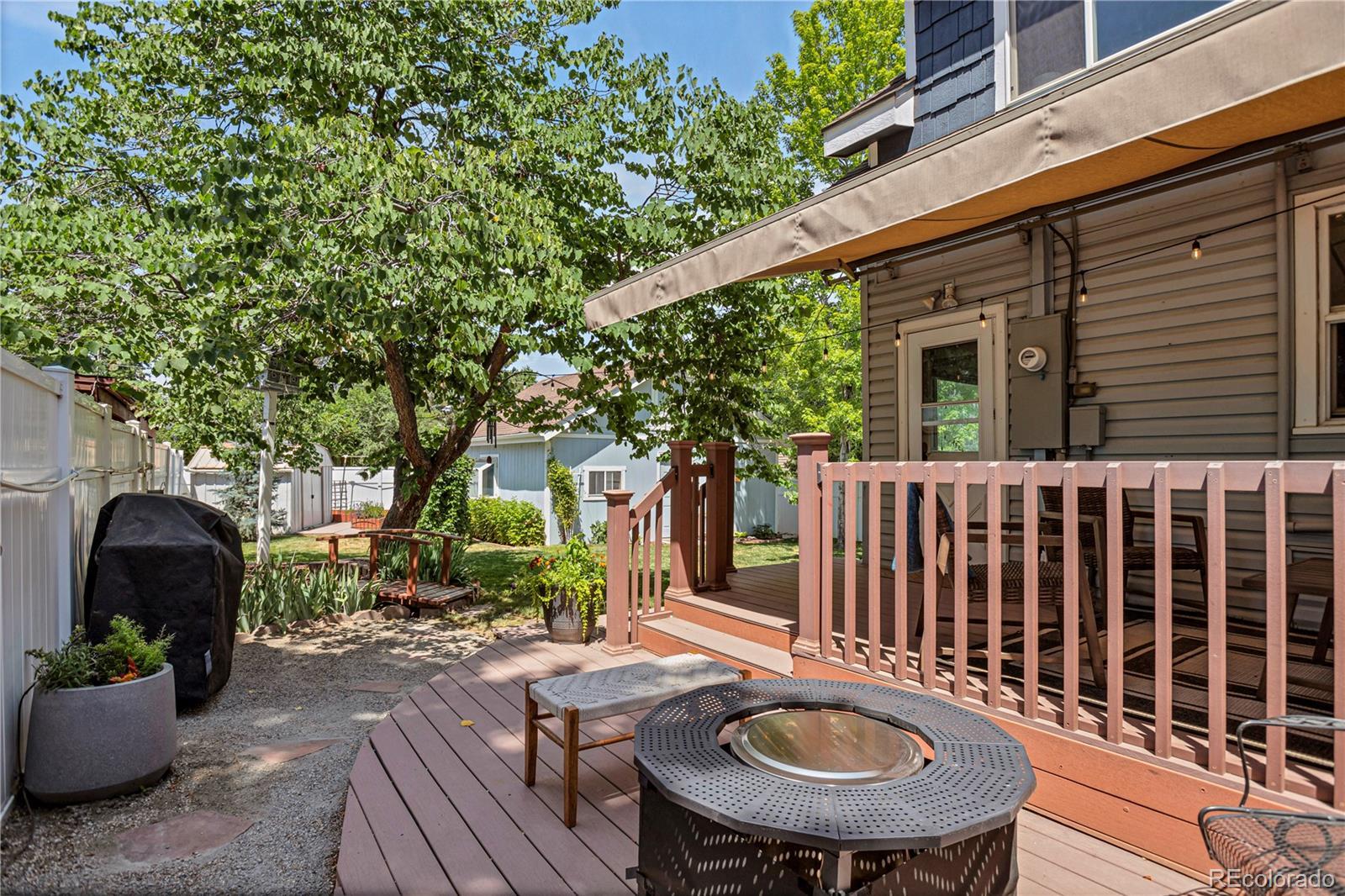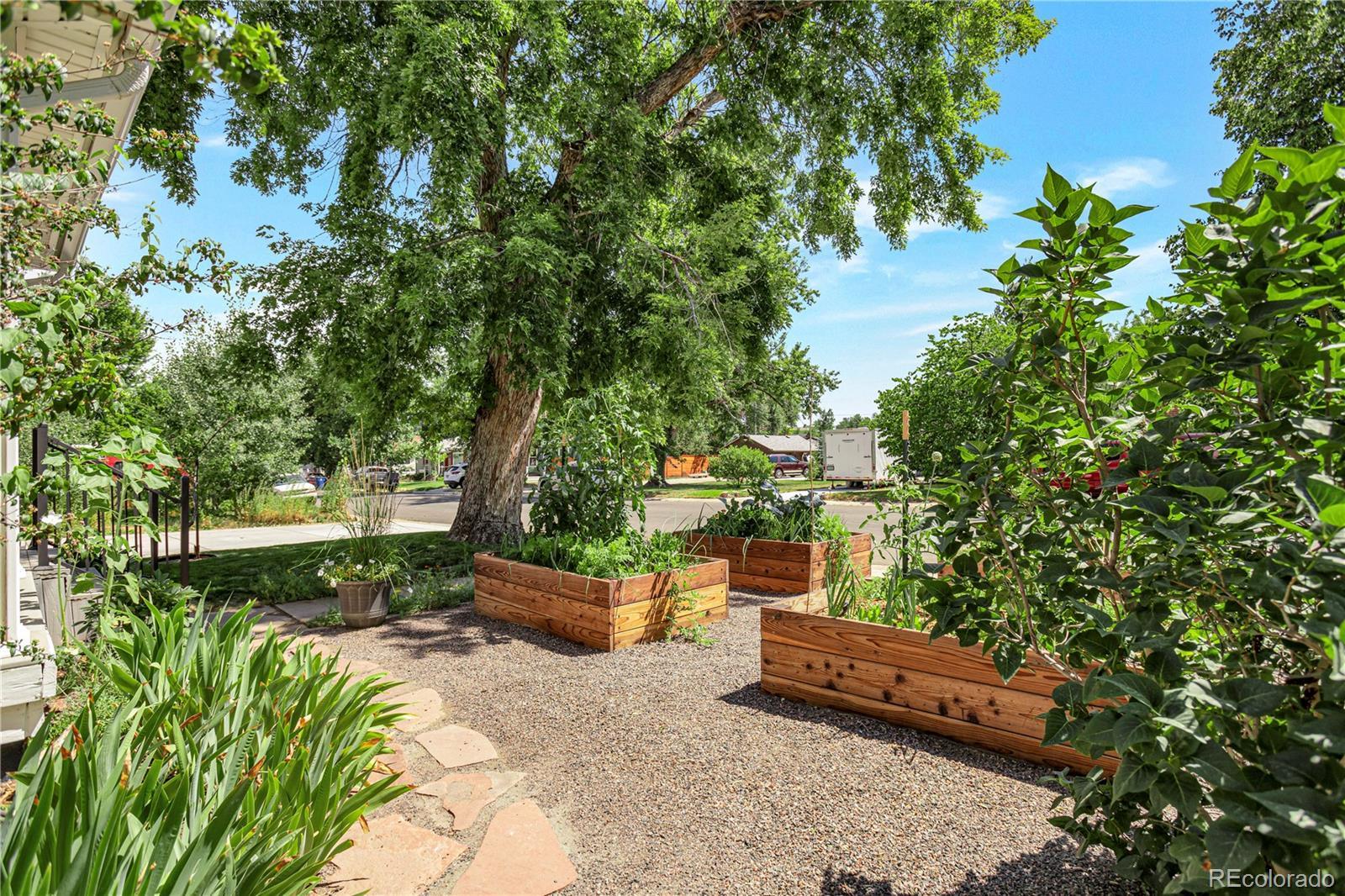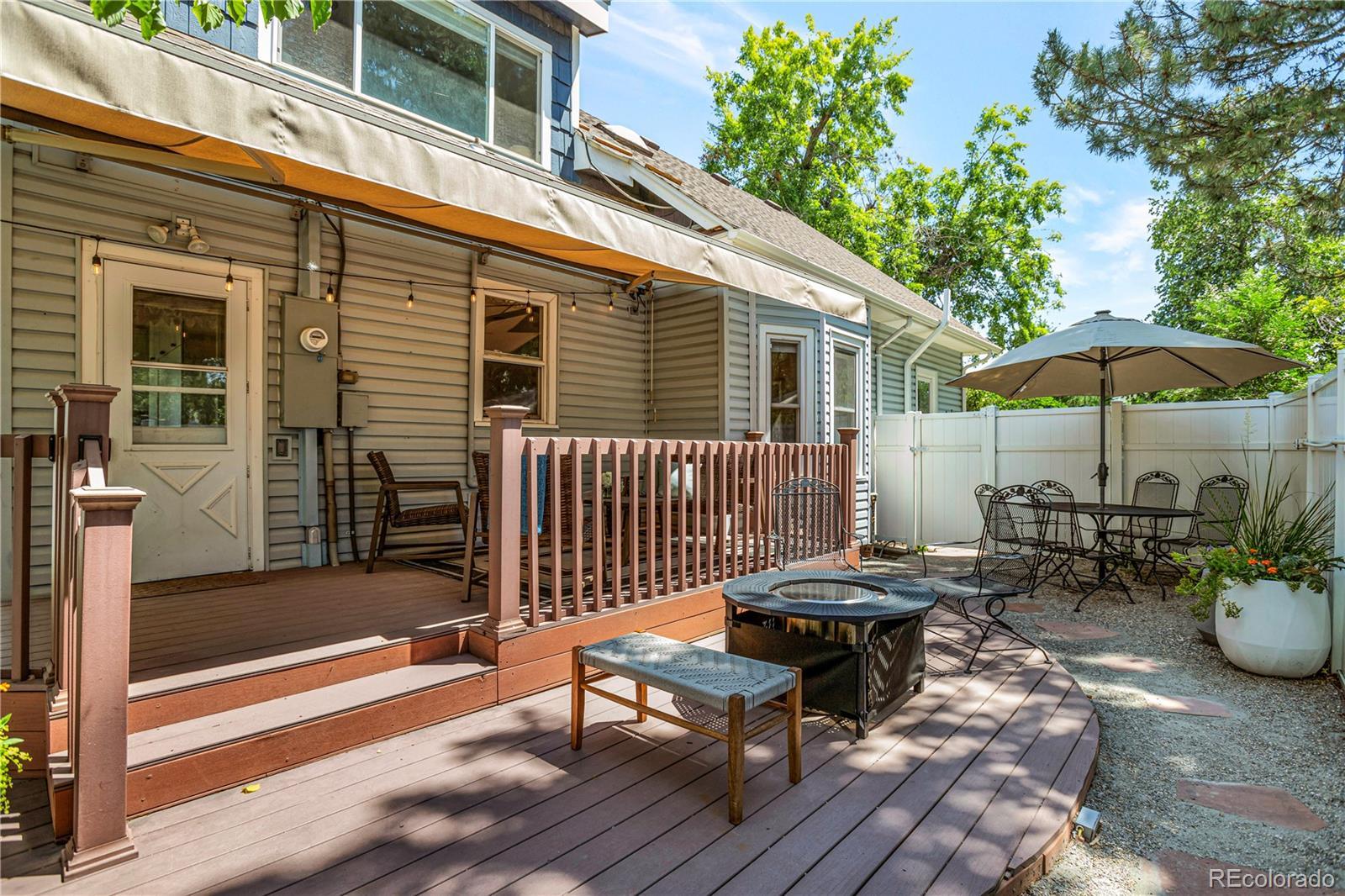 Meet your next great chapter in this beautifully updated 1911 classic—full of charm, character, and modern vibes. From the moment you arrive, the big covered front porch sets the tone. Picture lazy afternoons on the porch swing, coffee in hand, waving to neighbors as they stroll by. Step inside through the oval-glass front door and feel right at home. The main floor is warm and welcoming, with a cozy living room, a spacious dining room with a bay window overlooking the patio, a flexible corner office or bonus (non-conforming) bedroom, and a stylish full bath with exposed brick. There’s also a generous laundry/mudroom—because real life happens. And yes, the chef’s kitchen delivers: custom cabinetry with smart pullouts, a gas stove, and under-cabinet lighting that makes cooking (or takeout plating) feel next-level. Solid oak floors throughout the main level are a treasure! Upstairs, you’ll find two seriously spacious bedrooms. The front bedroom features a sweet nook tucked under the eaves—perfect for reading, relaxing, or creative play. The back bedroom is the dreamy primary suite, complete with vaulted ceilings, a wall of windows framed by trees, a walk-in closet, and a truly gorgeous en-suite bath. Outside, the front yard is xeriscape done right, with self-watering raised beds ready for flowers, herbs, or your summer veggie grow-up. The private backyard is a year-round favorite, featuring perennial blooms, shady trees, and a brand-new awning over the large patio—ideal for outdoor dinners, weekend lounging, or casual gatherings. Bonus points for smart, future-forward upgrades like a tankless water heater and an EV charging station in the oversized garage. And the location? Absolute gold. Tucked away on a quiet street, yet perfectly positioned between Downtown and DTC, with easy access to light rail and bus lines. Honestly—it doesn’t get better than this.