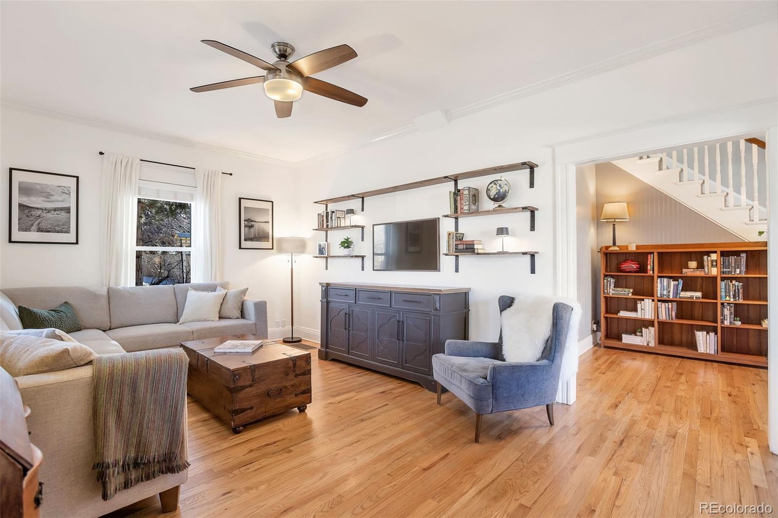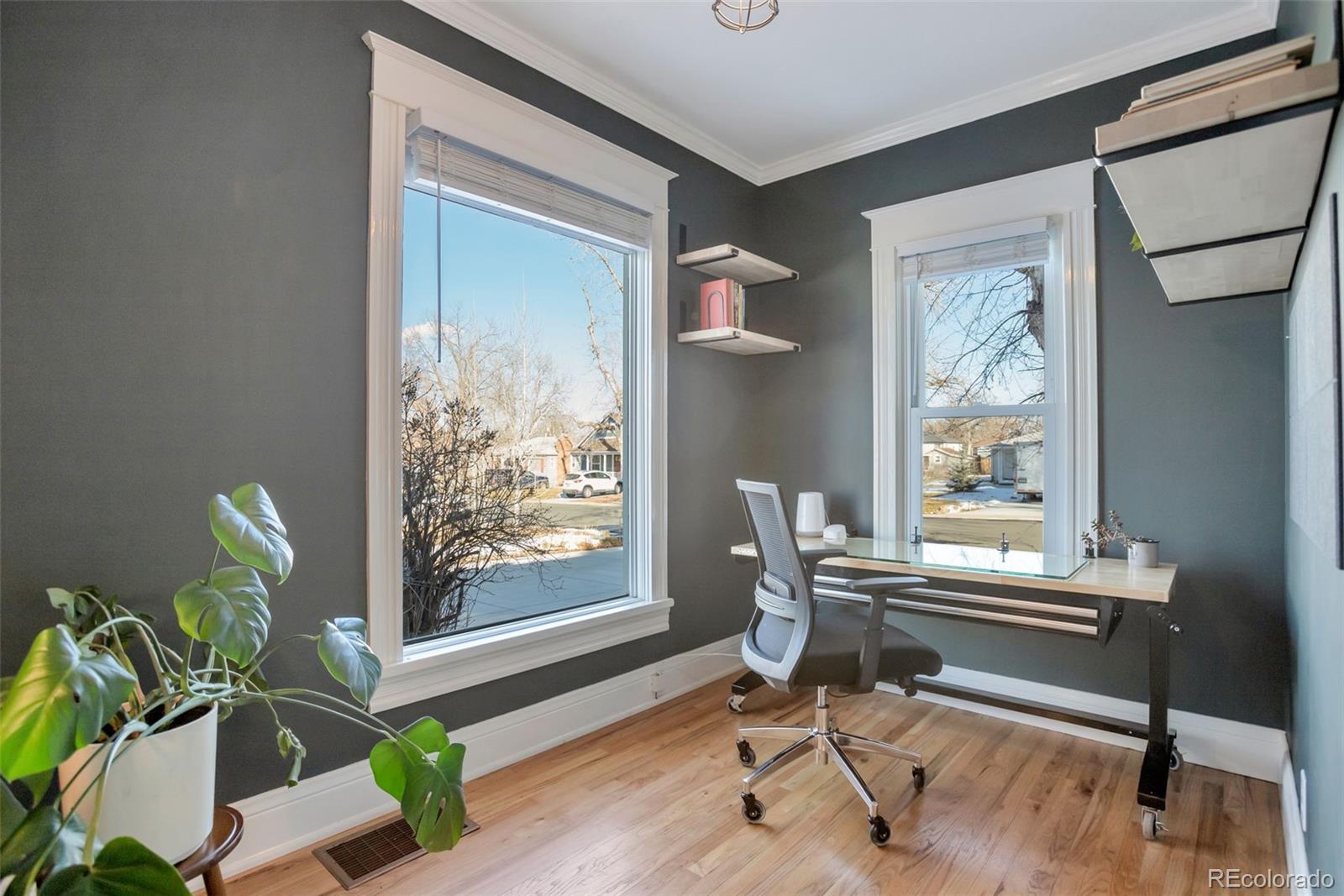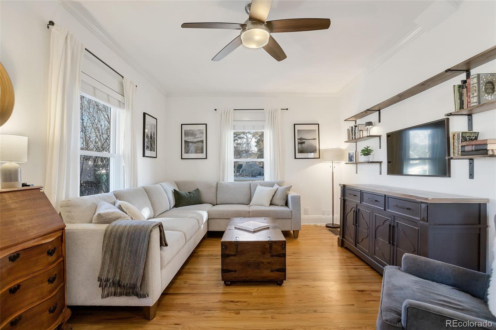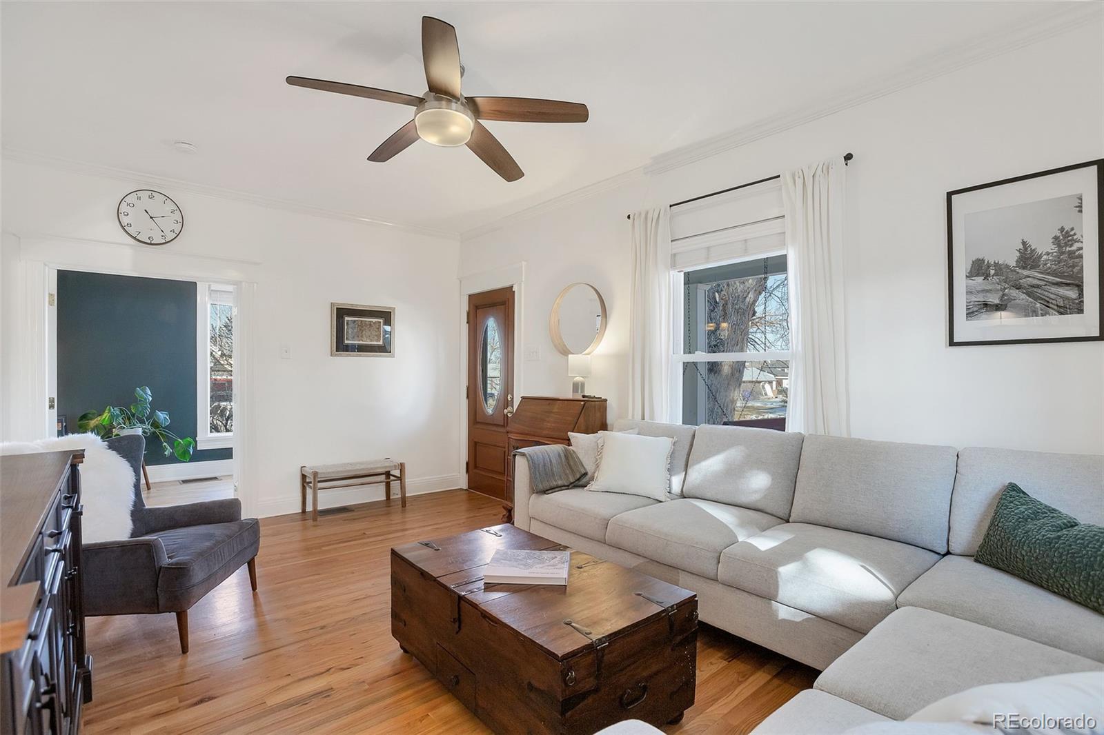 Meet your next great chapter in this beautifully updated 1911 classic—full of charm, character, and modern vibes. From the moment you arrive, the big covered front porch sets the tone. Picture lazy afternoons on the porch swing, coffee in hand, waving to neighbors as they stroll by. Step inside through the oval-glass front door and feel right at home. The main floor is warm and welcoming, with a cozy living room, a spacious dining room with a bay window overlooking the patio, a flexible corner office or bonus (non-conforming) bedroom, and a stylish full bath with exposed brick. There’s also a generous laundry/mudroom—because real life happens. And yes, the chef’s kitchen delivers: custom cabinetry with smart pullouts, a gas stove, and under-cabinet lighting that makes cooking (or takeout plating) feel next-level. Solid oak floors throughout the main level are a treasure! Upstairs, you’ll find two seriously spacious bedrooms. The front bedroom features a sweet nook tucked under the eaves—perfect for reading, relaxing, or creative play. The back bedroom is the dreamy primary suite, complete with vaulted ceilings, a wall of windows framed by trees, a walk-in closet, and a truly gorgeous en-suite bath. Outside, the front yard is xeriscape done right, with self-watering raised beds ready for flowers, herbs, or your summer veggie grow-up. The private backyard is a year-round favorite, featuring perennial blooms, shady trees, and a brand-new awning over the large patio—ideal for outdoor dinners, weekend lounging, or casual gatherings. Bonus points for smart, future-forward upgrades like a tankless water heater and an EV charging station in the oversized garage. And the location? Absolute gold. Tucked away on a quiet street, yet perfectly positioned between Downtown and DTC, with easy access to light rail and bus lines. Honestly—it doesn’t get better than this.