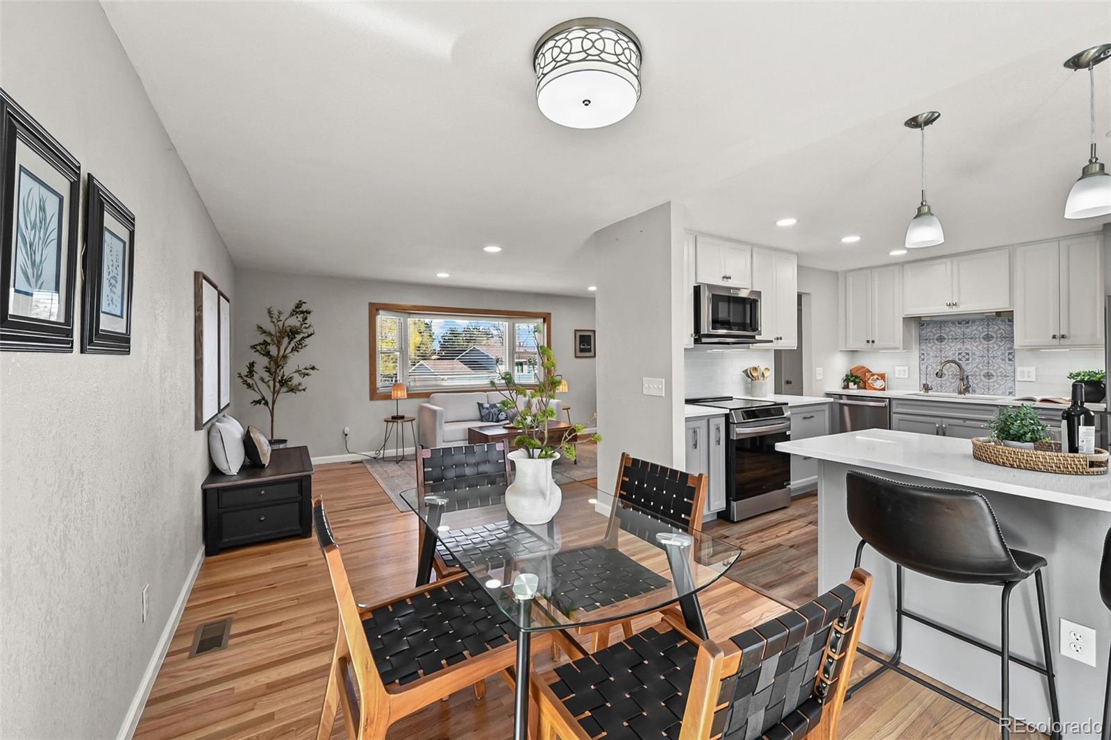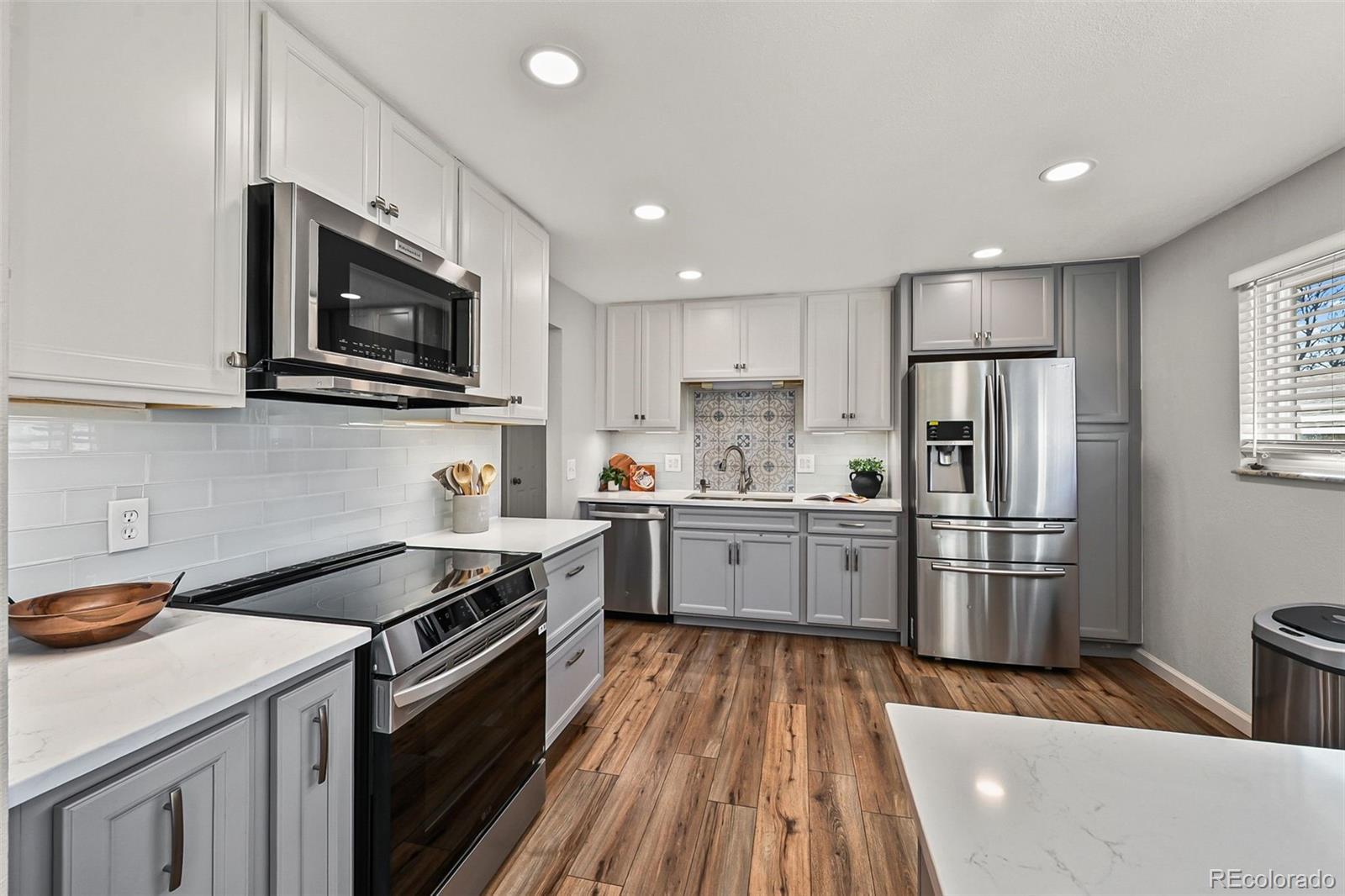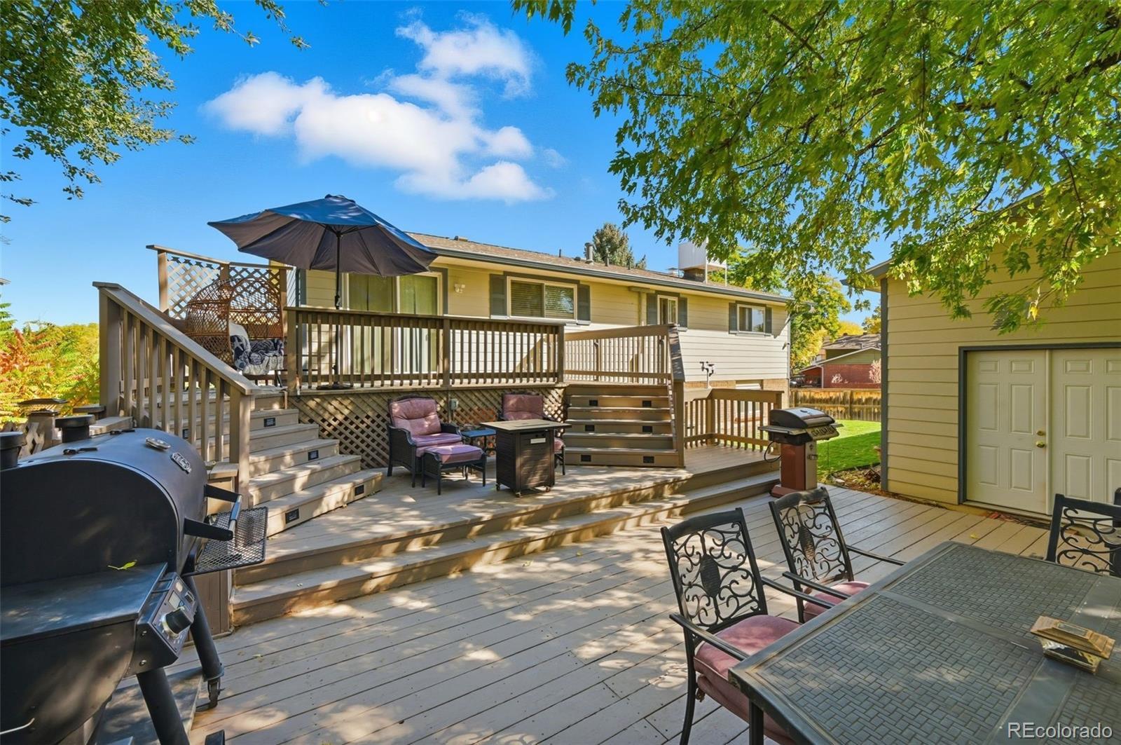 Discover this beautifully remodeled and move-in ready Littleton gem on a spacious corner lot! Offering 1,893 finished sq. ft., 3 bedrooms, and 3 baths, this home blends style, function, and rare garage space. The main level features gorgeous wood floors throughout, newer lighting, accent paint, and Champion windows for wonderful natural light. The updated kitchen is a showpiece with quartz countertops, custom cabinetry, stainless appliances, pendant lighting, custom tile backsplash, and an eat-up island. The primary bedroom offers wood floors, accent paint, great windows, and an updated 3/4 bath with fresh paint, nice lighting, and a glass shower door. Two additional bedrooms share a newly painted full bath with tile floors, a modern vanity, and great lighting. The lower level impresses with brand-new carpet, a brick-surround wood-burning fireplace with mantel, wood accents, an updated powder bath, laundry area, utility space, and convenient under-stair storage. A major standout is the garage space—an attached oversized 2-car garage with work-space, storage and shelving PLUS a detached, heated 24x36 4+ car garage with vaulted ceilings and a refrigerator—perfect for hobbyists, car enthusiasts, or extra storage needs. The fully fenced, landscaped corner lot offers a large shed and an expansive 3-tier deck ideal for outdoor entertaining. Fantastic location close to amenities, parks, and more. This one is truly special—don’t miss it! Roof was replaced in 2019/2020, resided with hardy board siding, fiber quantum available, Eco bee thermostat, entire house was re-wired with copper, all permitted! Brand new electrical panel, no popcorn ceilings, all new recessed lighting, fire suppression all wired together, Kitchen was remodeled and the cabinets are soft close, offer rollouts, pantry with tons of pull outs, EVP for tesla in garage, water heater replaced in 2019 (12 year warranty), chimney and ducts cleaned! Move-in ready!!