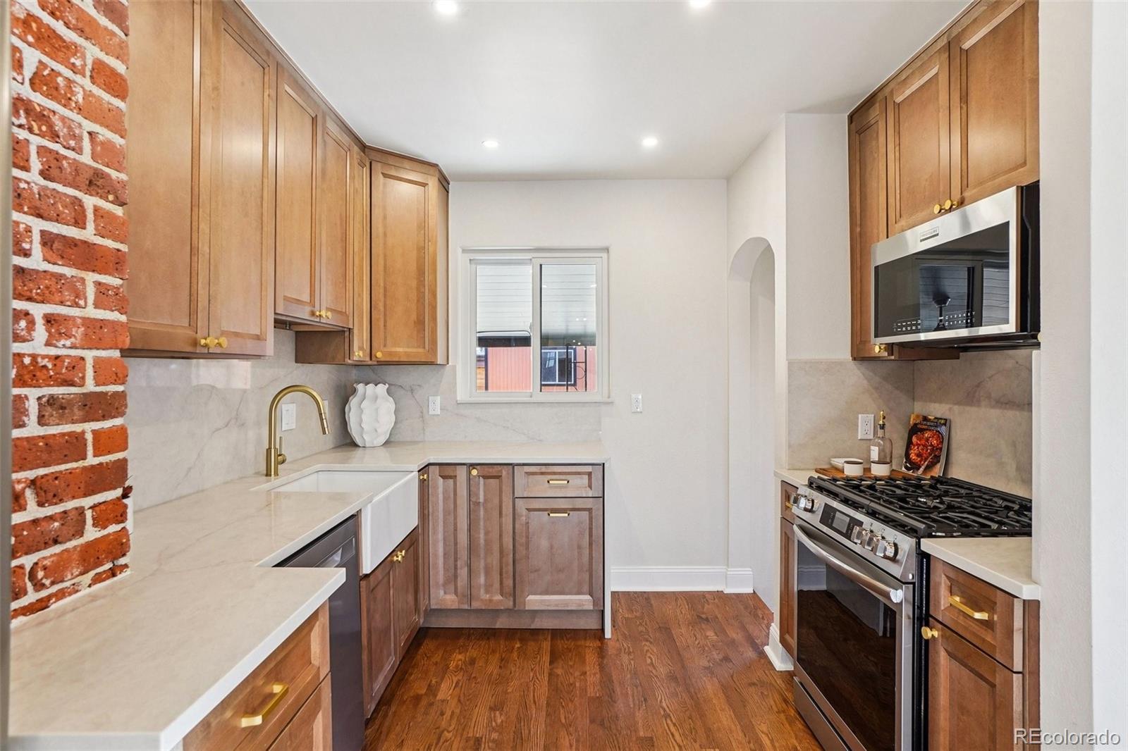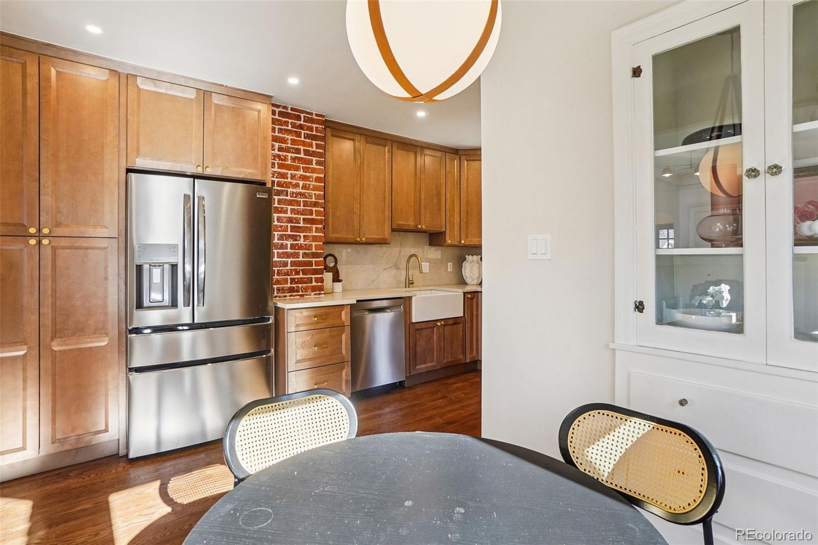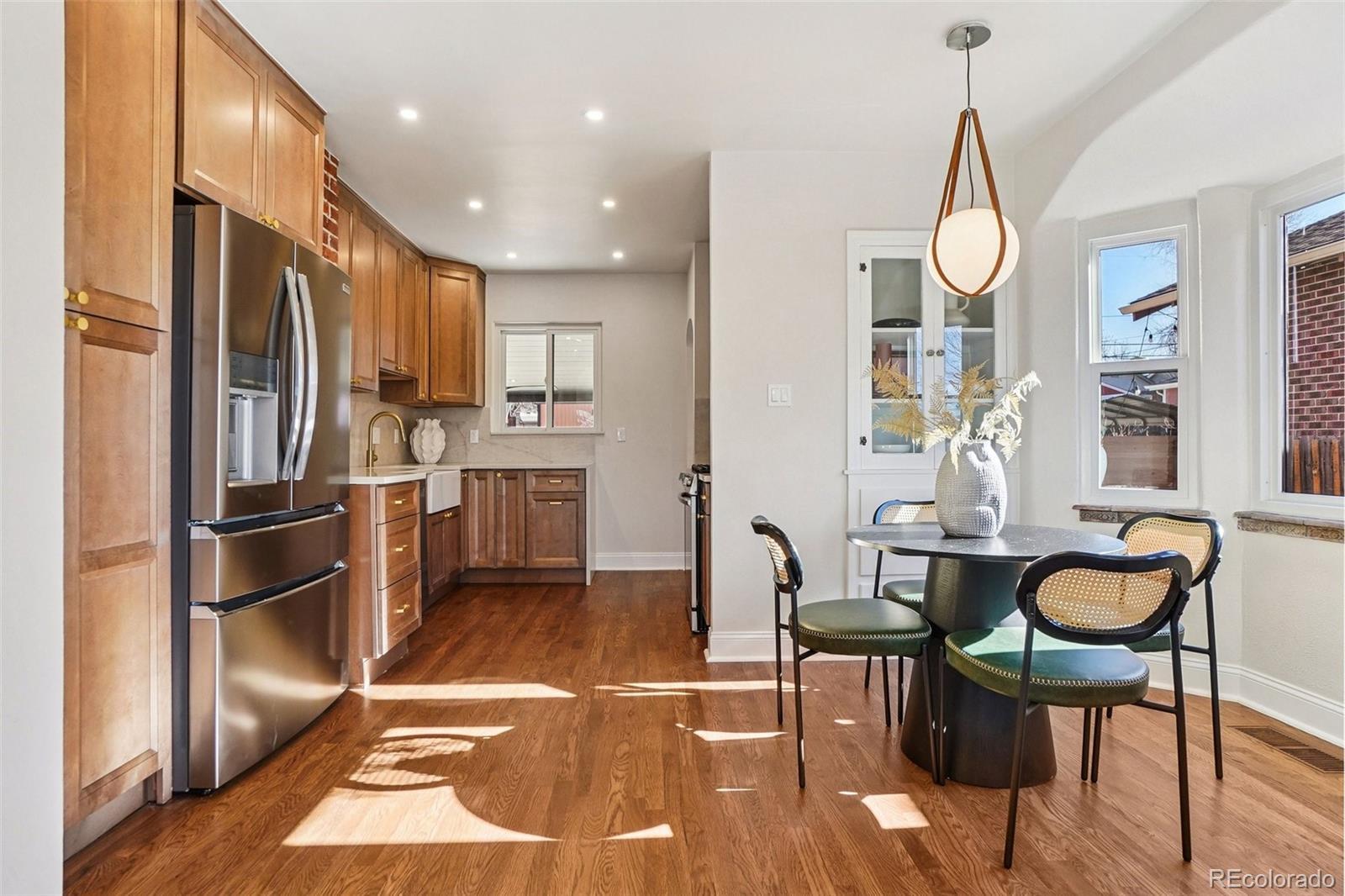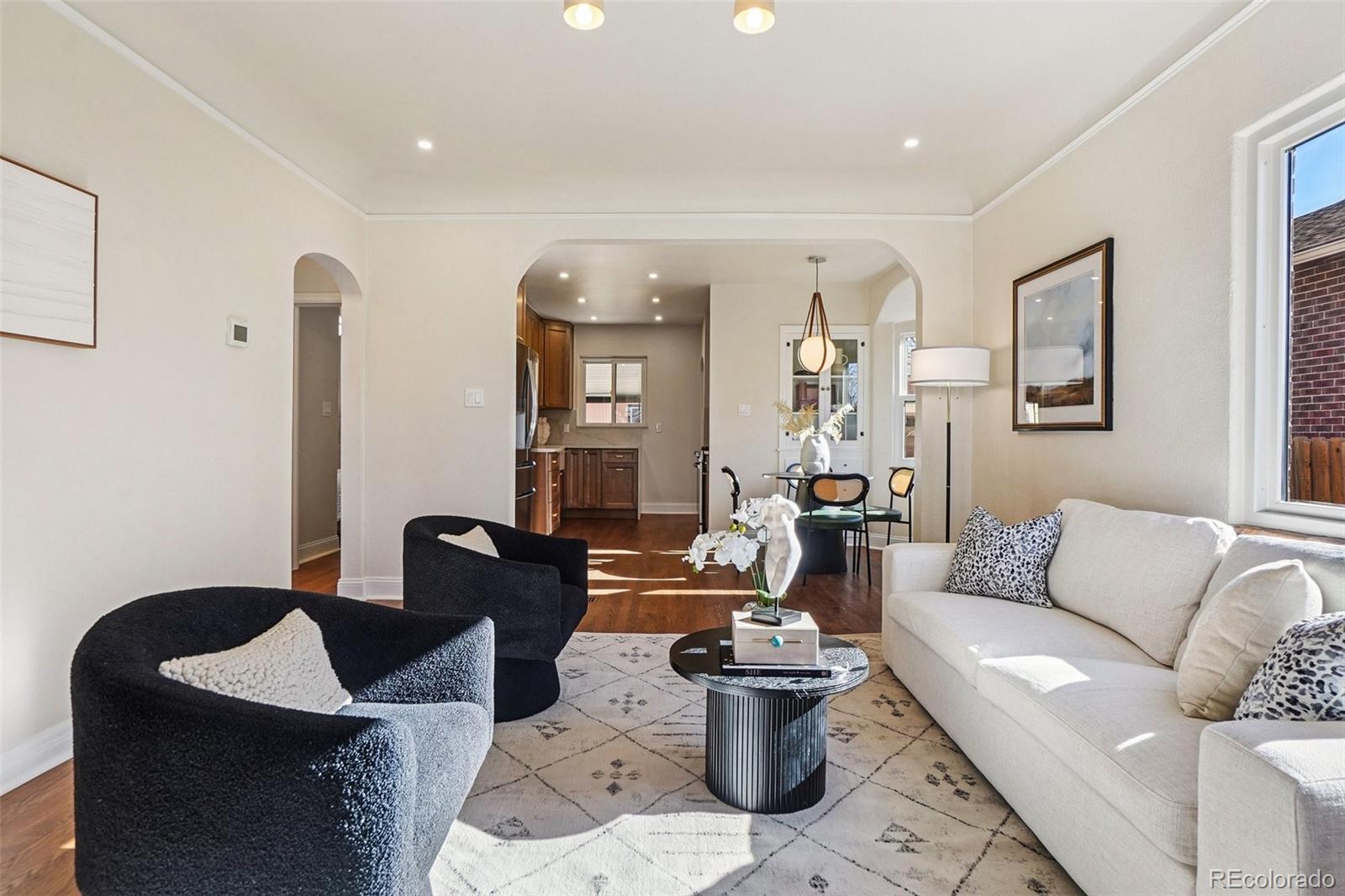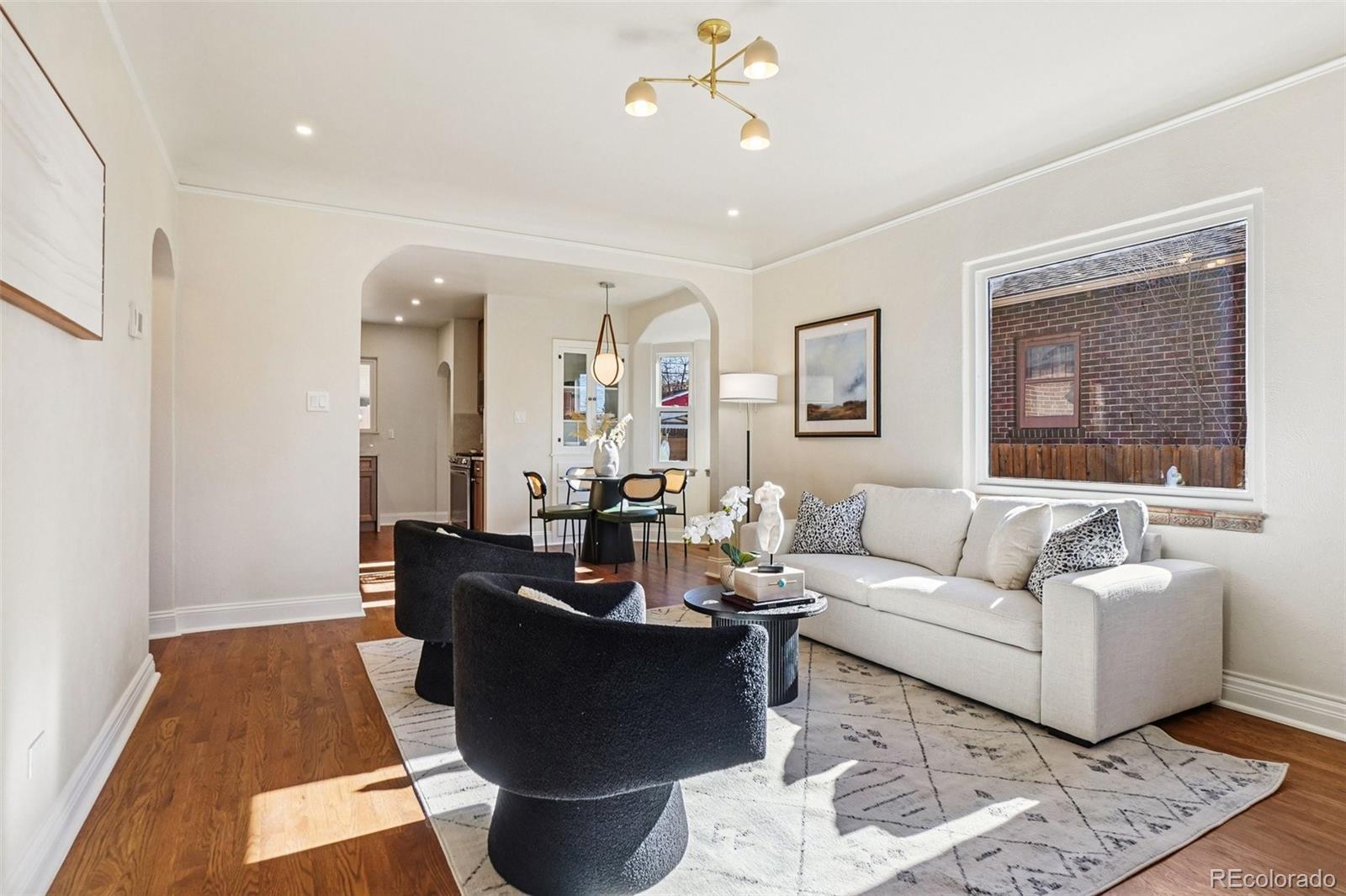 This charming Tudor-style home sits right in the heart of Platt Park and has been completely renovated from top to bottom, blending vintage character with modern updates in all the right ways. The main level has been thoughtfully redesigned to create a fresh, open-concept feel that flows effortlessly between the living room and kitchen. You’ll notice brand-new oak hardwood floors in the main living areas, along with beautifully resurfaced original hardwoods in both main-level bedrooms. Original tile-work at the base of the main-level windows and surrounding the living room fireplace adds a subtle nod to the home’s historic charm. The living room features a cozy gas fireplace, while the basement offers its own comfortable living space with a second gas fireplace. The kitchen has been fully updated with new cabinets, gorgeous quartz countertops, and all brand-new stainless steel appliances. The home offers three bedrooms and two bathrooms, with a bathroom on each level. The basement bedroom includes a new egress window that brings in great natural light, and the wet bar downstairs adds a fun and functional touch for entertaining. Major improvements have already been taken care of, including all brand new windows throughout the home and a roof and gutters just over two years old. Out back, you’ll love the covered patio that opens to a spacious, fully fenced backyard with brand-new wood fencing and sprinklers in both the front and back. A generous 2.5-car detached garage provides plenty of storage and parking, plus an additional off-street parking space off the alley. The location truly sets this home apart. Platt Park is just a short walk up Logan Street, and you’re only one block from South Pearl Street. A beautifully updated home that still honors its history, all in one of Denver’s most loved neighborhoods, this is Platt Park living at its best!