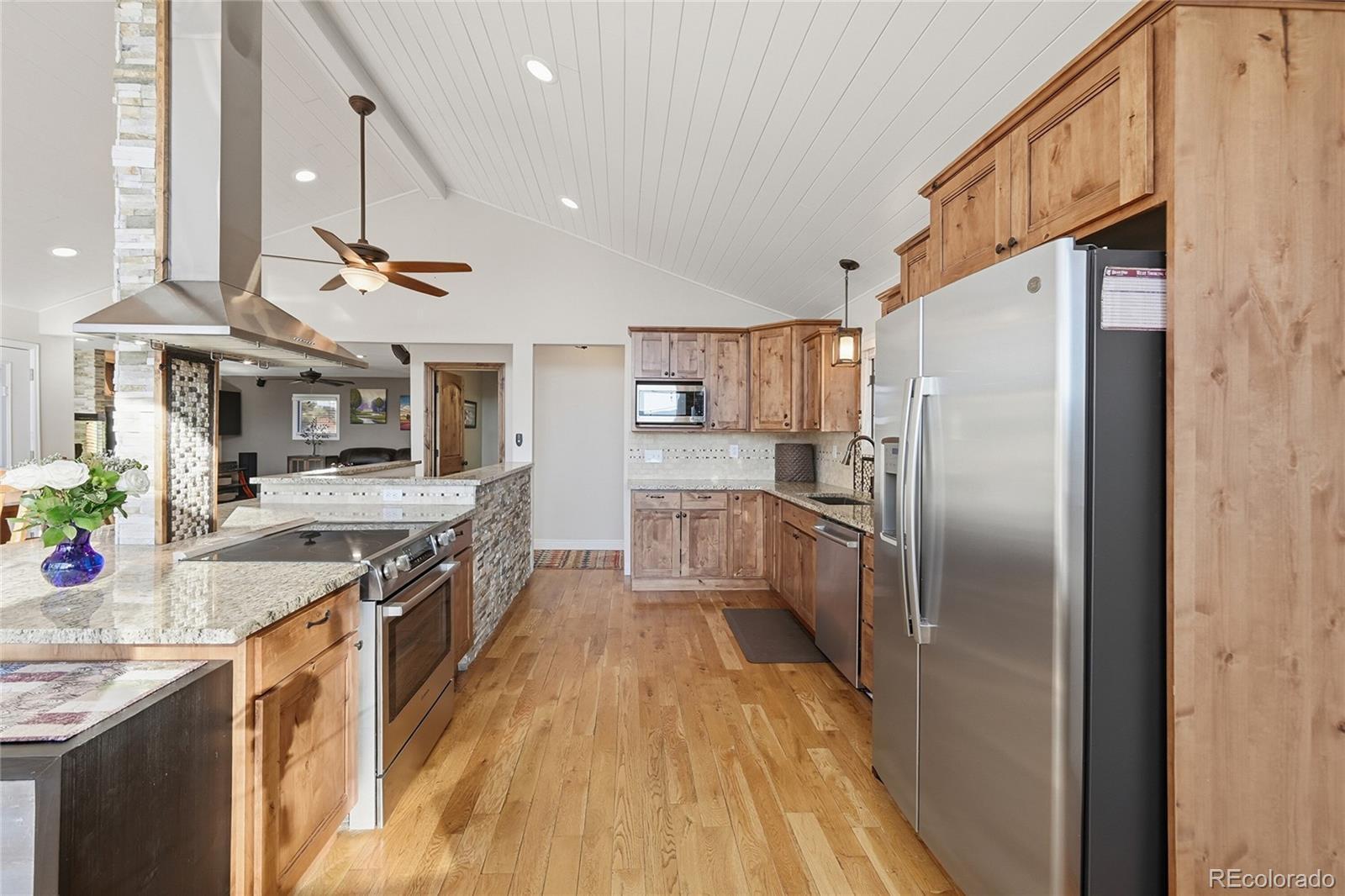 Ceiling Fan(s), Granite Counters, High Ceilings, Kitchen Island, Vaulted Ceiling(s), Walk-In Closet(s)
