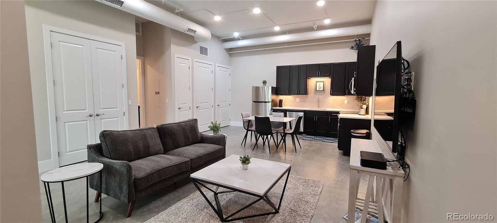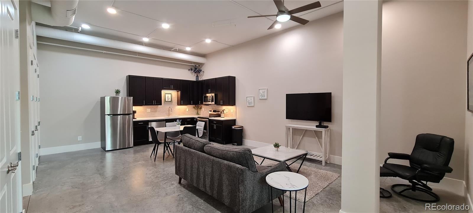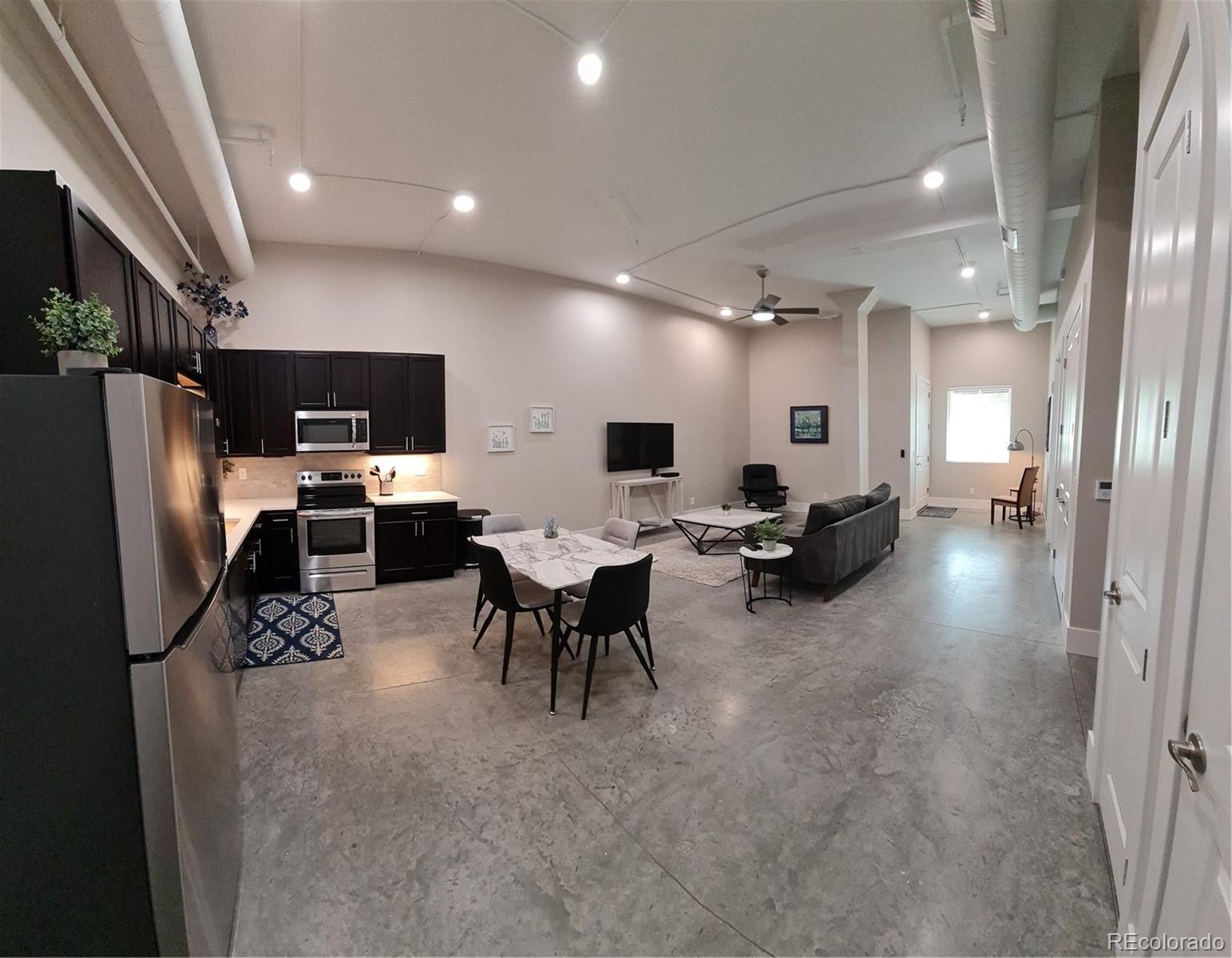 STR ELIGIBLE GROUND FLOOR CONDO in AMAZING GOLDEN LOCATION Unit 105 is a corner unit with secured entry and features southern facing windows with space highlighted by 13’ Industrial Contemporary ceilings. Inquire on how the unit can be built out to a 2, 3, or 4 bed design. This 856 square foot condo was completed in 2022 with an Industrial Contemporary finish and delivers fully furnished space ready to live or short term rent to your preference. Every unit is accentuated with Stainless Steel appliance package, washer/dryer, and move in ready furnishings and décor. You will find high efficiency features at every turn; including solar, hot water heating systems, high grade insulation, unit specific A/C service, and privacy wall designs. Unique downtown location is just blocks from Mines campus, restaurants and shopping while also located steps from hiking / single track trails and is across the street from Natural Grocers. Unit is sold with one parking space on off street lot with visitor parking for guests. Building is surrounded by Lookout and South Table Mountain views in prime downtown Golden location. Note that you are 20 minutes from downtown Denver, have quick access to Boulder, and convenient public transport with an RTD station a mile away. Builder is offering some exciting incentives including $100,000 concession with two unit purchases for interested Buyers and can offer quick possession. Learn more about the Fossil Point community and remaining three units for sale at www.rem.ax/GFP