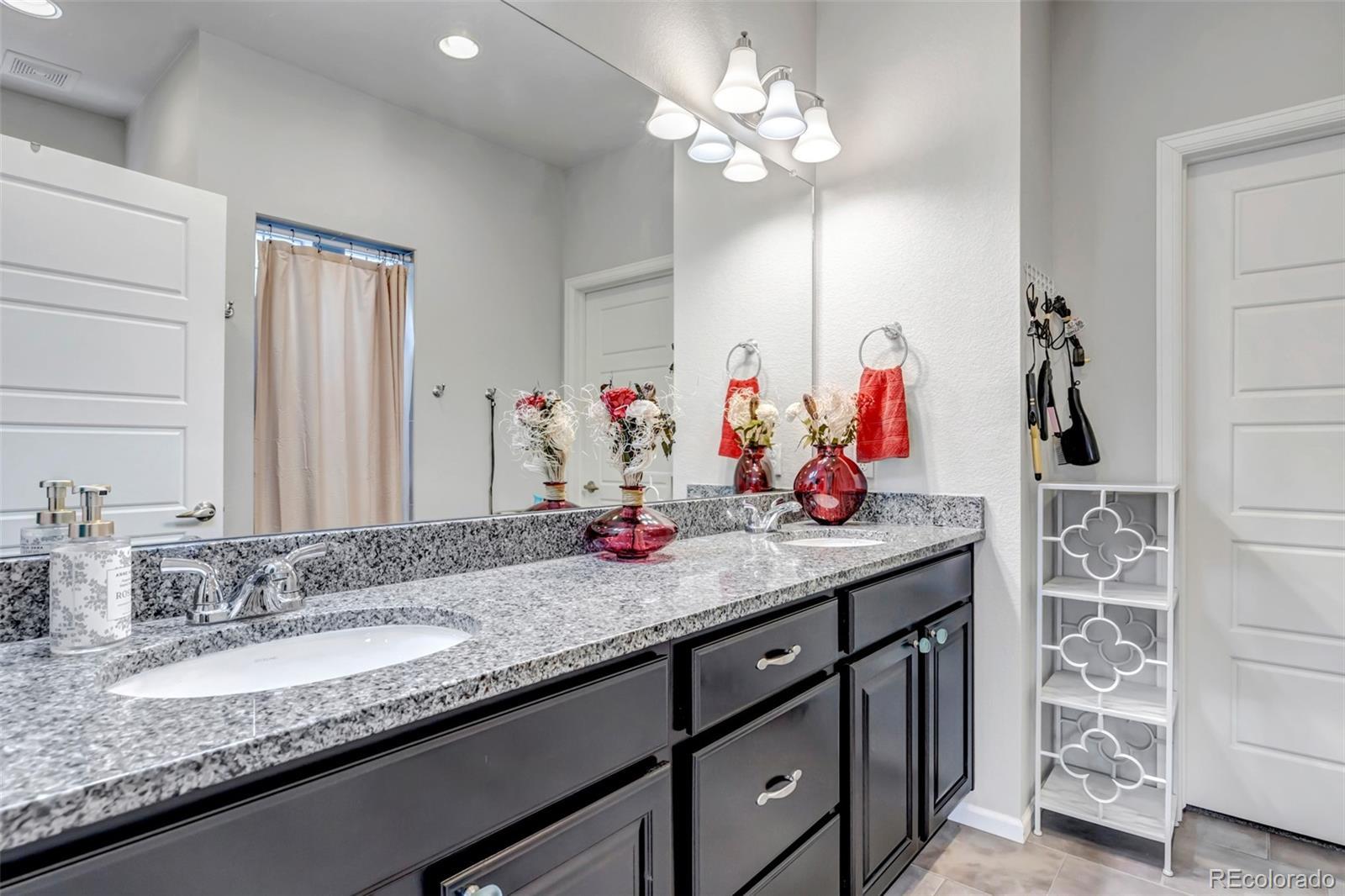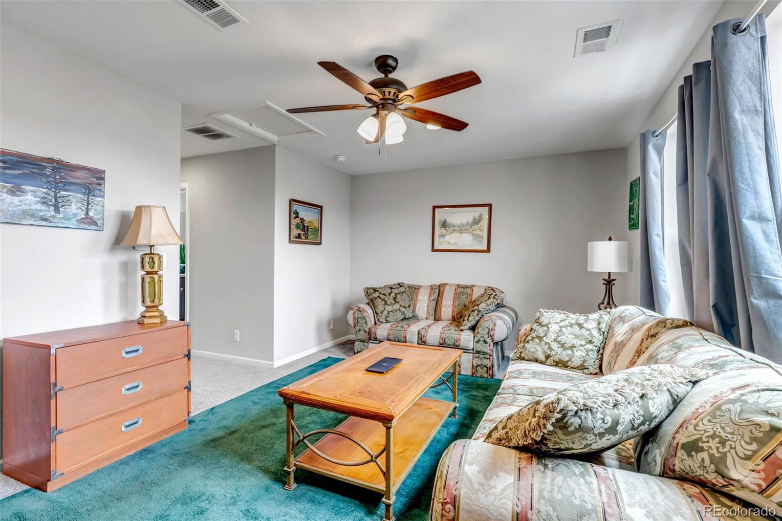 Back on the market / Fresh New Price! Welcome to this stunning 3-bedroom, 3-bathroom home in the sought-after Fairway Villas at Green Valley Ranch. You’ll love the beautifully landscaped yard, upgraded covered front porch, and peace of mind with a brand-new roof and siding installed in 2025. Inside, enjoy an open floor plan with durable vinyl floors on the main level, tray ceilings, and recessed lighting. The kitchen is a chef’s dream with its large granite island, upgraded cabinetry, stylish backsplash, and gas range—perfect for daily living and entertaining. The spacious primary suite on the main level offers a luxurious spa-style shower, dual sinks, and a walk-in closet. Upstairs features a second primary bedroom with its own walk-in closet and a large rec room for guests, hobbies, or work. Each level has its own thermostat for year-round comfort, and the home is prewired for a central vacuum system. Step outside to your private oasis with wrap-around patios, a gazebo, swing, and low-maintenance turf lawn with drip-irrigated landscaping. This vibrant community offers two clubhouses, two fitness centers, indoor and outdoor pools overlooking a scenic golf course, pickleball courts, tennis courts, bocce ball courts, and miles of bike and walking trails. An on-site Activities Director organizes events, fitness classes, and social gatherings to keep residents active. Located near parks, shops, dining, DIA, and major highways, with easy access to Green Valley Ranch Golf Club and the Rocky Mountain Arsenal National Wildlife Refuge. Eligible buyers may qualify for a property tax rebate through the relief program, offering potential savings. Don’t miss your chance to live in this beautiful home with recent exterior upgrades in an unbeatable community!